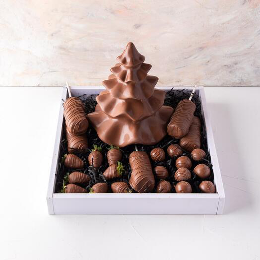 Chocolate-covered strawberries are your go-to gift for any occasion! With a festive twist on a popular treat, this set features a multitude of delectable options, from an edible Christmas tree to chocolate-covered marshmallows and truffles. Impossible to resist!