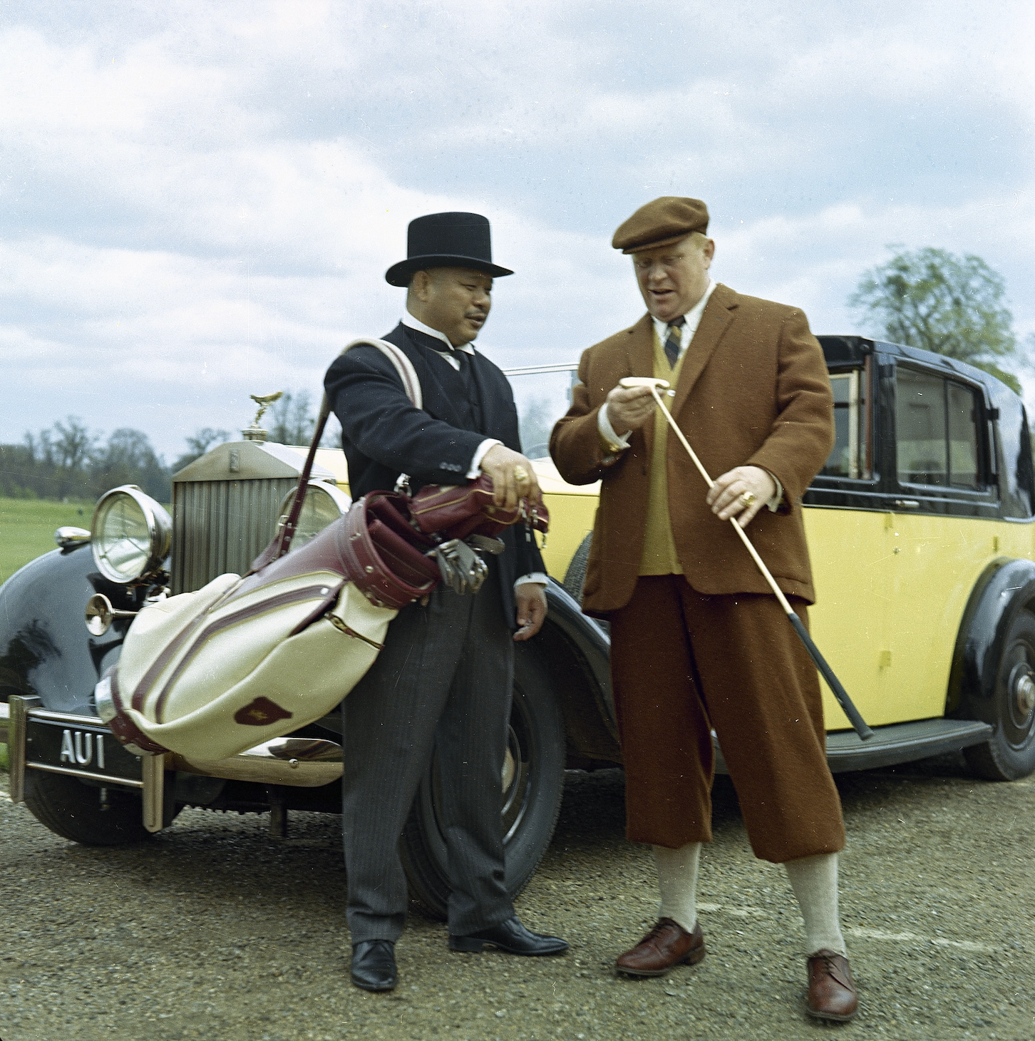 The specific motor car used by Goldfinger is equipped with an open front and enclosed rear ‘Sedanca de Ville’ – or Town Car – body by coachbuilders Barker. Its commanding presence prompts Bond himself to remark, “She’s a beauty… Phantom III ‘37, isn’t she?” as Oddjob loads Goldfinger’s signature gold golf club and harlequin umbrella into the boot outside Stoke Park, the private sporting estate where Bond first meets them.