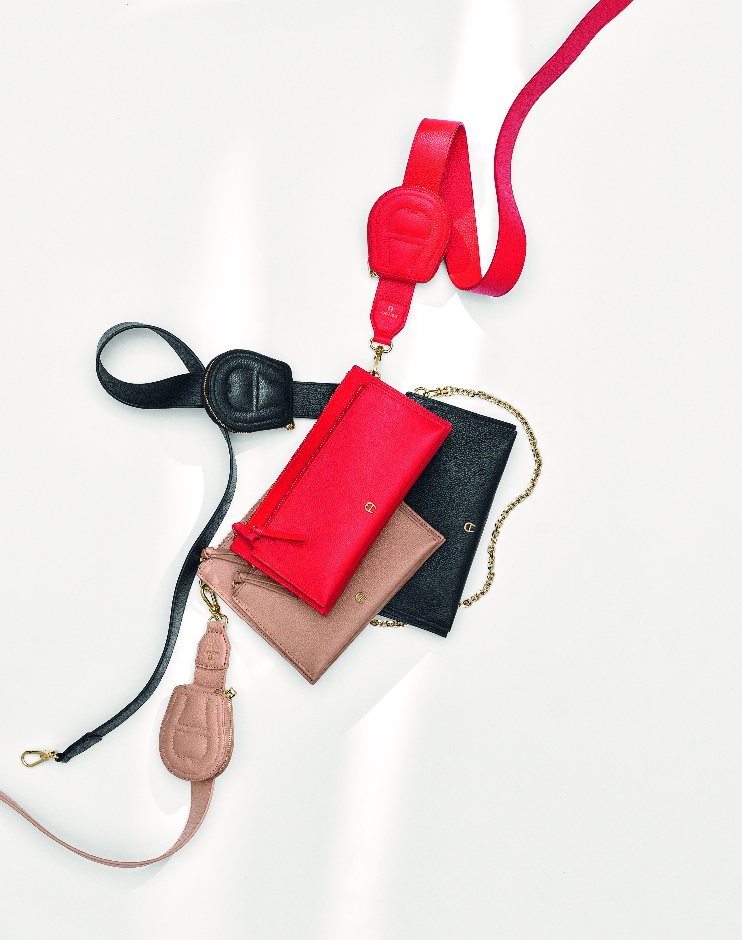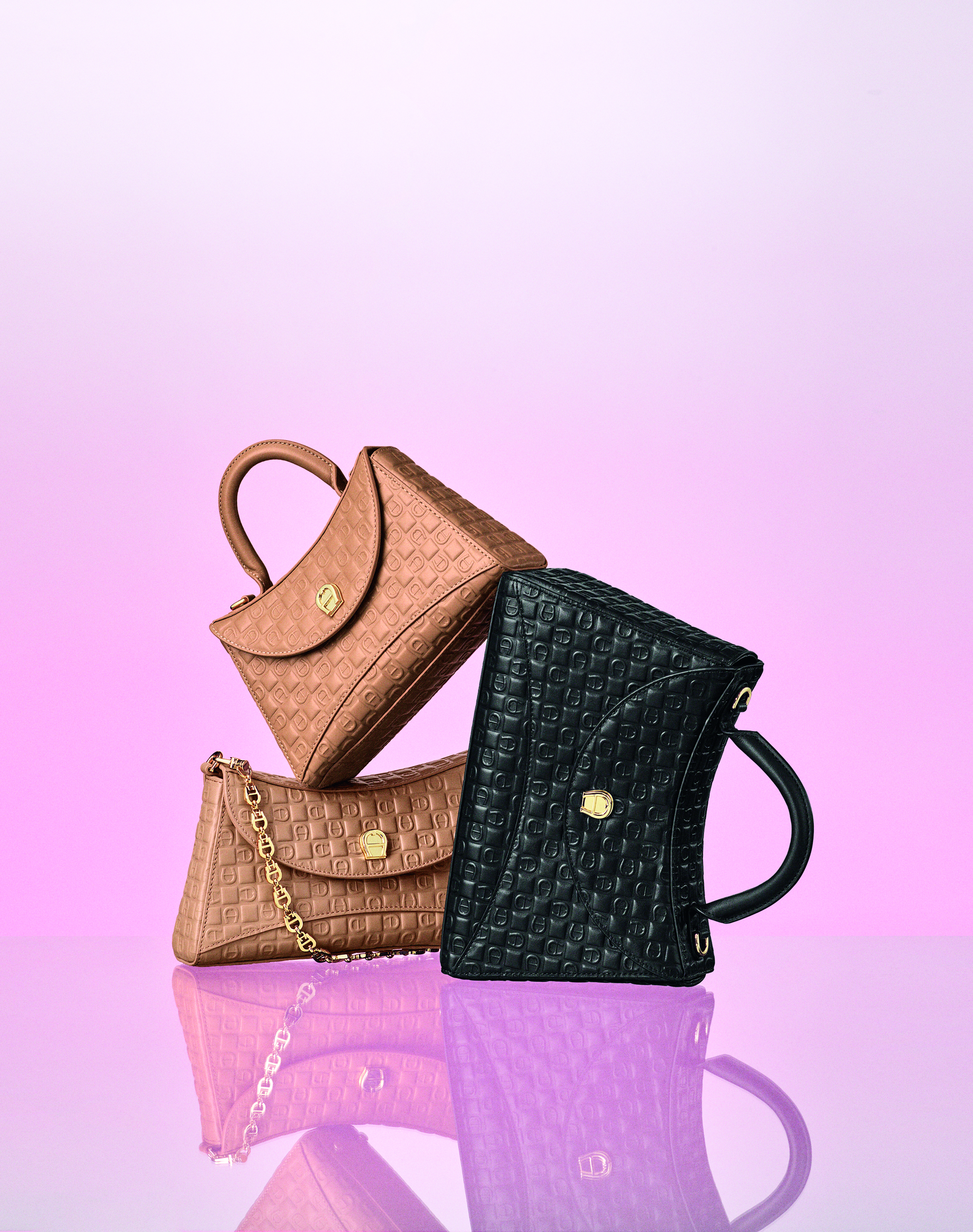 The AIGNER classic series IVY gets two new models - a medium-sized pouch bag and a pochette in pagoda shape with chain strap. In addition, this season‘s IVY comes in a special with intricate braiding in "Black" and "Demi Brown".