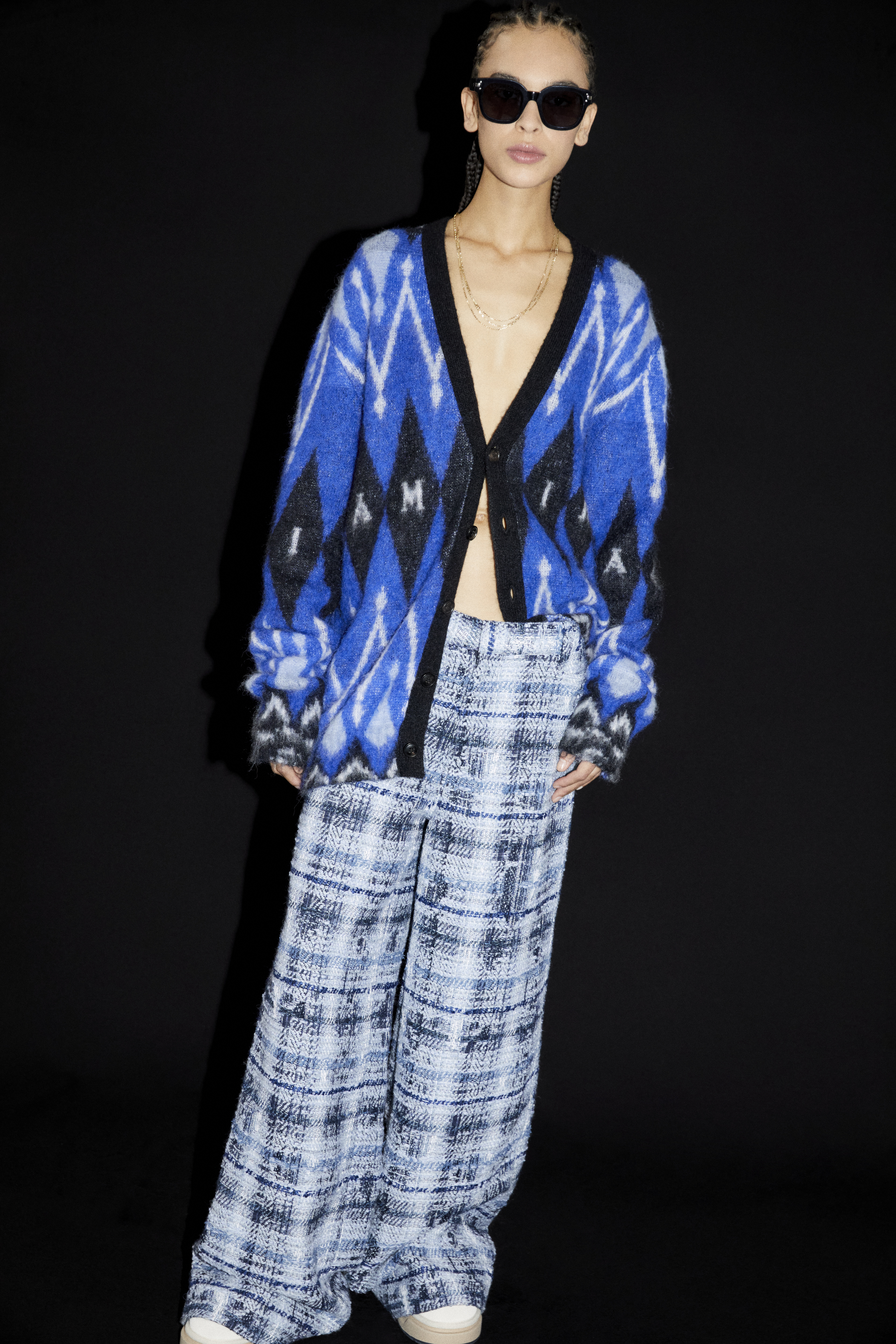 Leisure-inspired pieces are rendered in luxury fabrics and cut in the house’s classic kick-flare silhouette, while, by contrast, traditional bouclé suiting is relaxed in boxy fits with sports-inspired drawcord waists. These adjustable details not only inform the silhouette's cocooning effect, but also become a contemporary idea of the bespoke, offering multiple interpretations and transformations. Hallmark hybrid design codes splice denim with tweeds, vintage track tricot jerseys to forge new structure.