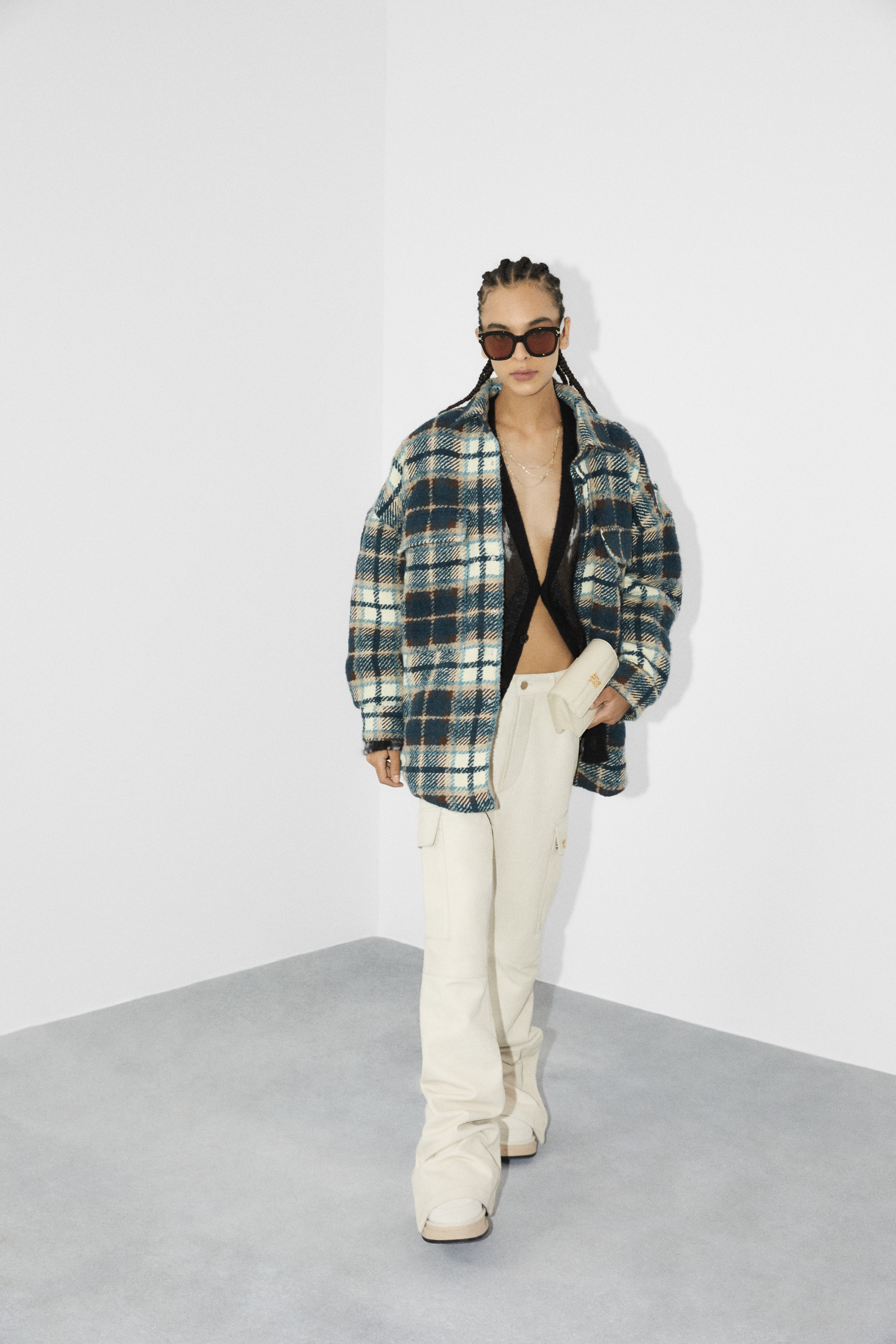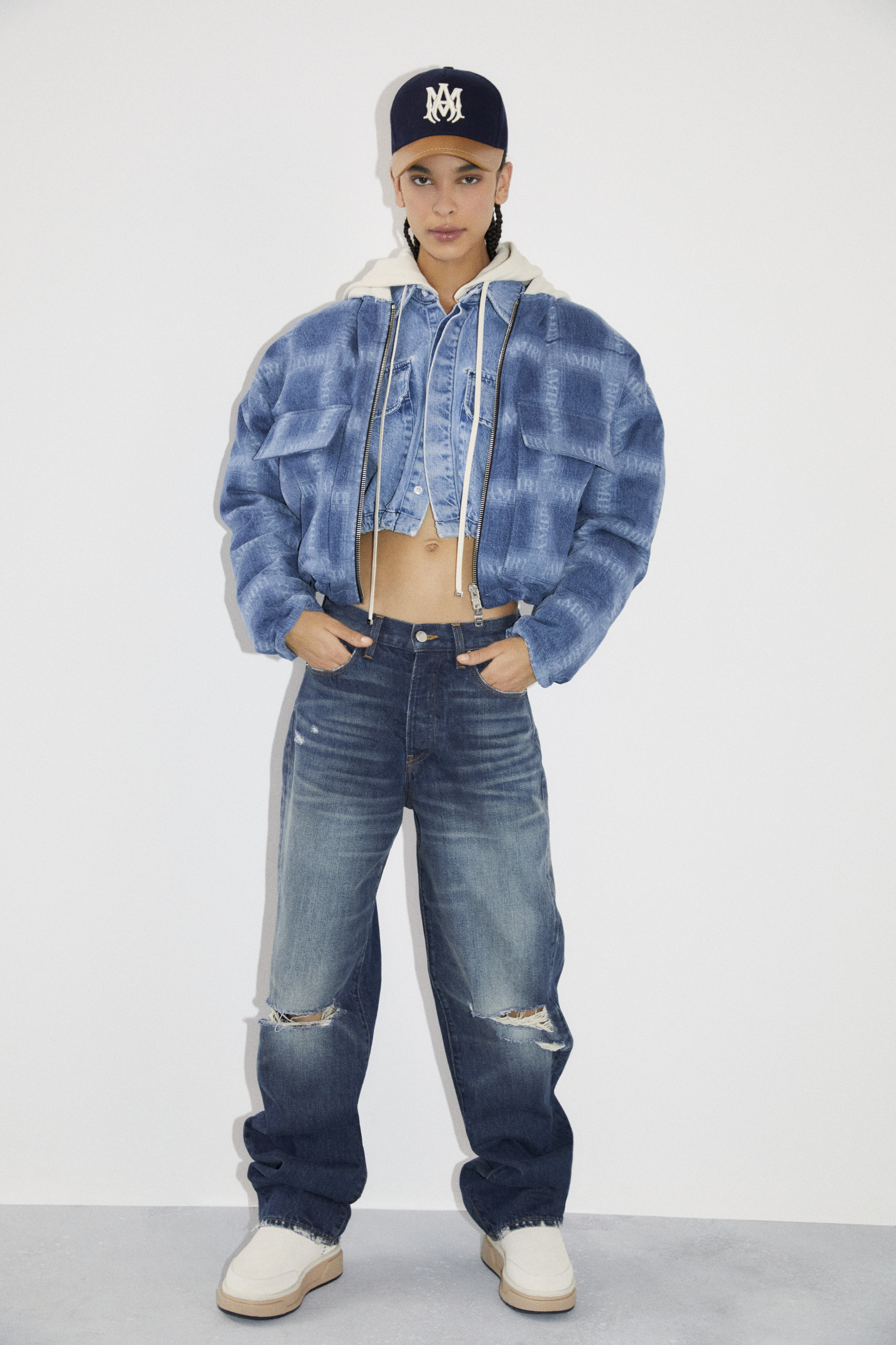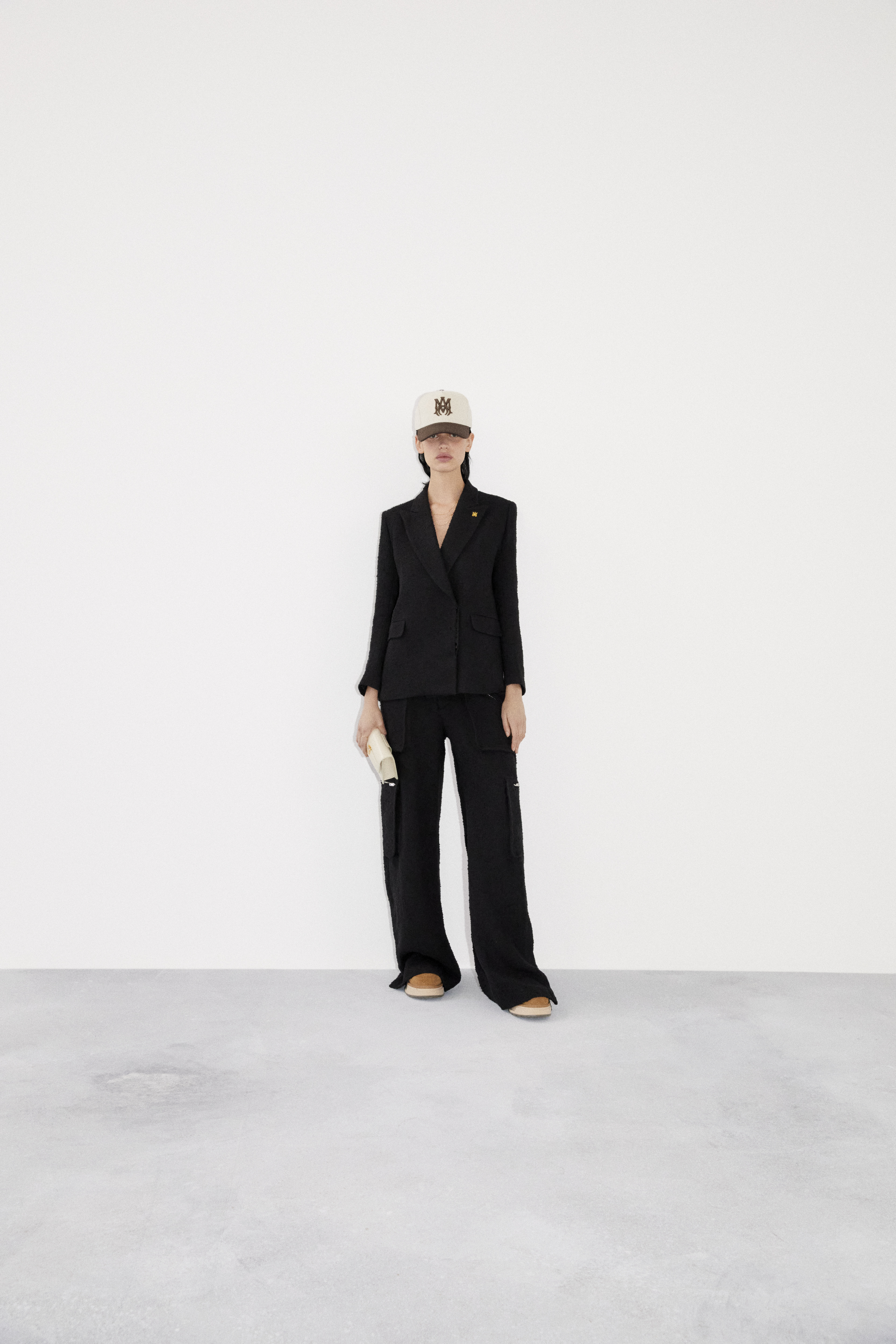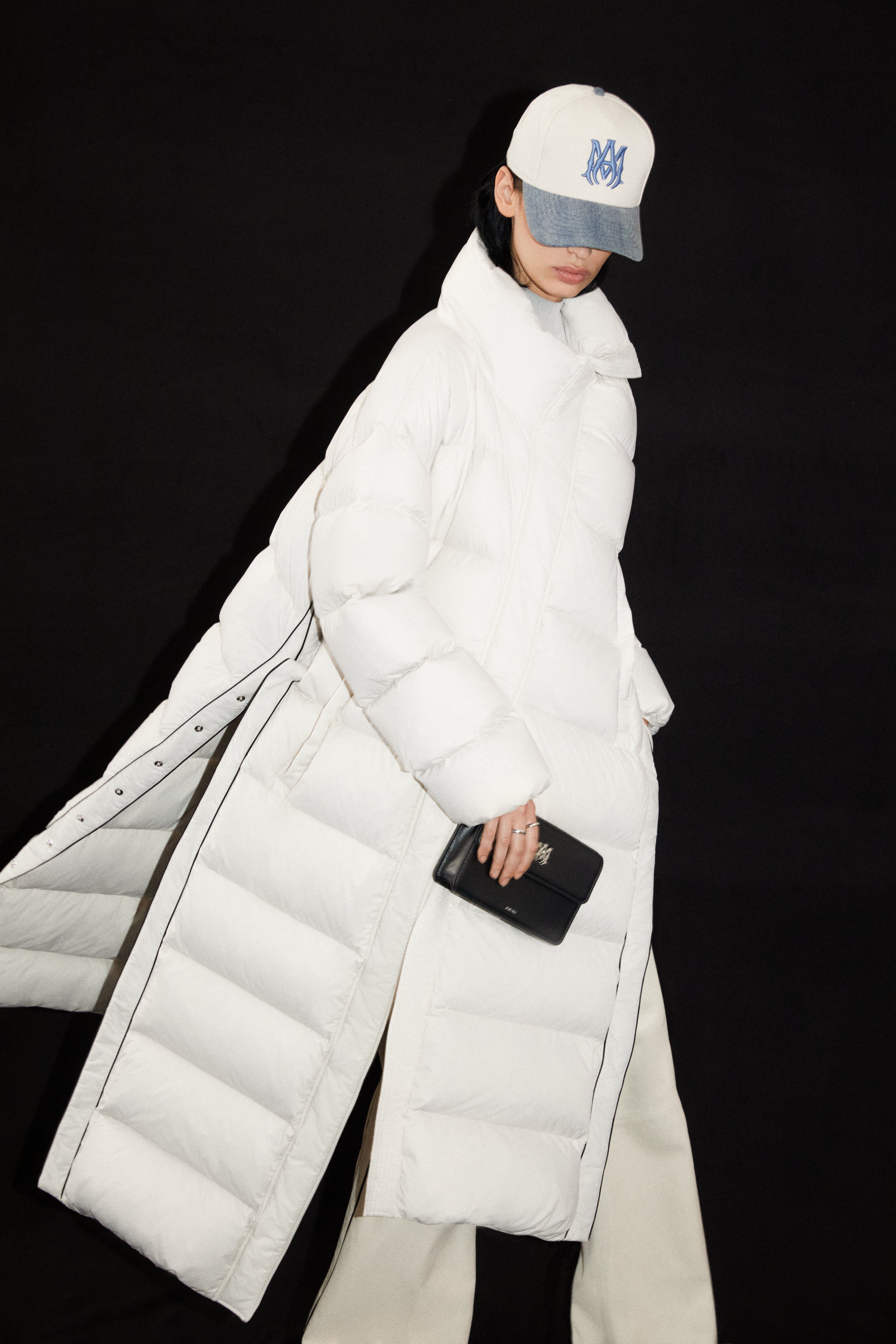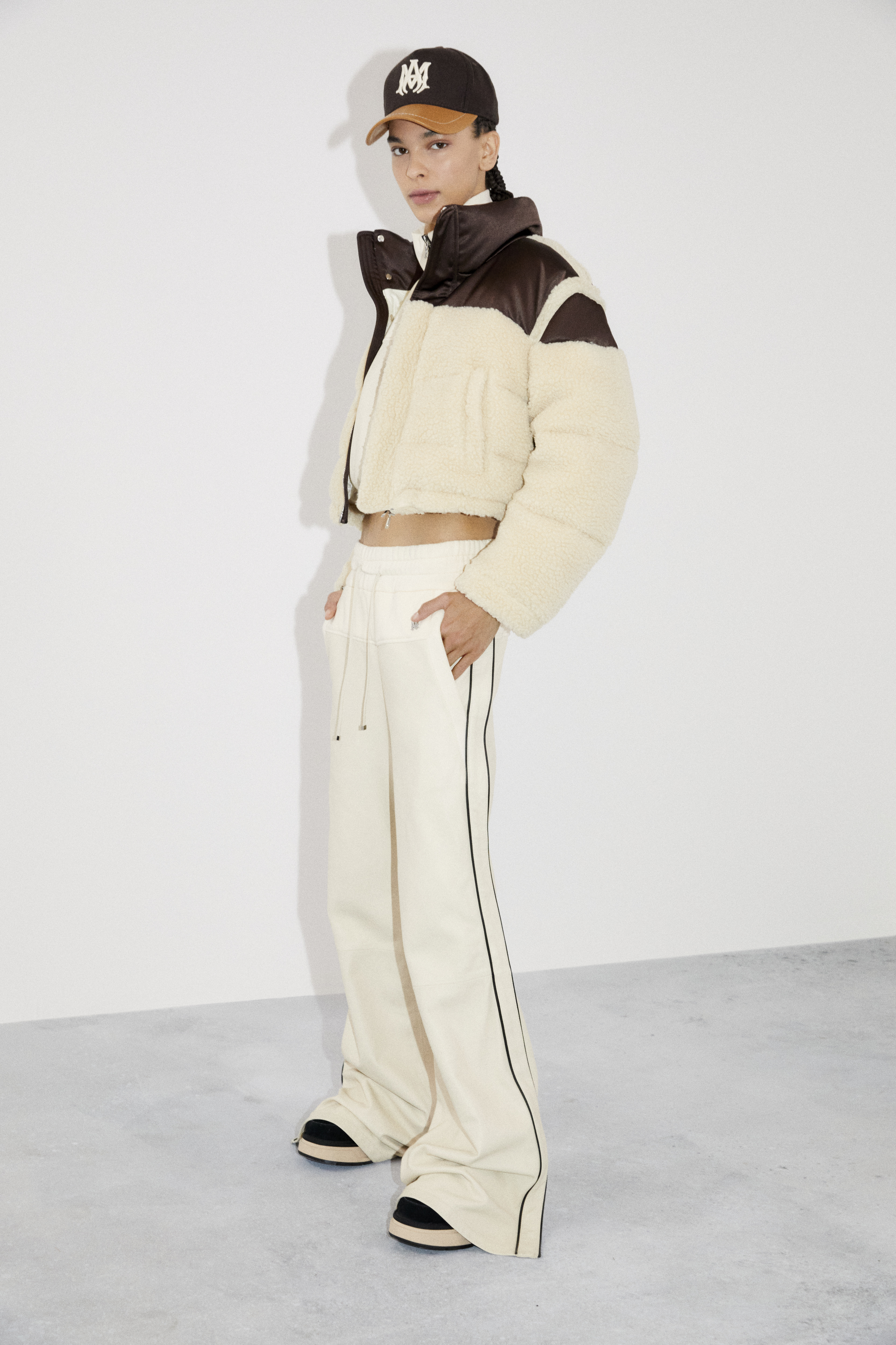The Collection sees womenswear silhouettes shrunken, cropped elongated and skewed, offering interchangeability of shapes and solutions guided by sculptural craft and adjustable detailing. Workwear and tailoring are interchangeable, such is the versatility and rigor of AMIRI's savoir-faire. Seams are replaced with button fastenings and the pragmatism of cargo pants area elevated. Lines shift with ease between form-fitting and oversized, emitting notions of soft masculinity and empowerment. Bursts of vibrant pink and blue accent a neutral canvas built for layered, tonal plays and textural statements. Fabrics are soft yet tough – leather, wool, nylon, shearling, velour – borrowed from the worlds of sport and utility, repurposed for the everyday.