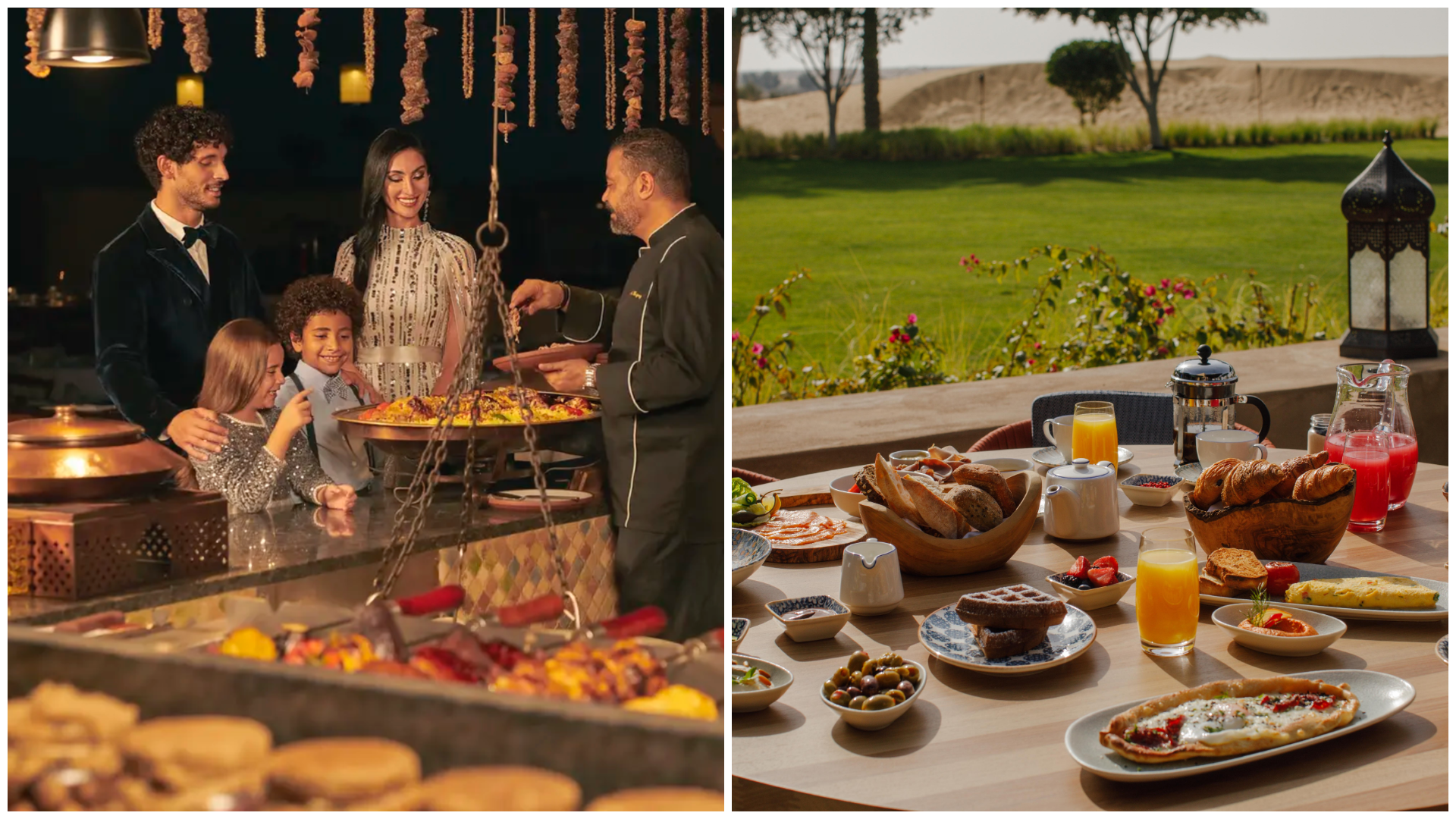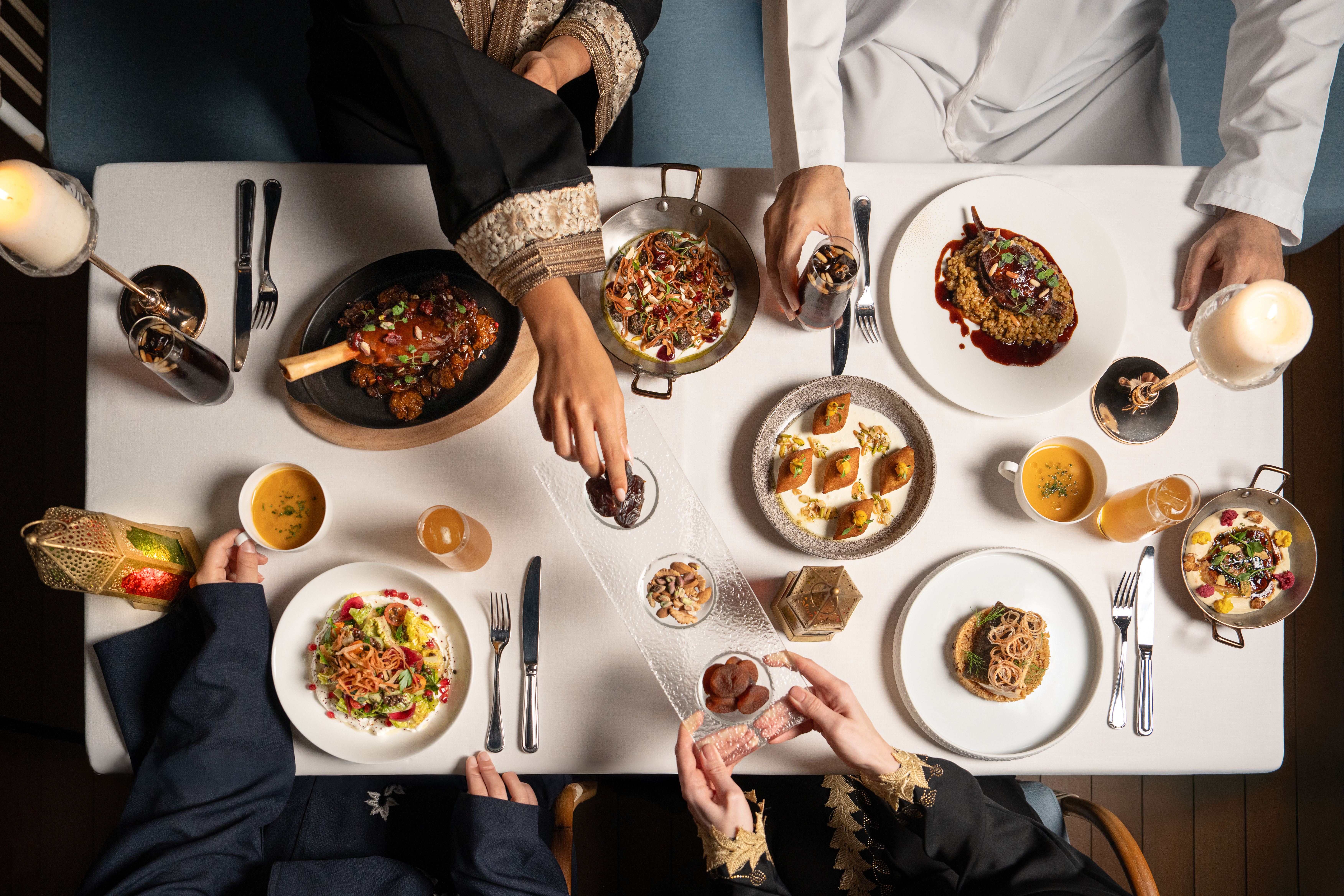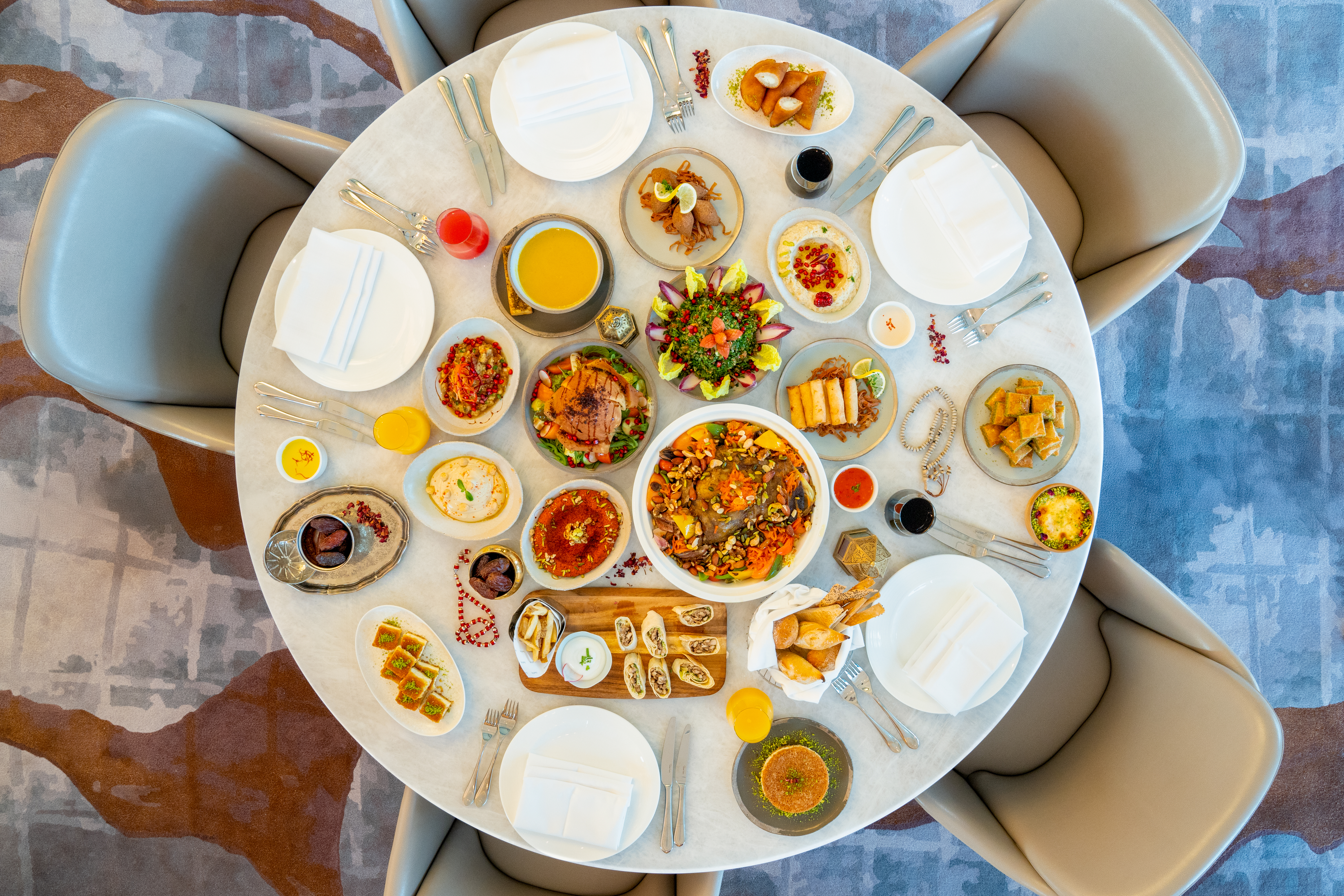 Steeped in history and tradition, The Chedi Al Bait in Sharjah offers an authentic iftar experience set in the heart of the emirate’s heritage district. Guests are welcomed with a lavish Levantine-inspired buffet featuring an array of traditional mezze, slow-cooked lamb Ouzi, Moroccan tagines, and vegetarian specialties. A decadent dessert spread completes the experience, featuring Kunafa, Umm Ali, and baklava.