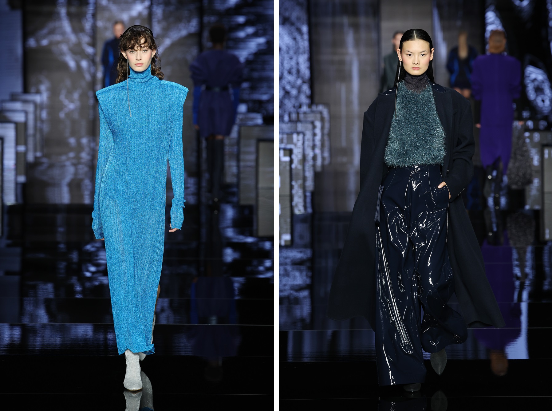 Color is the main character and combines the creative vitality of the artificial intelligence with softer, otherworldly elements: from crayons, influenced by technology such as mint and powder, to bright technological watery tones such as lilac, amethyst, magenta and yellow, all the way to blue black, gray and khaki. An engaging video designed by studio WOW during the Fashion Show, will immerse the audience into the digital world with the same colors and emotions of the live fashion show, creating a sensory unique experience.