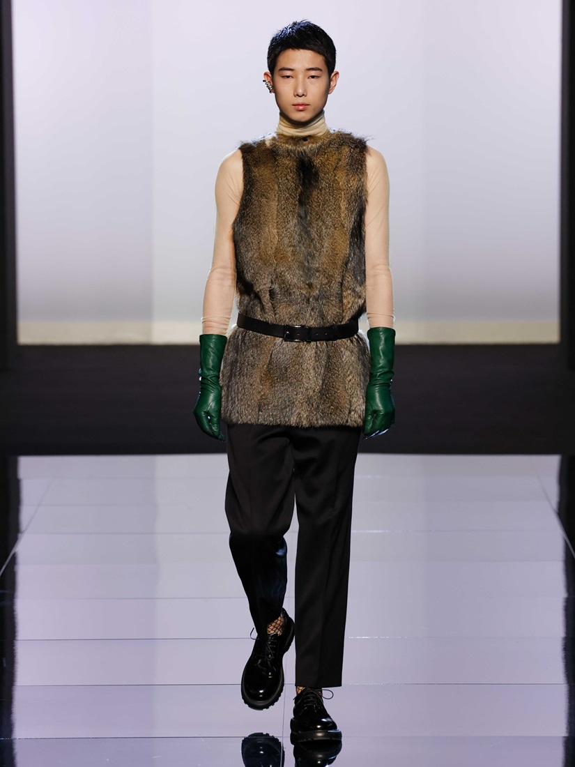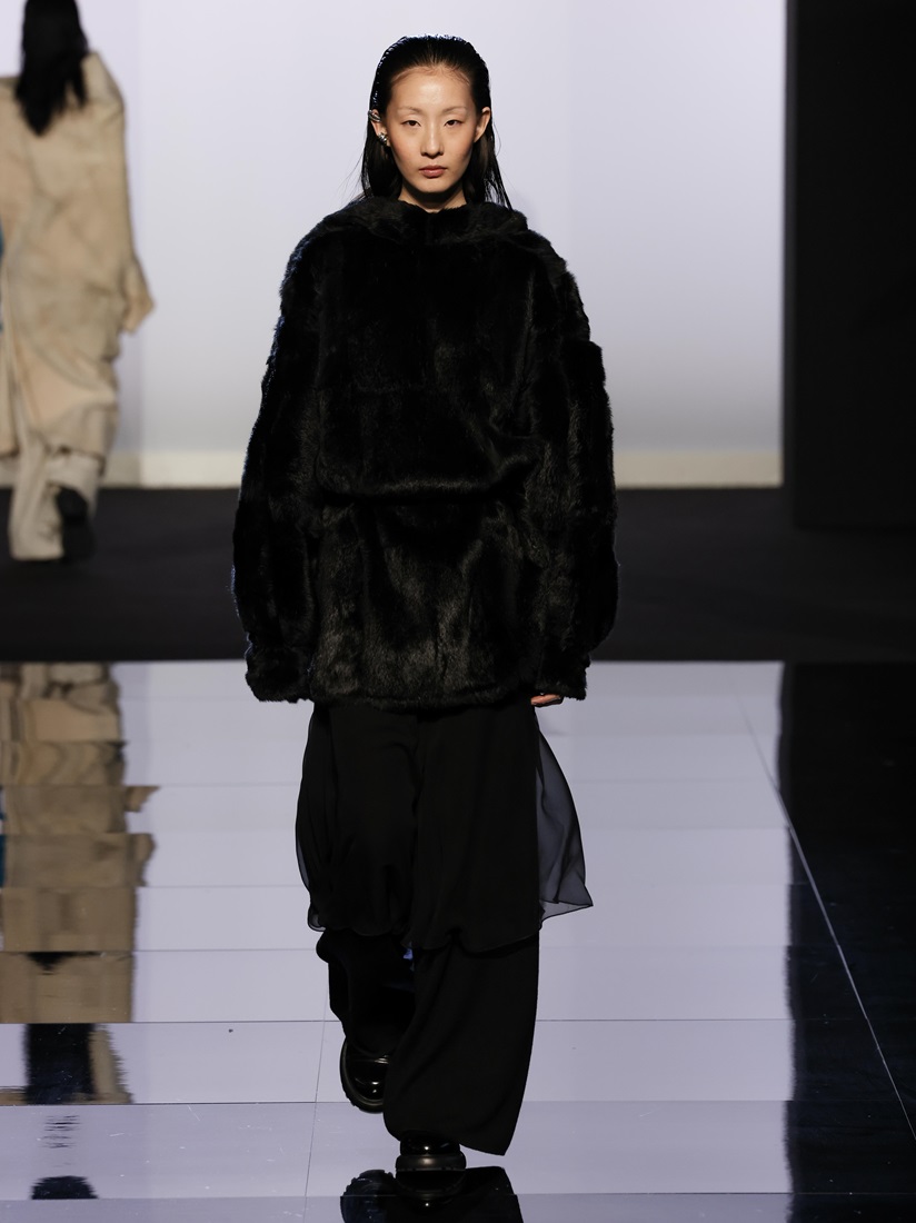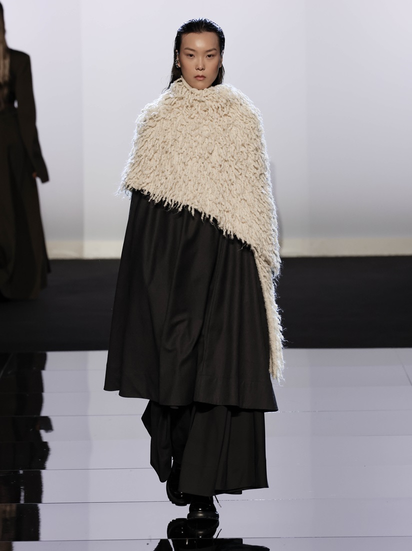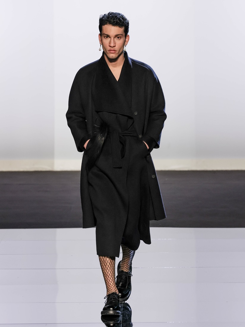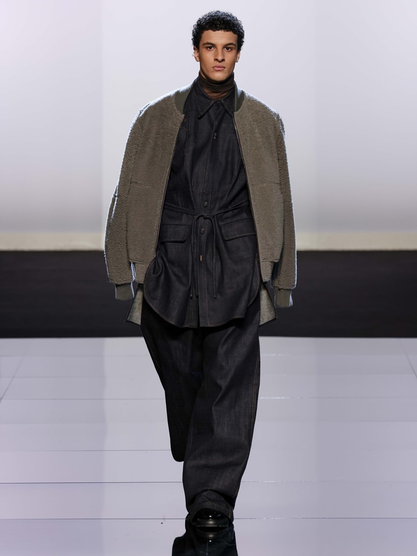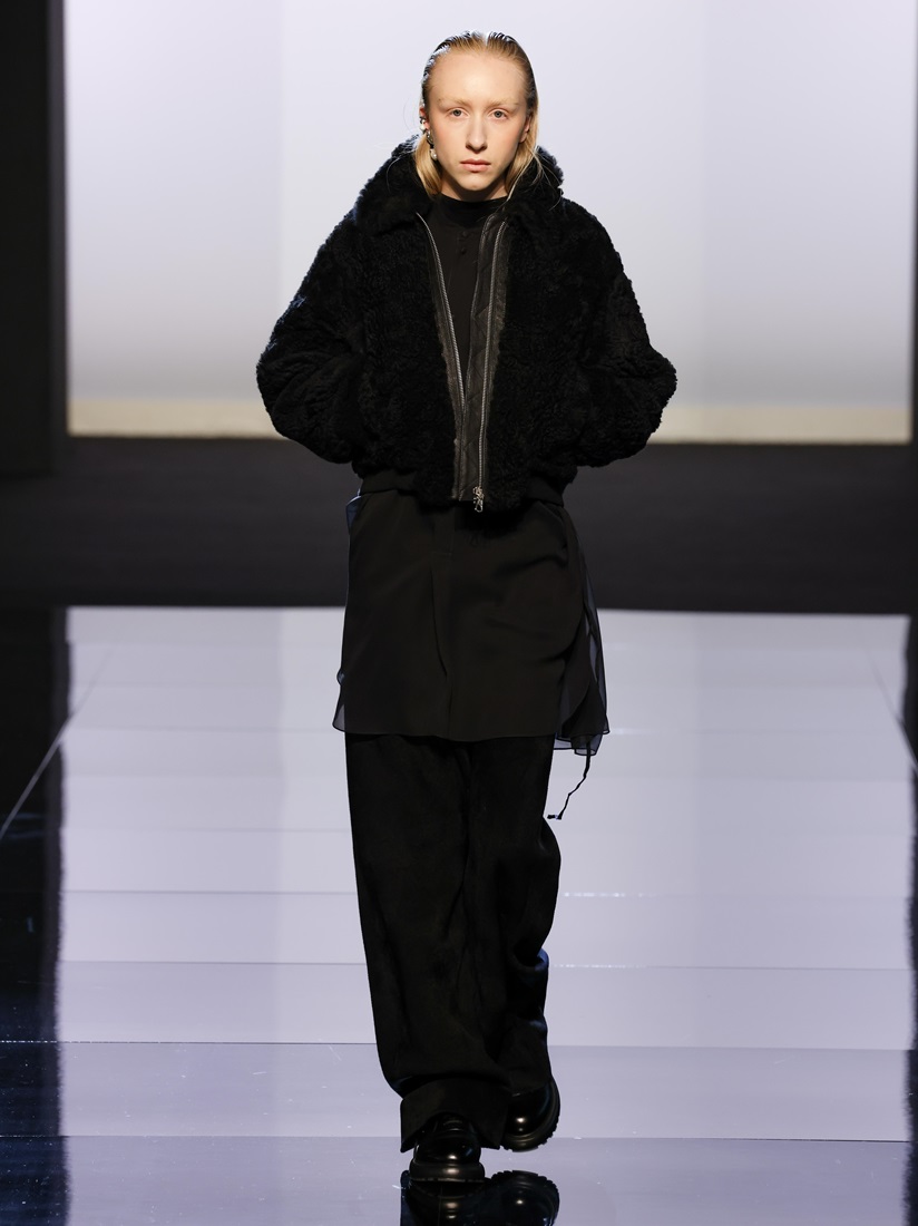 Zambelli reflects and creates a dialogue between these dualisms, transforming silence into a visual language. The designer explores the world of tailoring through the use of leathers with sophisticated and elegant textures, precise cuts with embracing forms in a timeless minimalism.