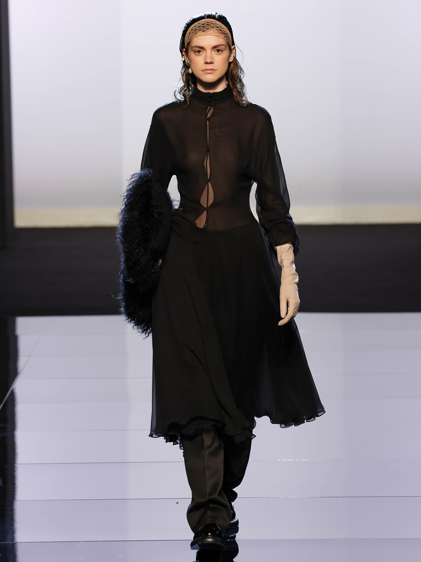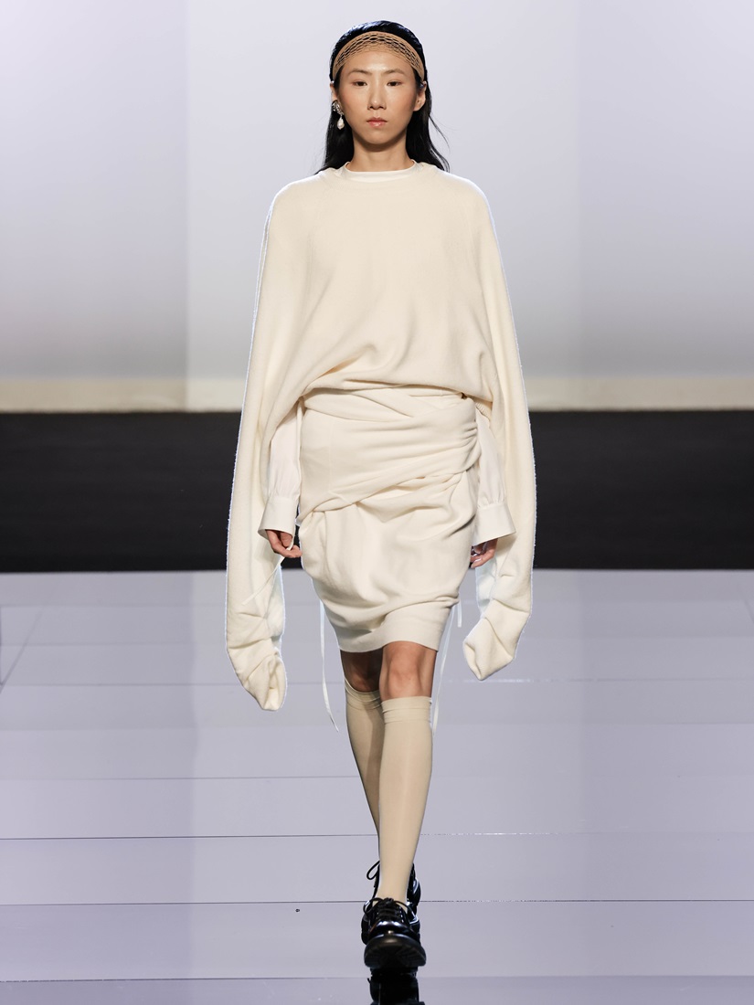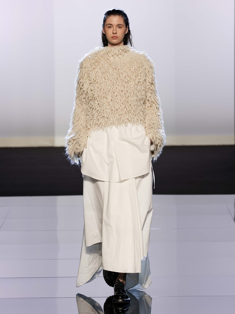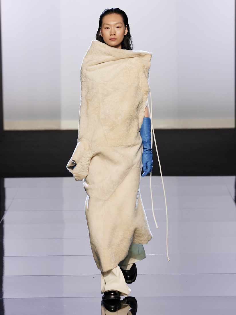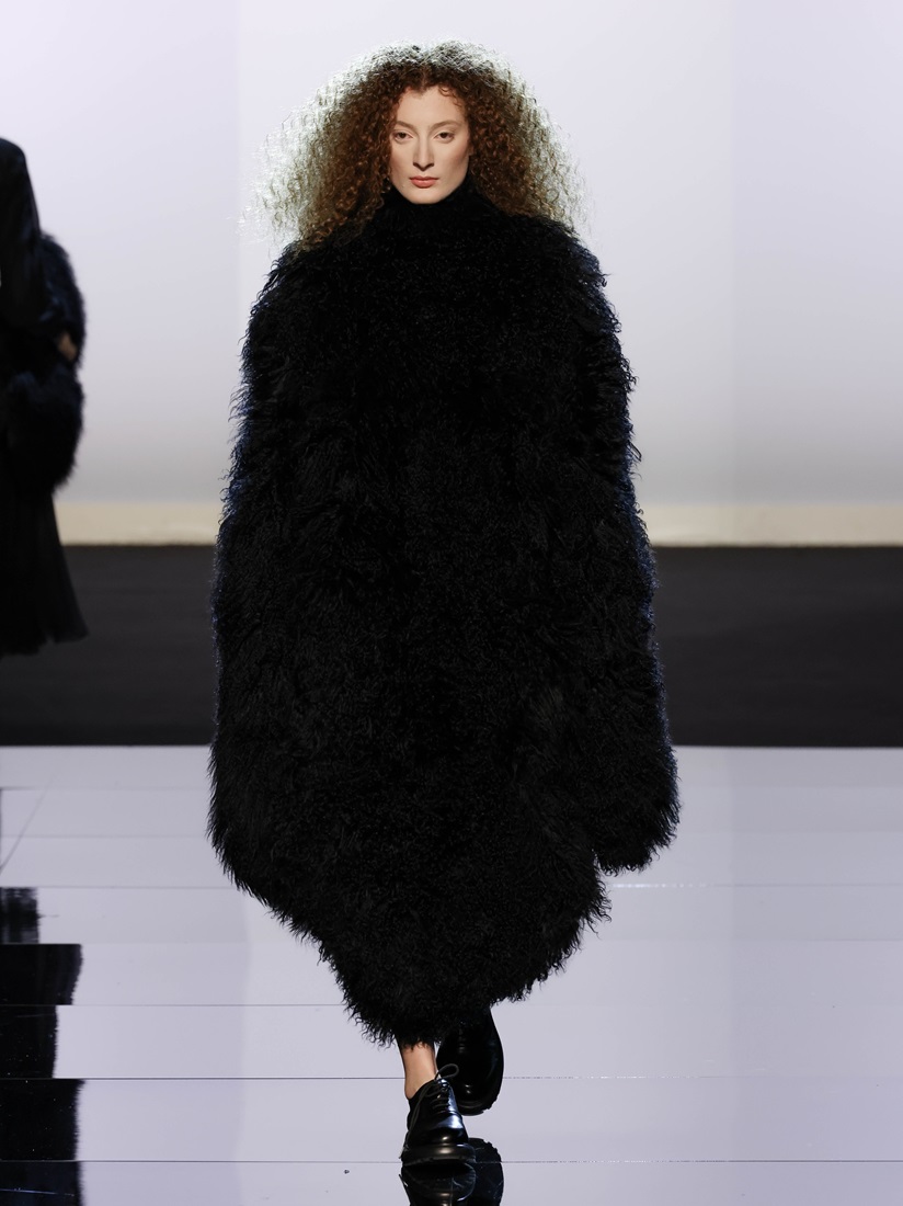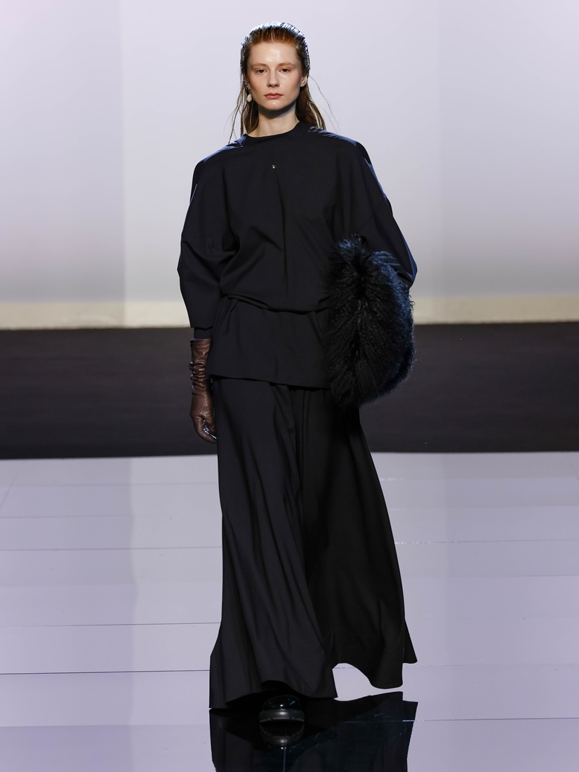 Zambelli reflects and creates a dialogue between these dualisms, transforming silence into a visual language. The designer explores the world of tailoring through the use of leathers with sophisticated and elegant textures, precise cuts with embracing forms in a timeless minimalism.
