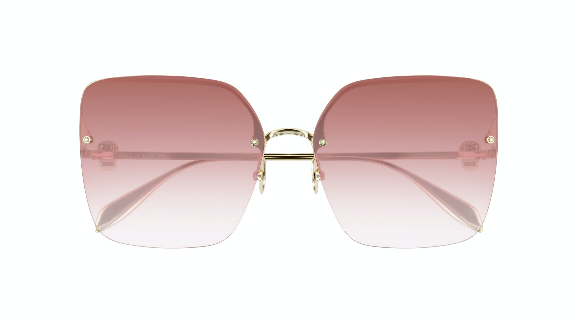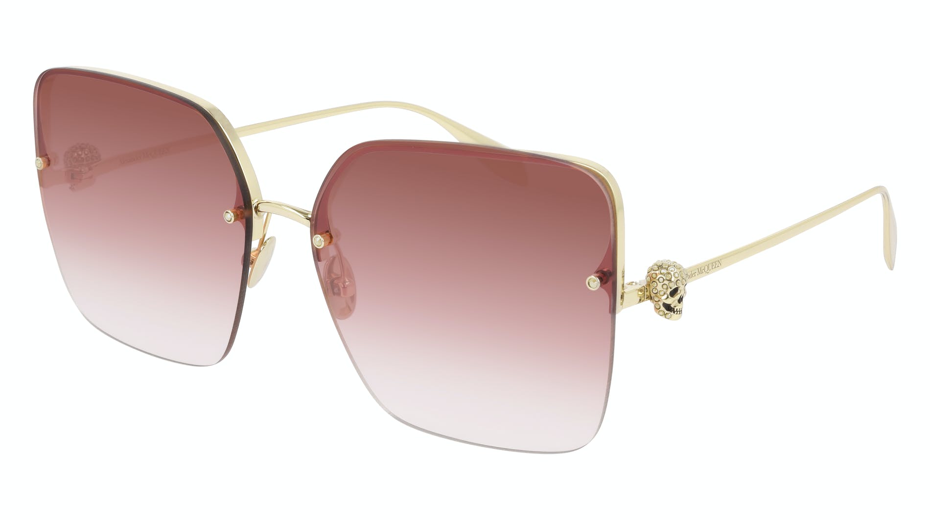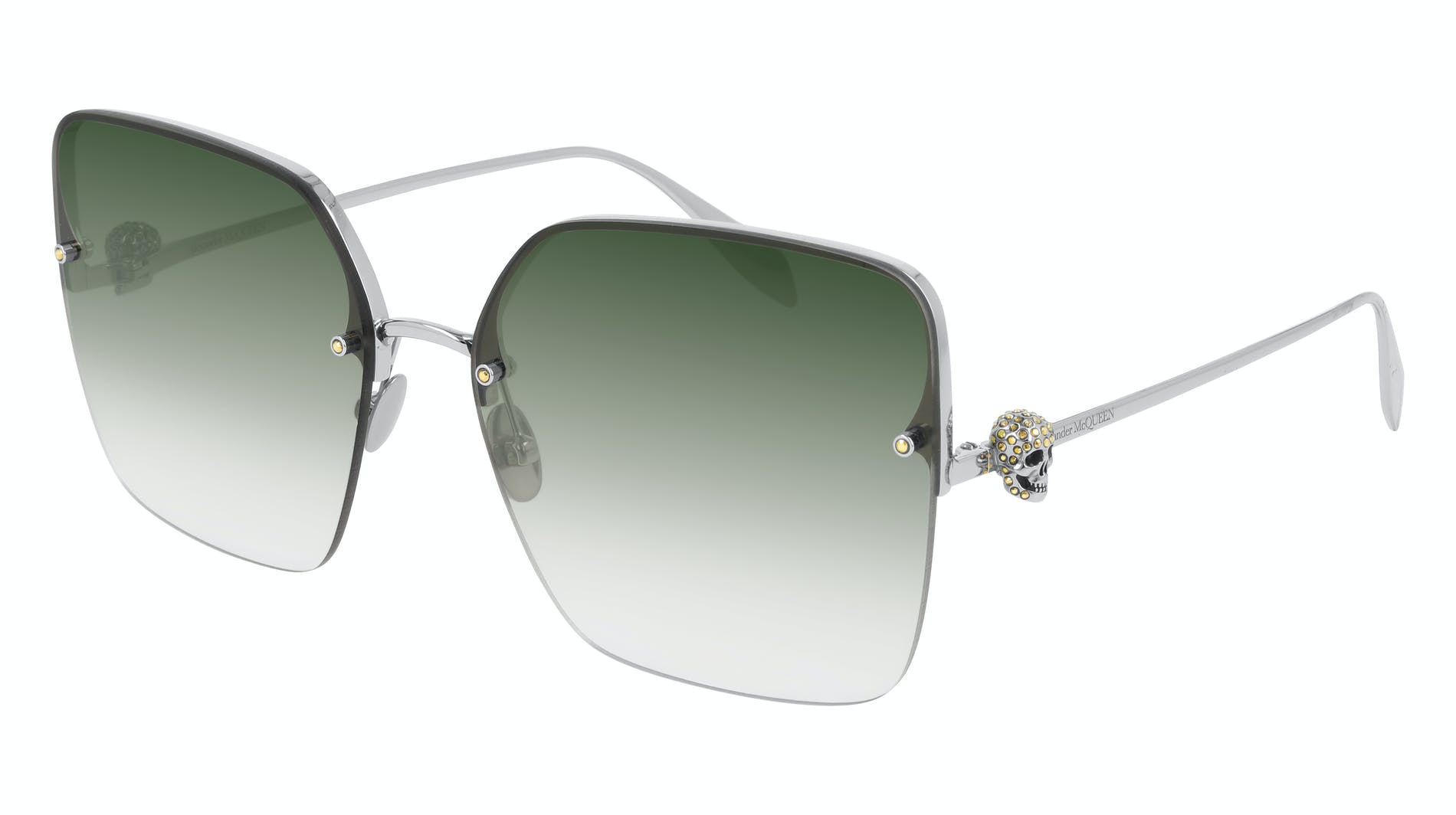 These square-shaped rimless sunglasses are enhanced by micro crystal studs. Jewelled skulls enrich slim temples.