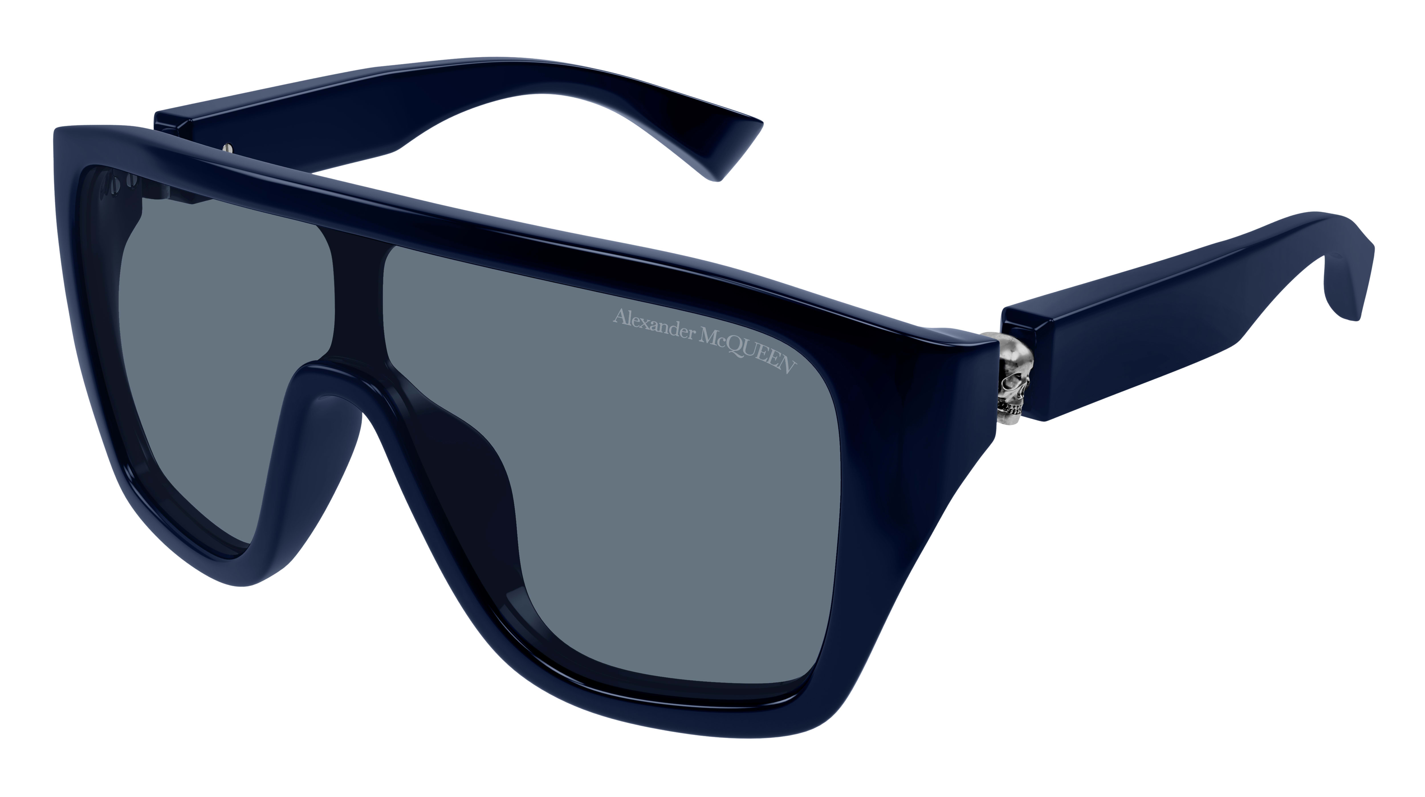 Alexander McQueen launches The Floating Skull Mask Sunglasses. These sunglasses offer a new iteration of one of Alexander McOueen's most recognizable signatures: the skull. The sunglasses have a modern mask shape, enhanced by their British punk-inspired hardware. A three-dimensional metal skull, integrated into the hinge, appears to float at the edges of the glasses’ frame.