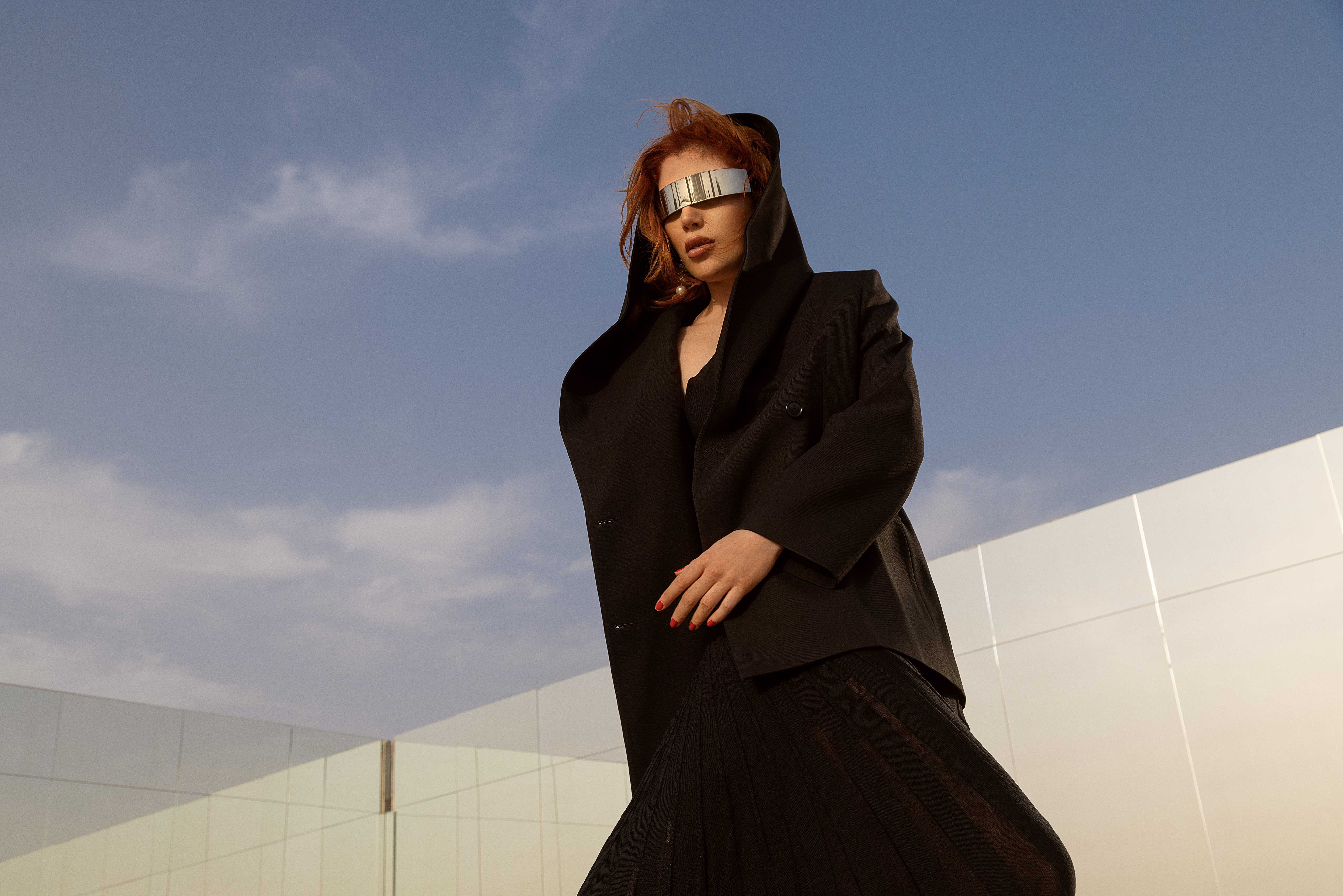Dress and hooded blazer @alaia, Shoes @YSL, Earrings @Allesandra Rich Shades stylists own