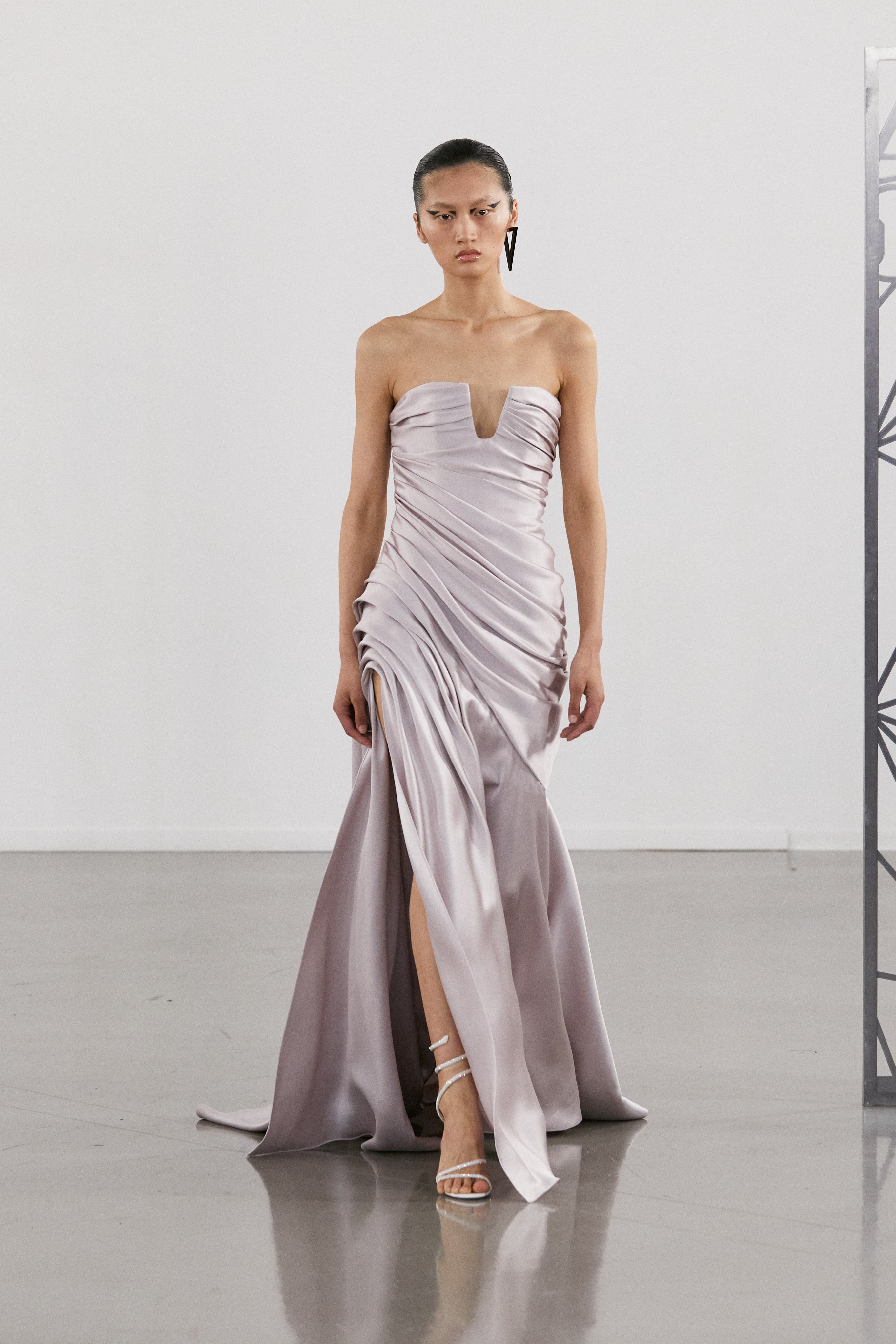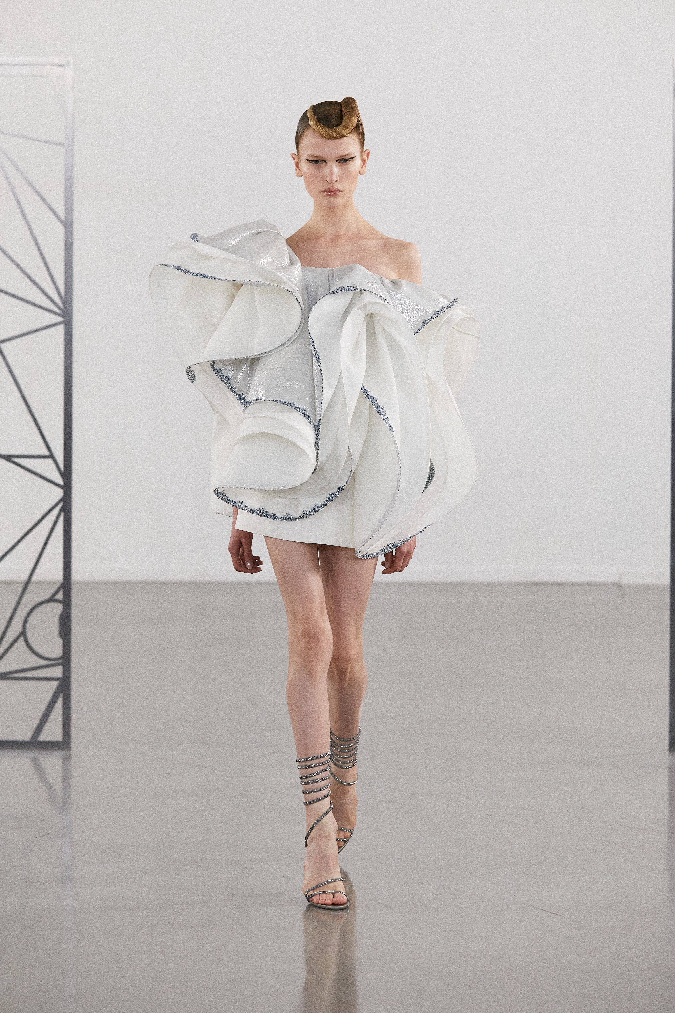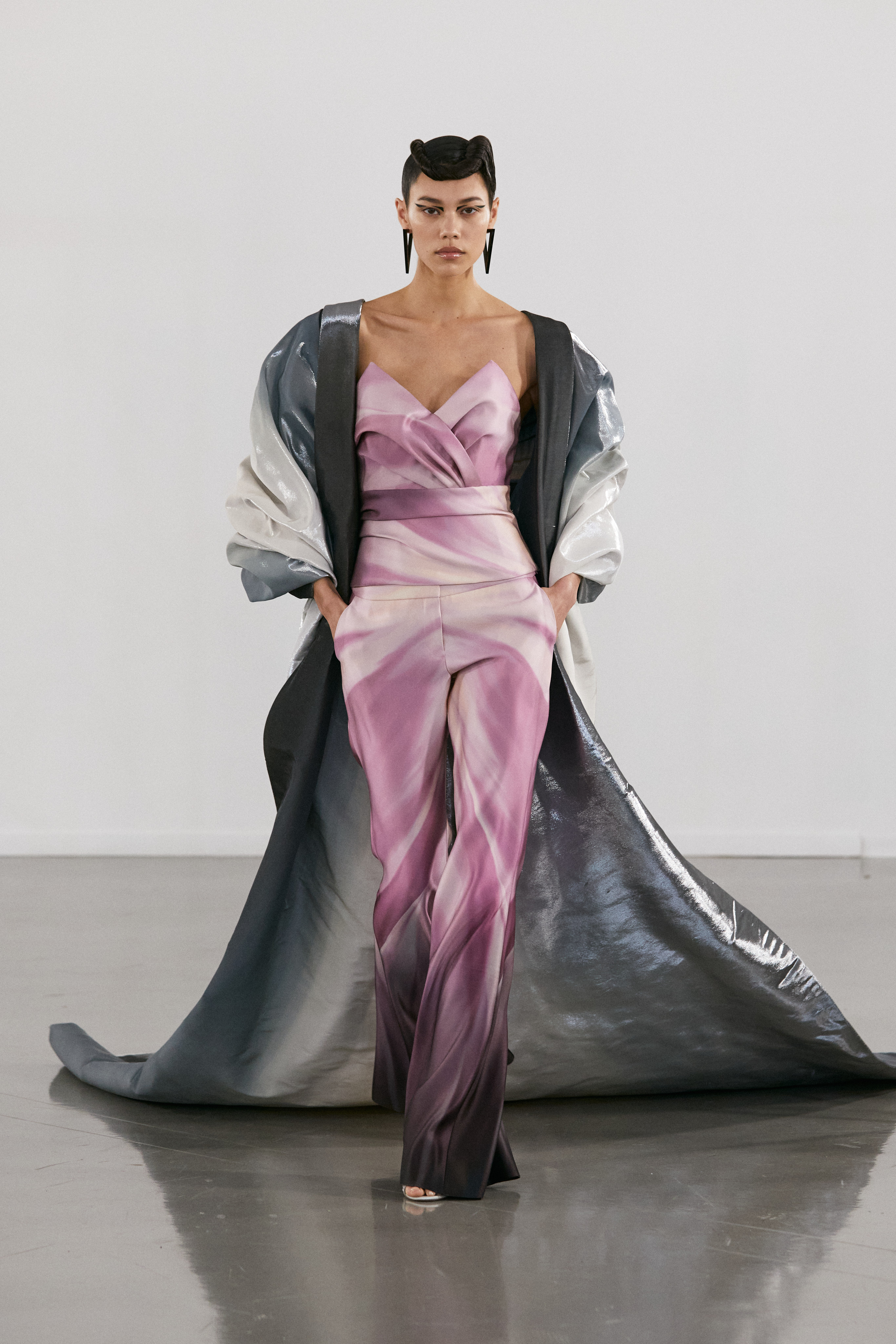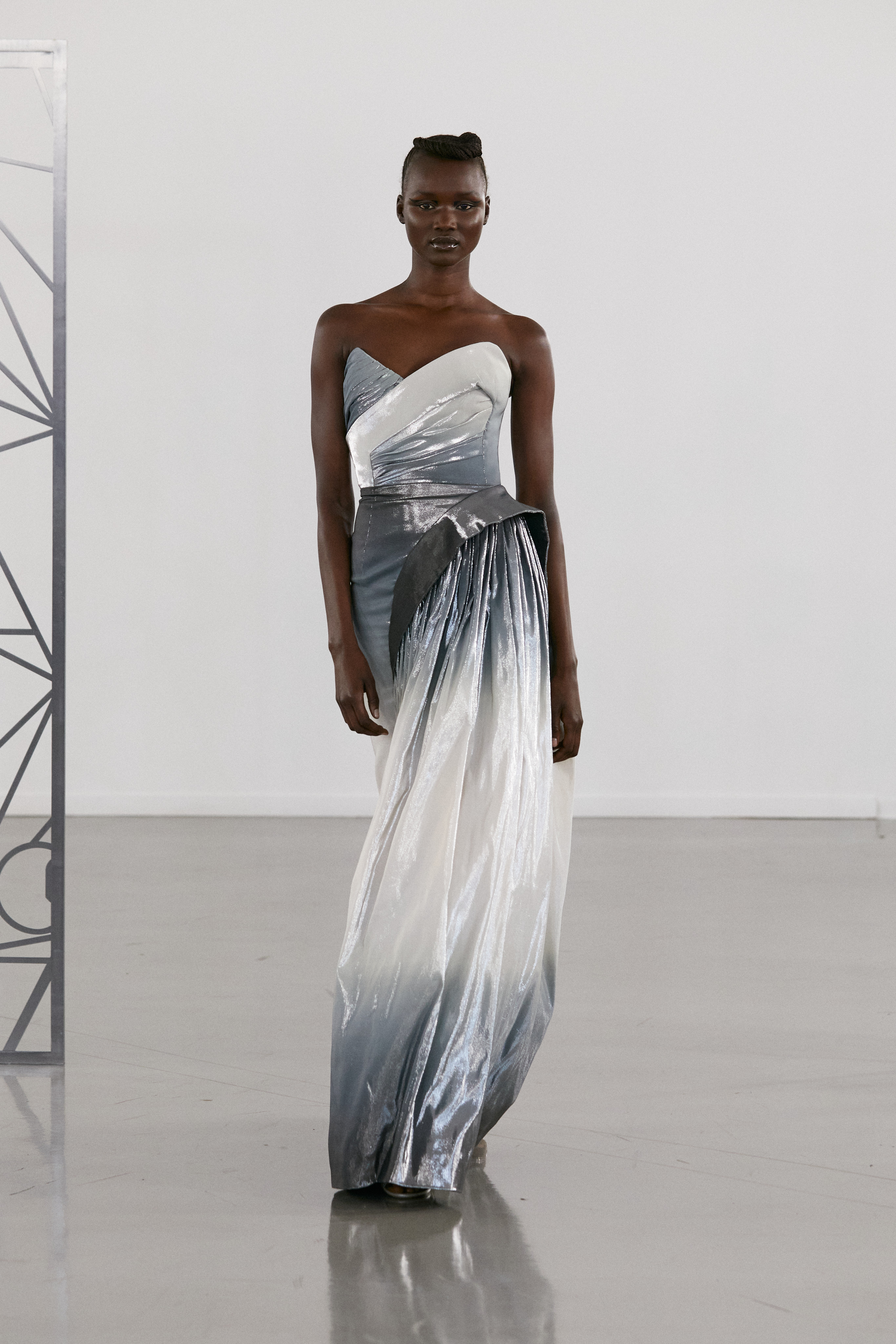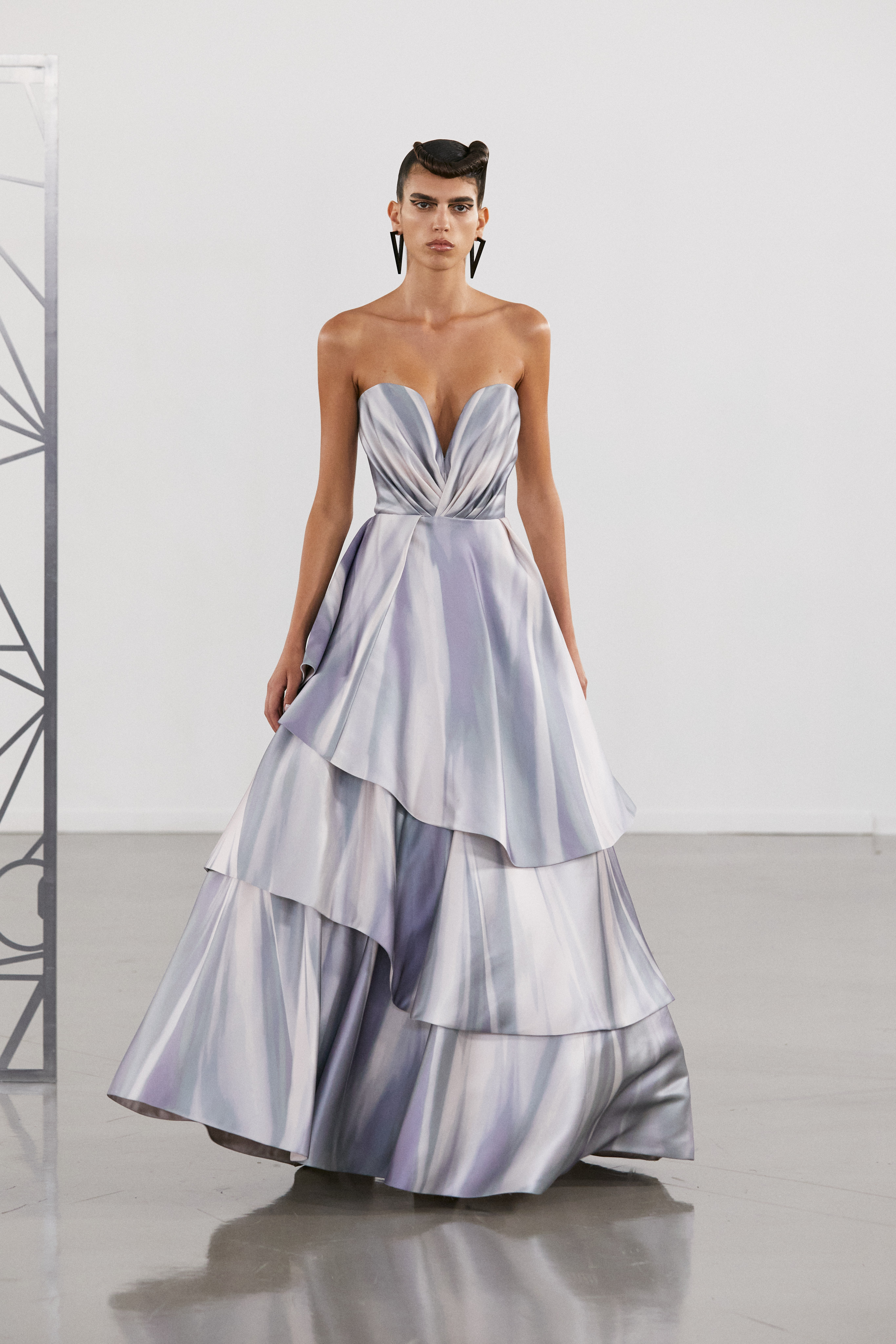 “The Diffraction of Light is at the heart of ArdAzAei’s design philosophy, a phenomenon I have been exploring since I studied gemology and discovered the optics which expose how a gem’s beauty is a reflection of its inner world,” creative director Bahareh Ardakani says. “This is why ArdAzAei puts so much focus on developing our own fabrics and working with France’s most esteemed craftspeople to construct our couture, as it’s through the attention paid to a garment’s inner world that its outer radiance is revealed.” As such, ArdAzAei is proud that over a quarter of the couture creations within The Diffraction of Light are certified according to GOTS, the Global Organic Textile Standard (certified by Ecocert Greenlife 257263).