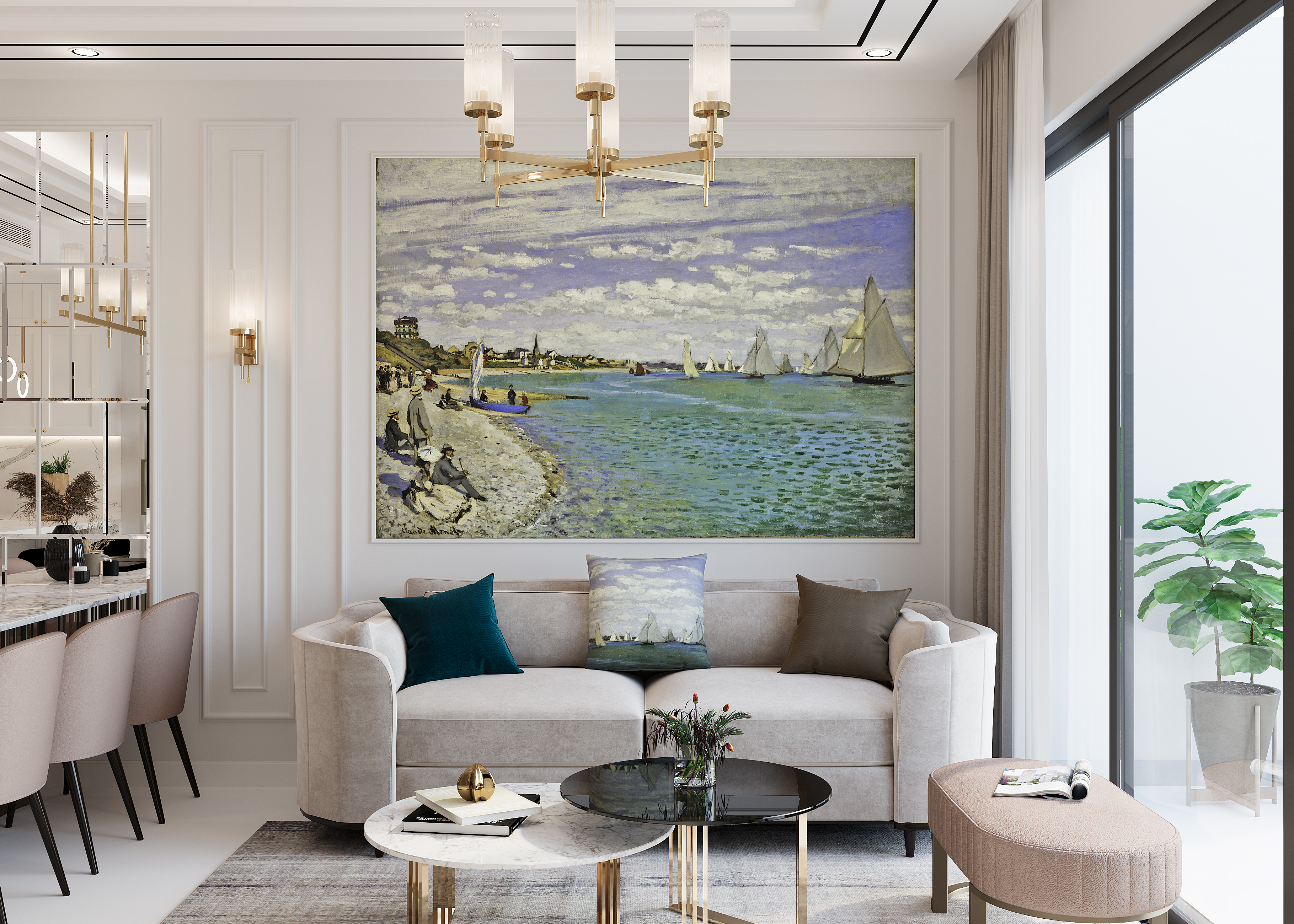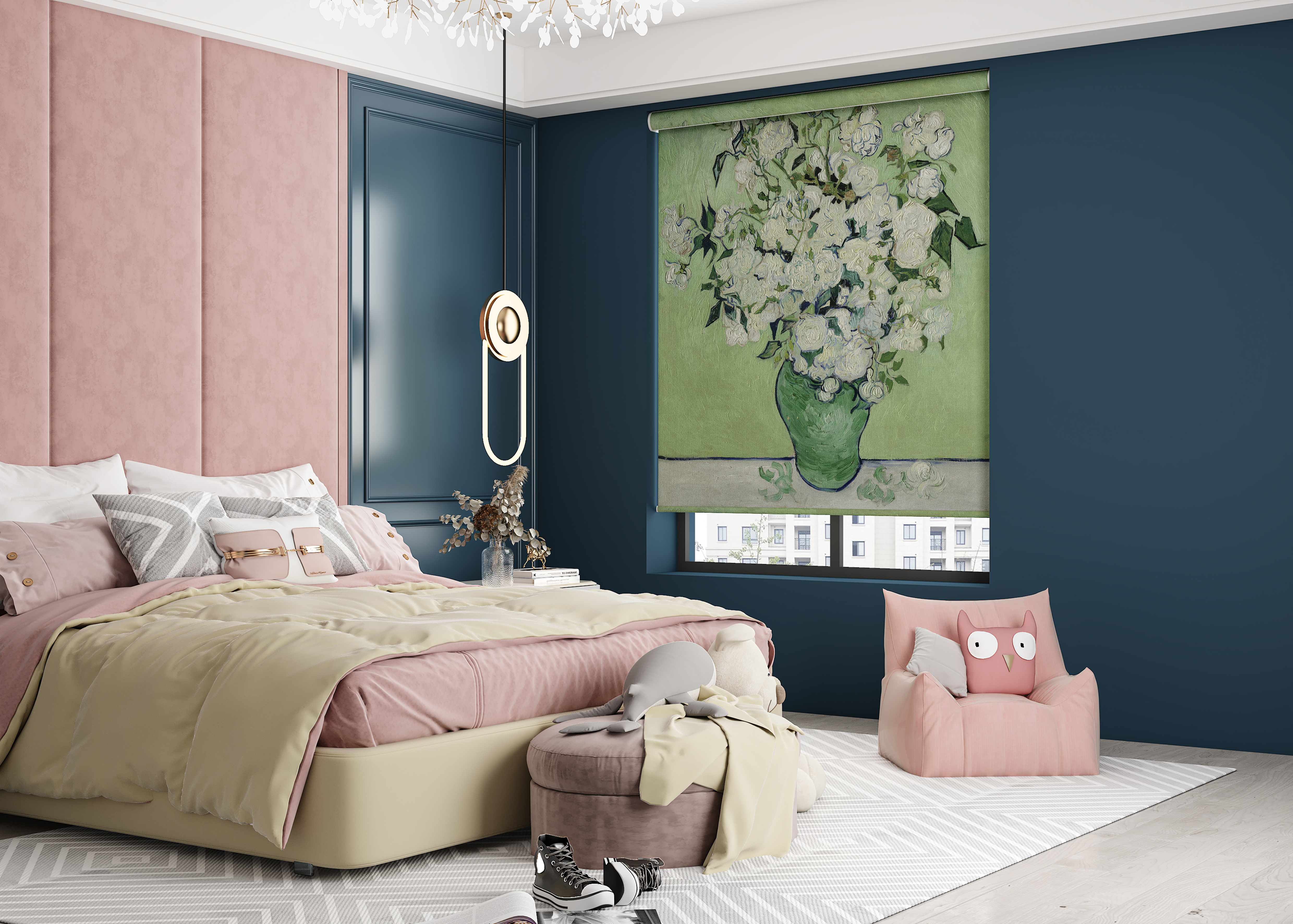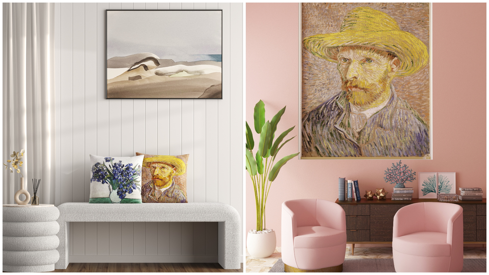 Beloved works of art spanning from historic to modern, including Claude Monet, Vincent Van Gogh, Charles Demuth, Katsushika Hokusai, Gustav Klimt, Vasily Kandinsky, Rembrandt van Rijin and Henri de Toulouse-Lautrec have been translated and inspired designs across wallpapers, curtains, roller blinds, pillows and upholstery to create an unforgettable artistic talking point.