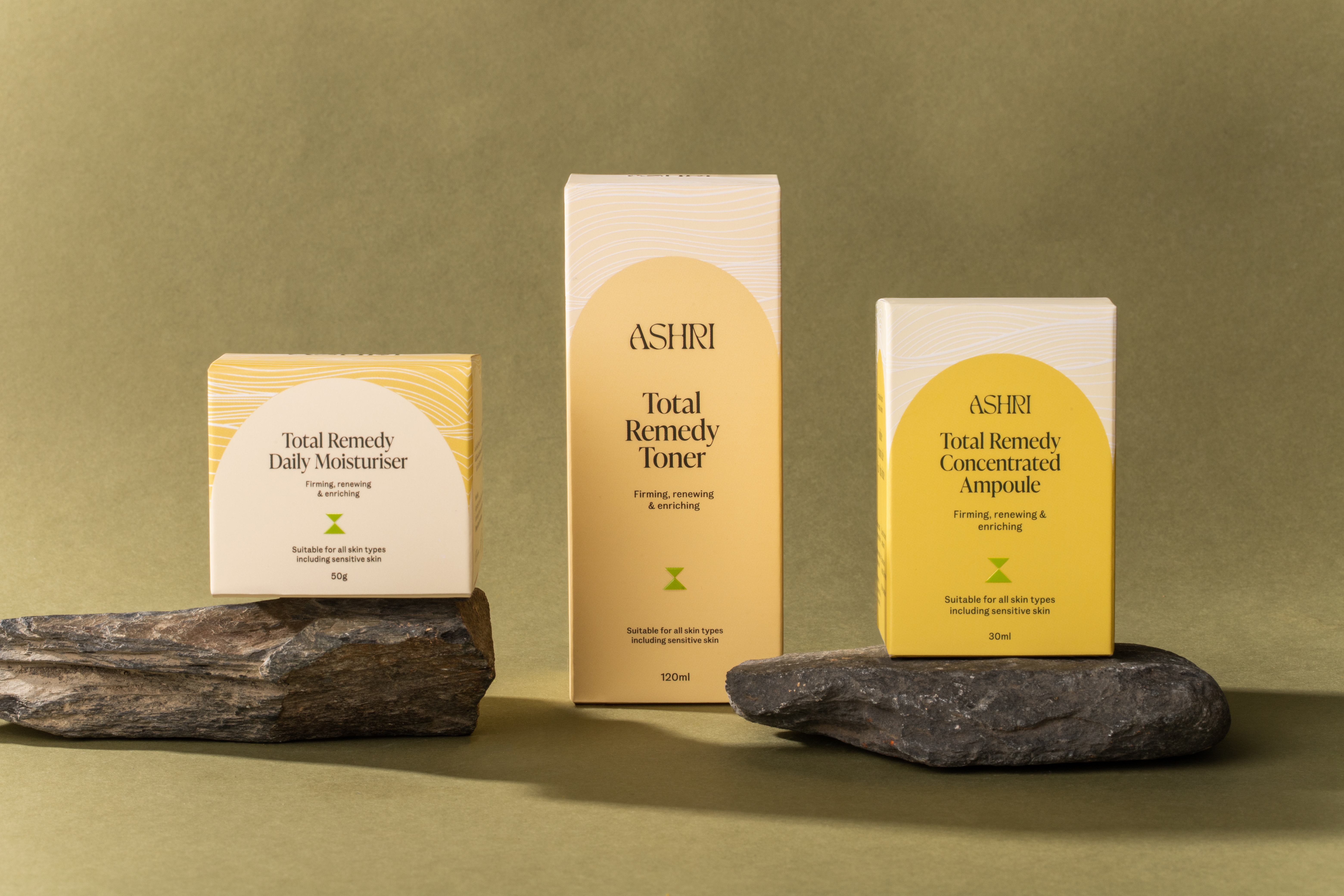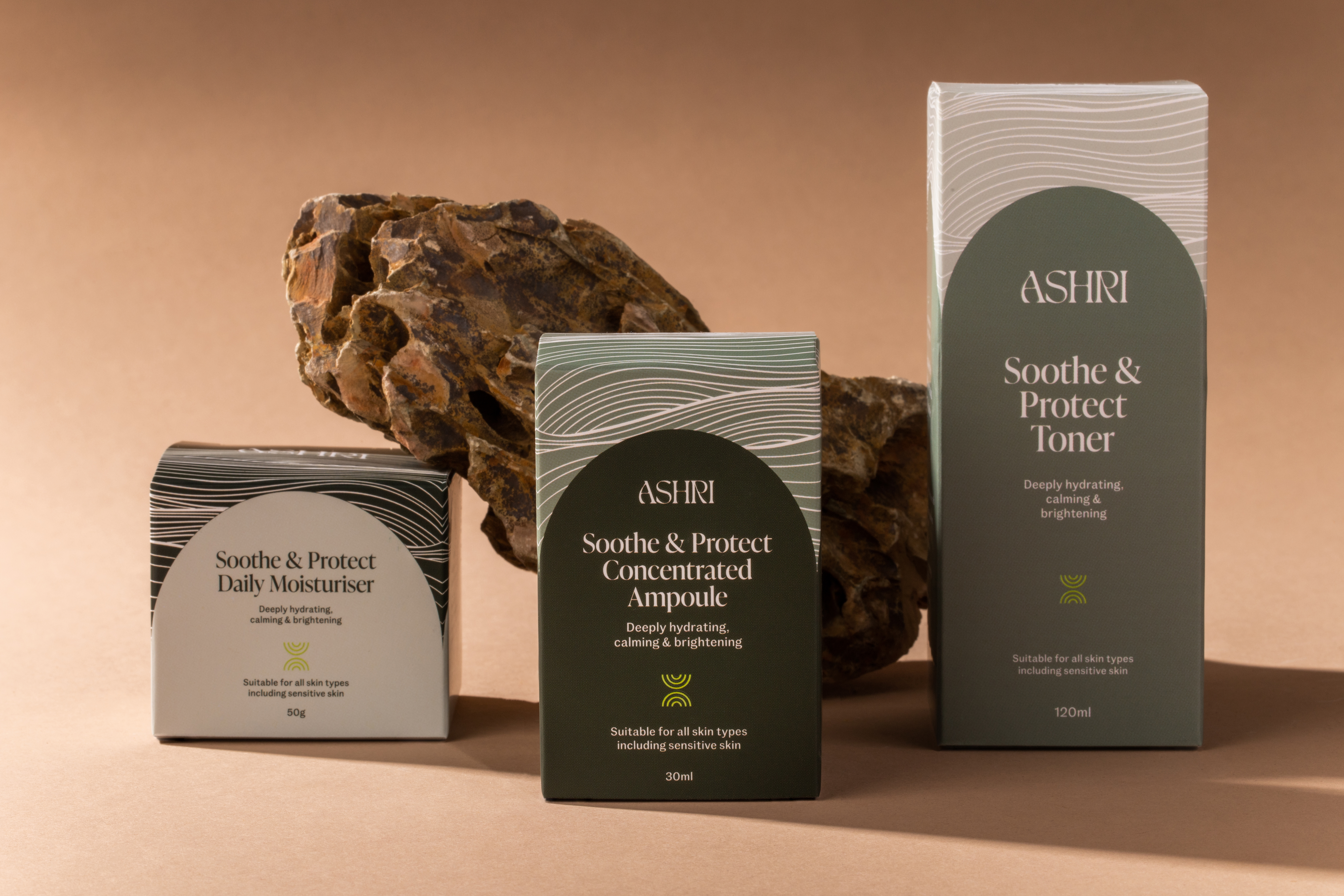 ● Luxurious Aesthetic: Ashri Skin has invested heavily in its sanctuary-like, luxurious packaging and identity, creating a skincare experience that is harmonious and indulgent.