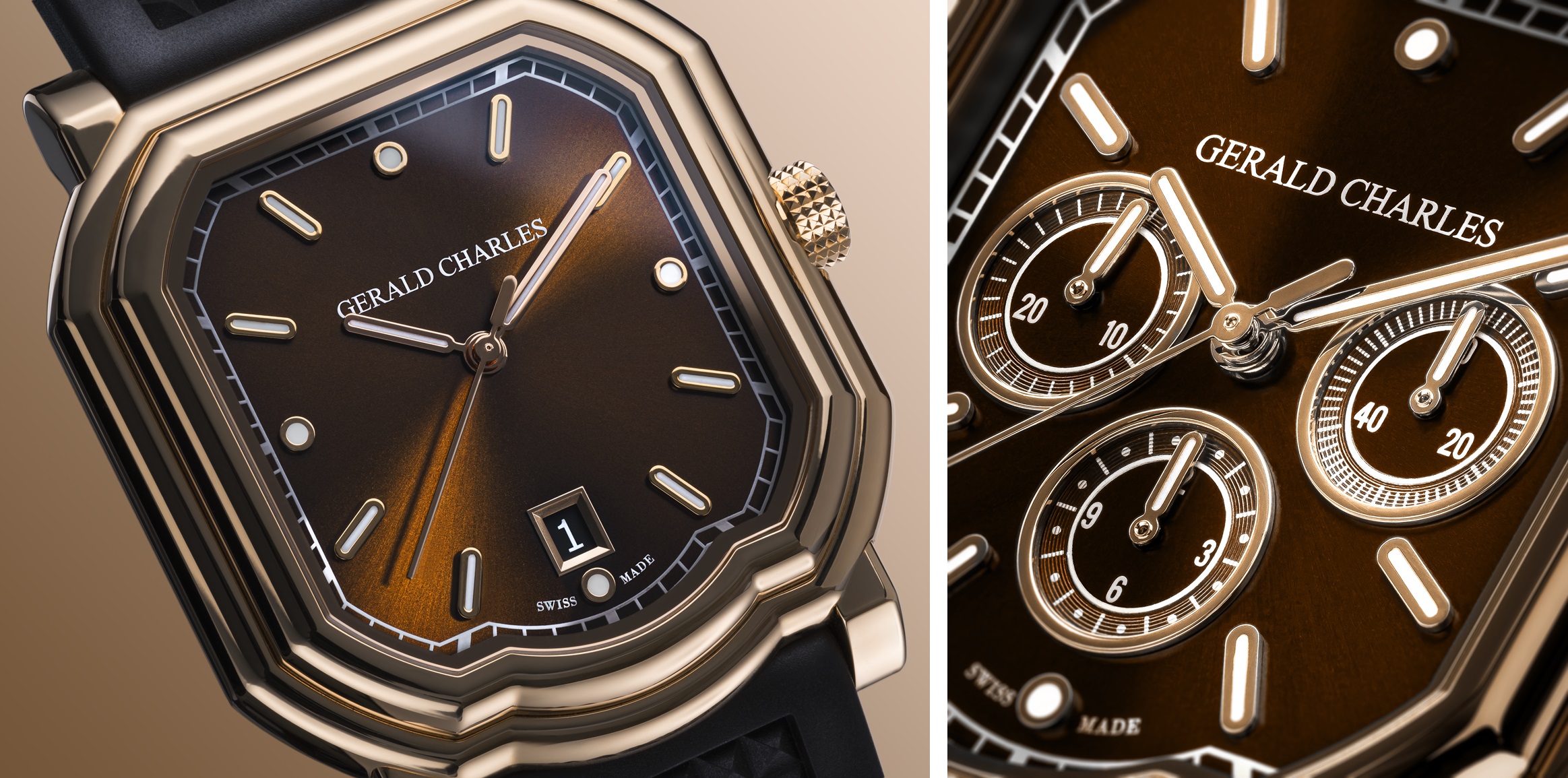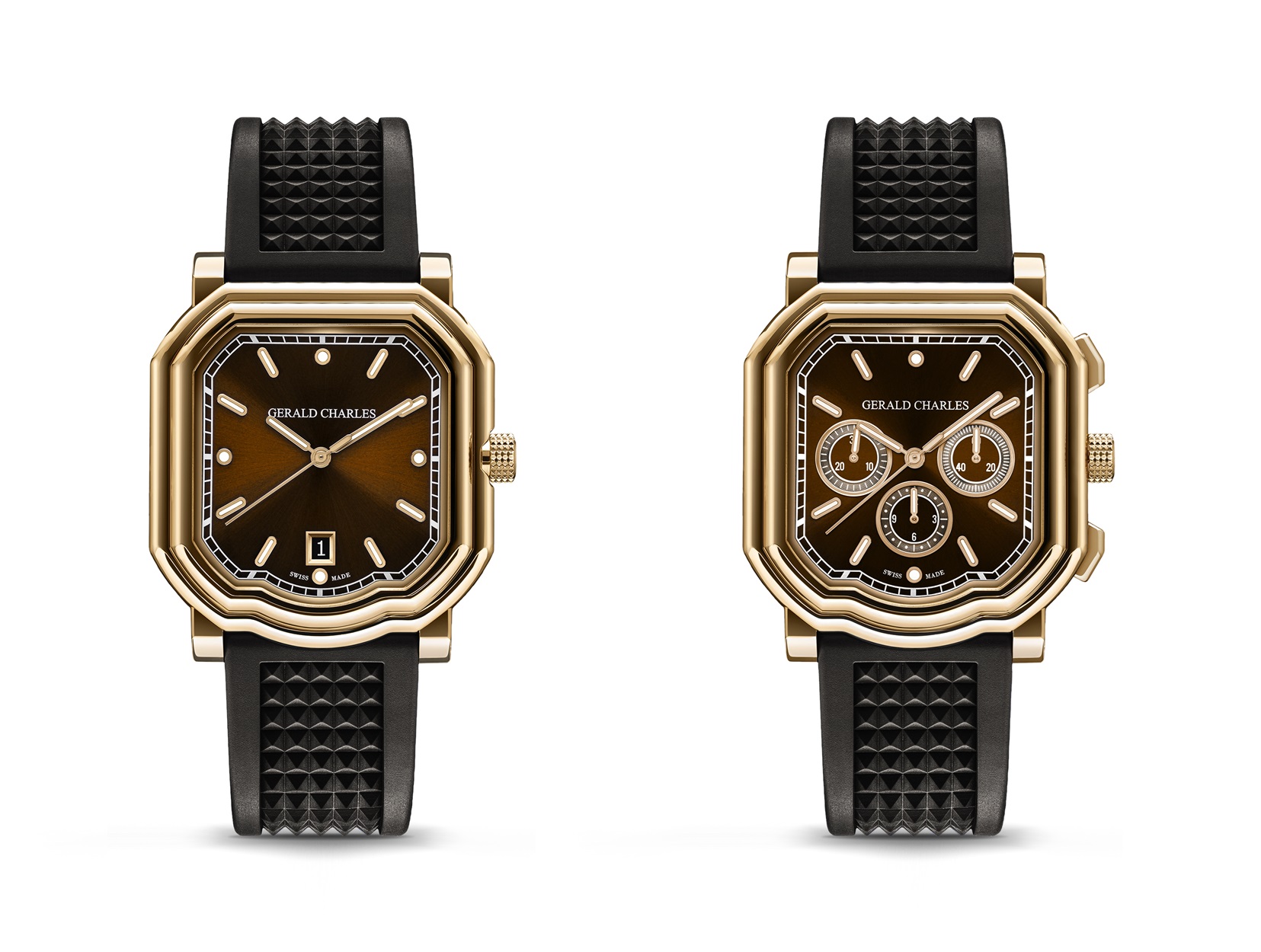 Maison Gerald Charles has launched two new watches: the Maestro 2.0 Ultra-Thin, Ref. GC2.0-RG-05, and the Maestro 3.0 Chronograph, Ref. GC3.0-RG-05, both in 18K Rose Gold 4N with a Chocolate Brown vulcanised rubber strap.