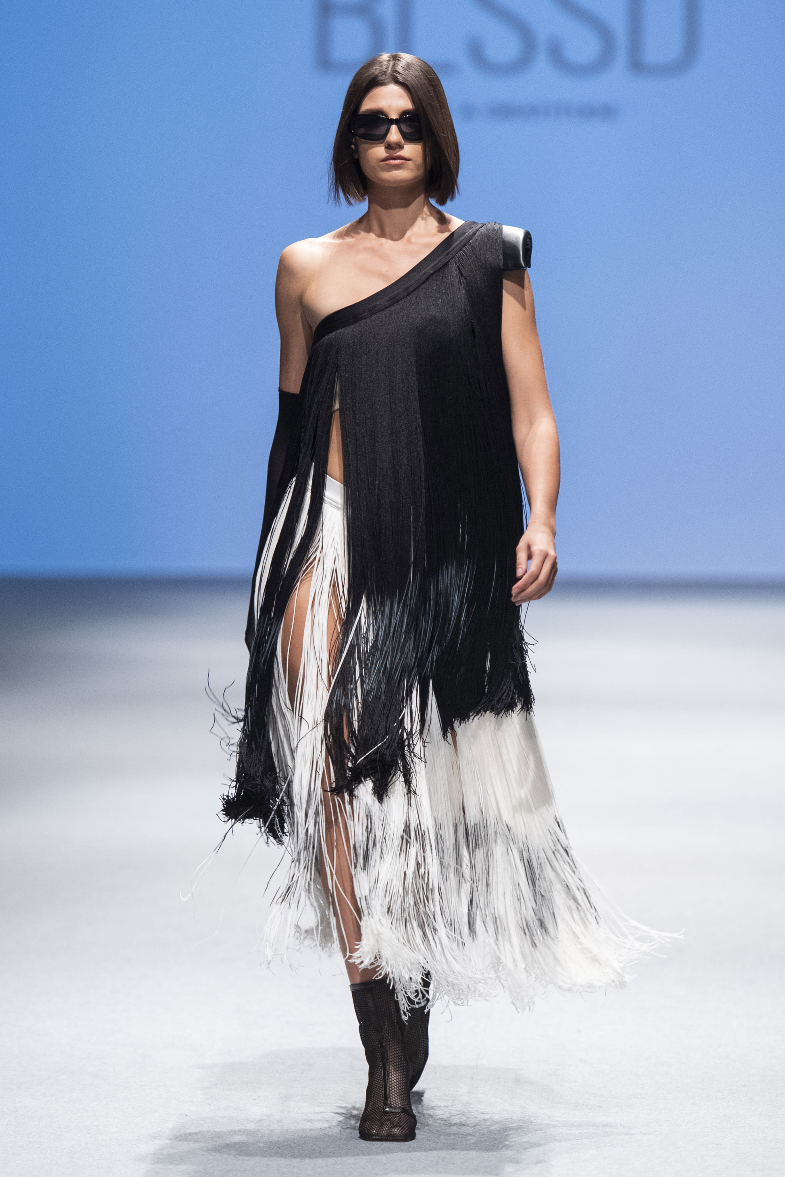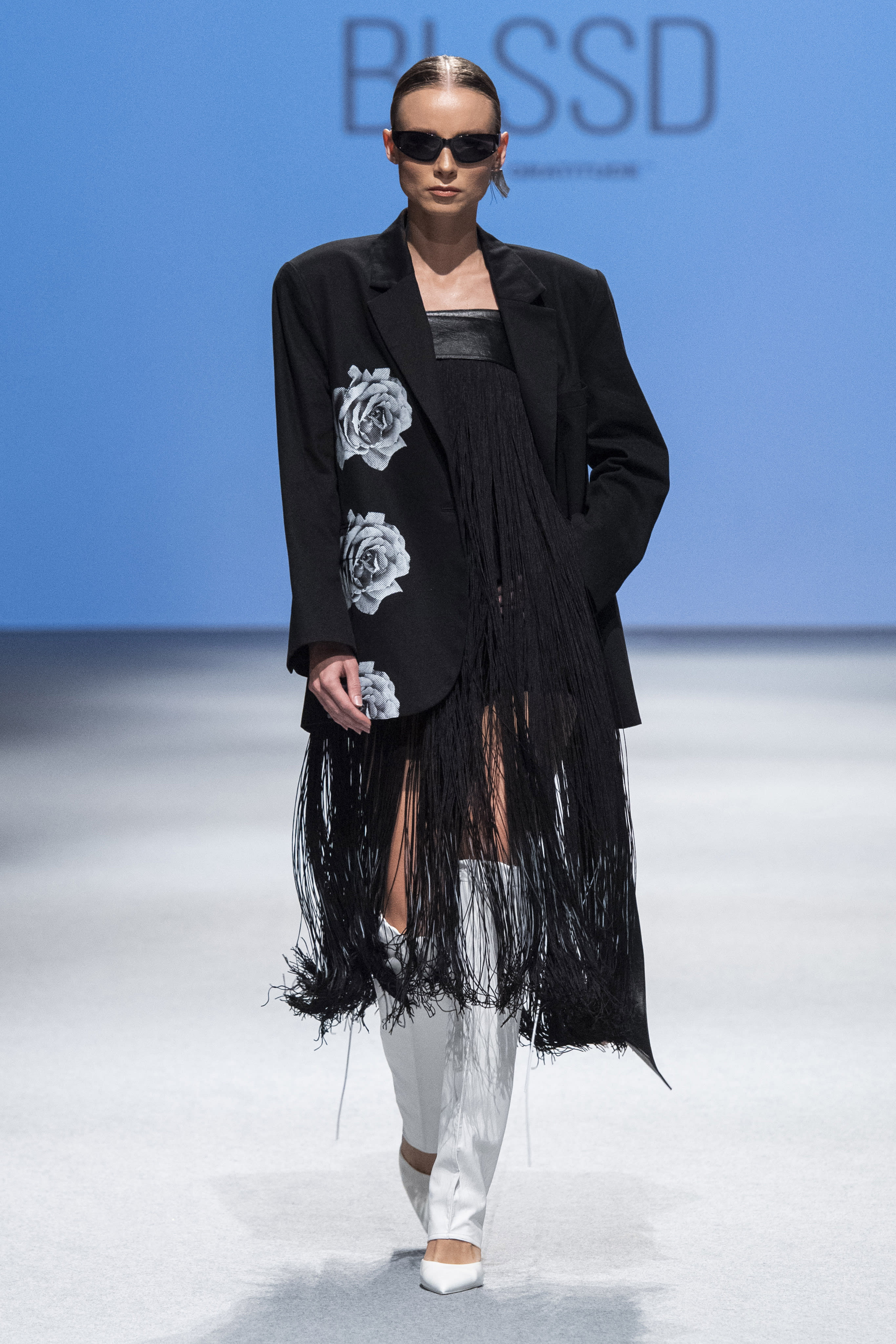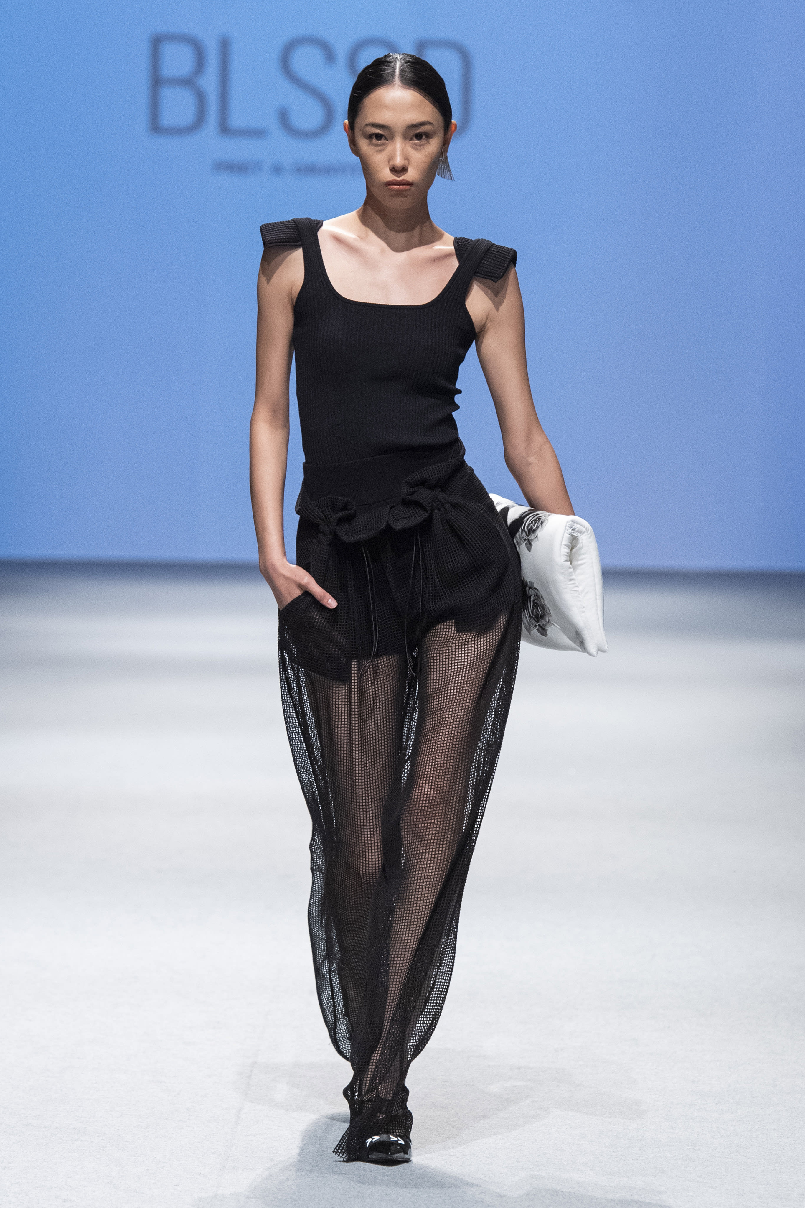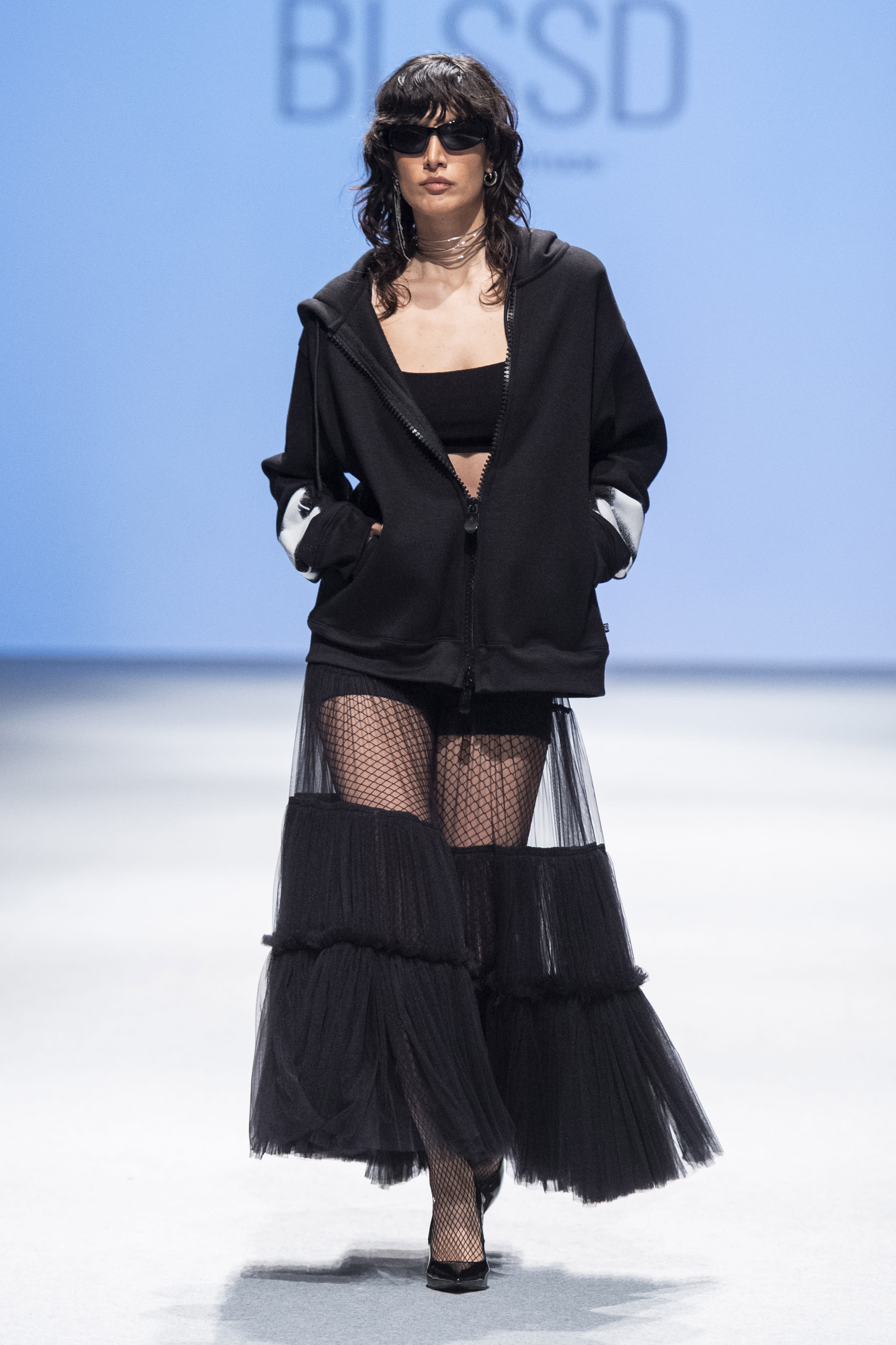 Design in motion has long formed a distinctive BLSSD visual code and in the “NOT” collection we see a fresh dimension of this represented in the label’s distinctive soft, transparent tulle skirts reimagined and paired with bold street-style graphics. While the brand’s experimental forte is showcased with the introduction of a unique stenciled fringe technique. This beautifully kinetic and versatile design element features across a range of silhouettes and textile pairings.