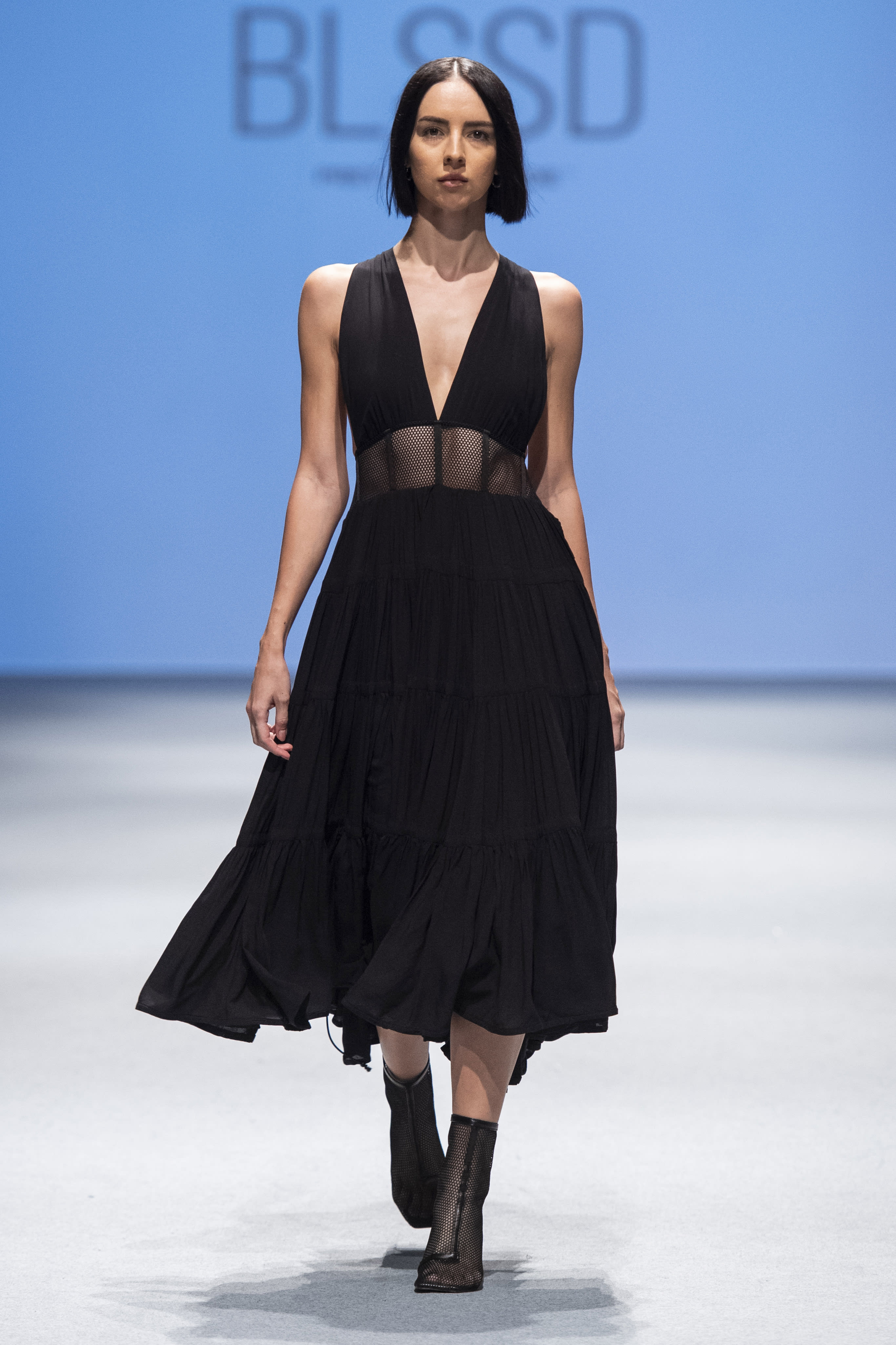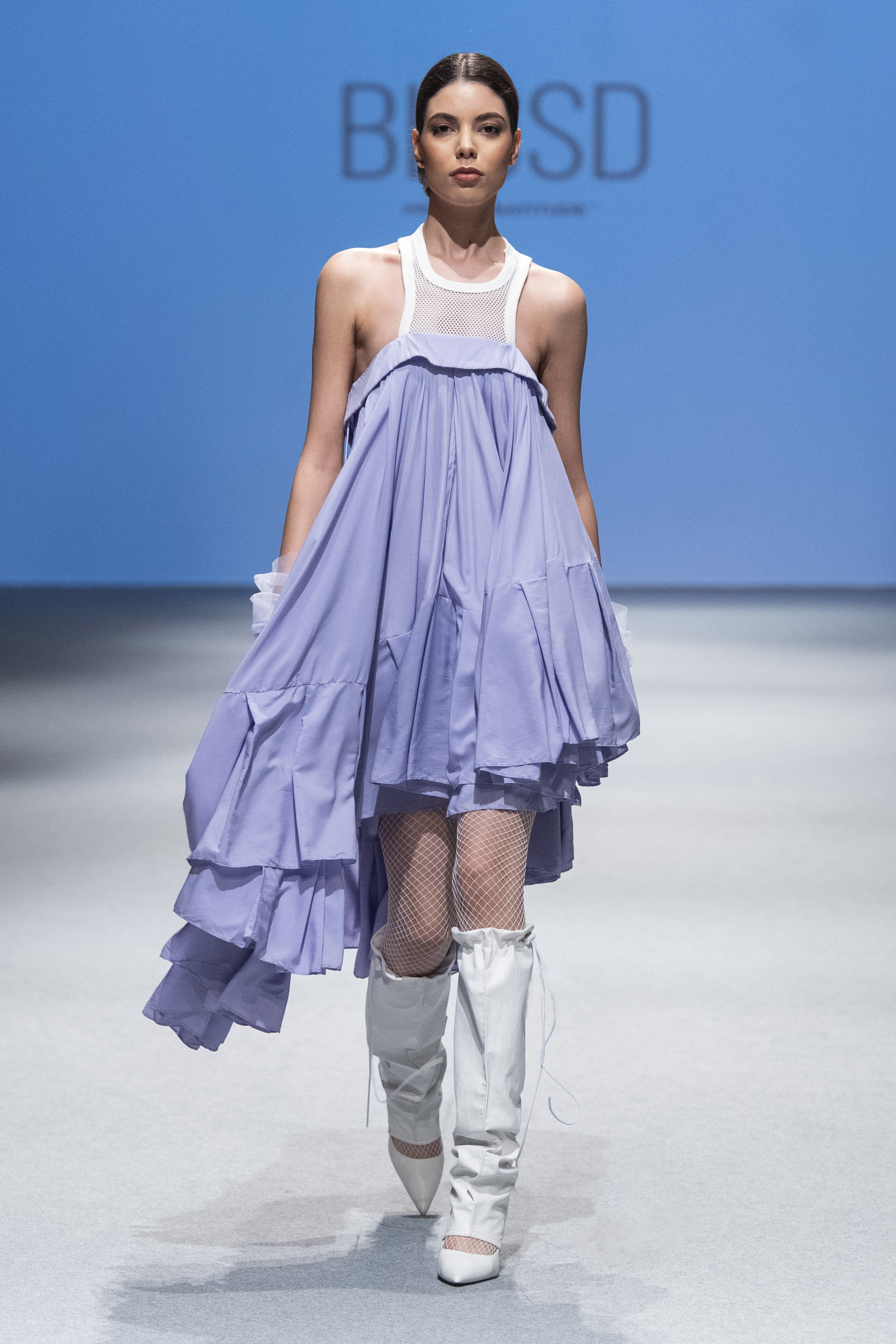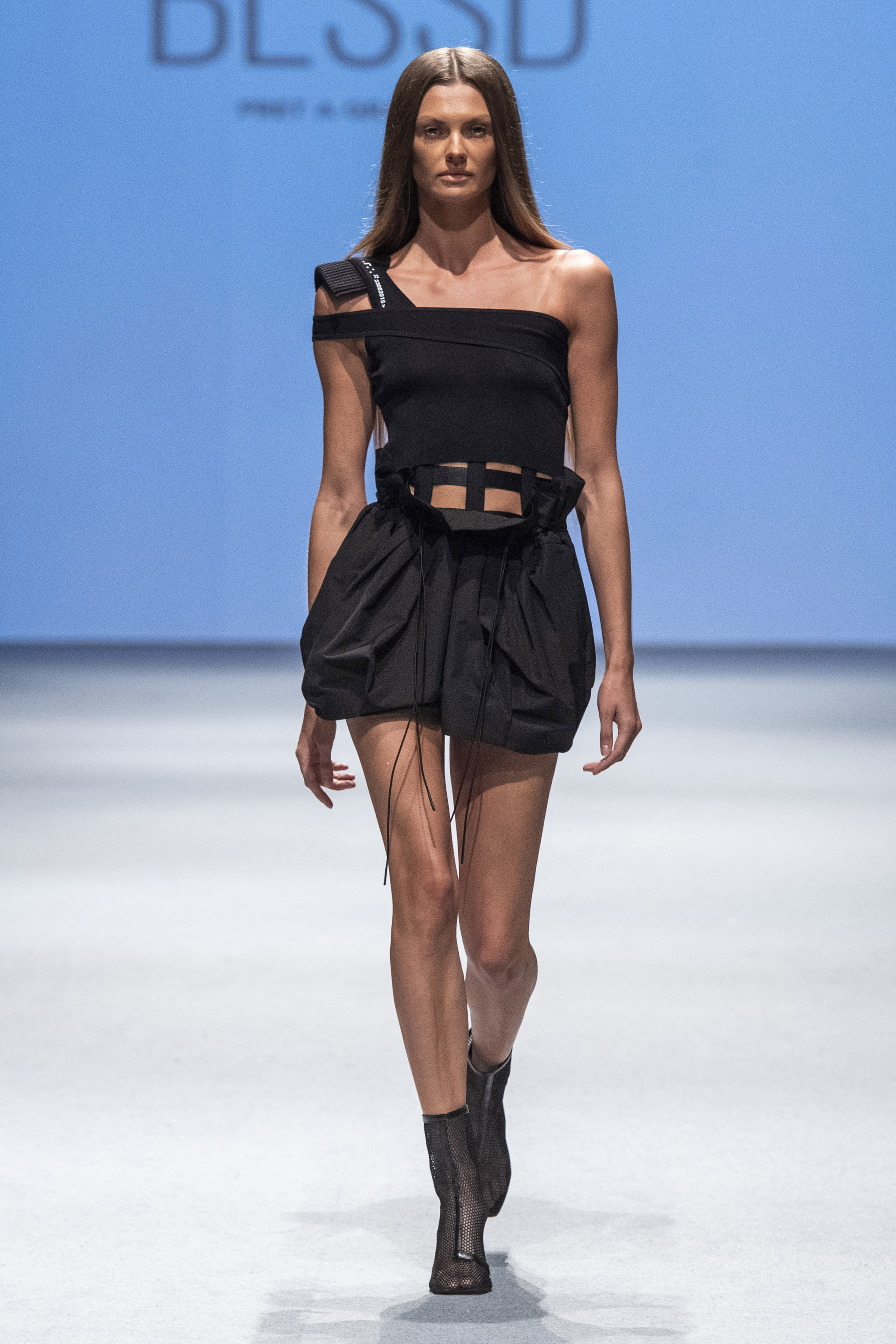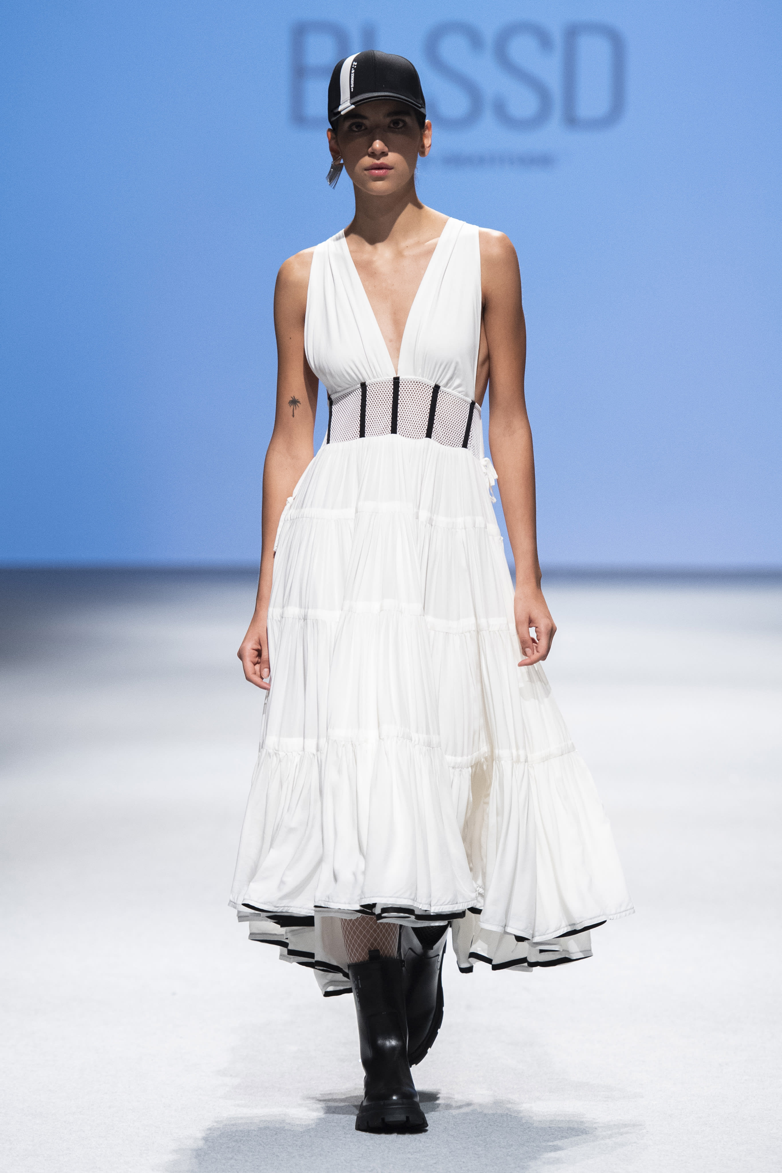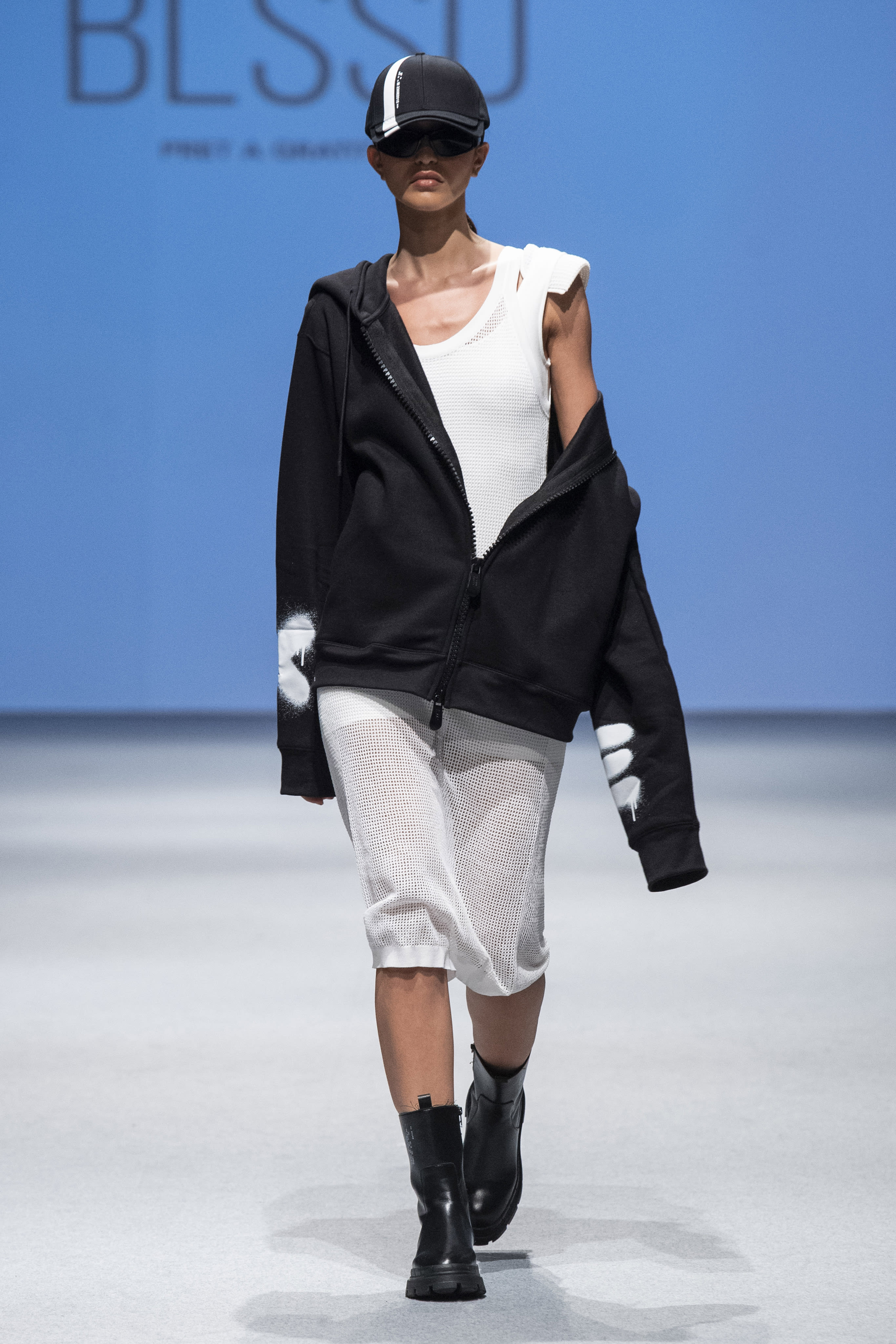 Design in motion has long formed a distinctive BLSSD visual code and in the “NOT” collection we see a fresh dimension of this represented in the label’s distinctive soft, transparent tulle skirts reimagined and paired with bold street-style graphics. While the brand’s experimental forte is showcased with the introduction of a unique stenciled fringe technique. This beautifully kinetic and versatile design element features across a range of silhouettes and textile pairings.
