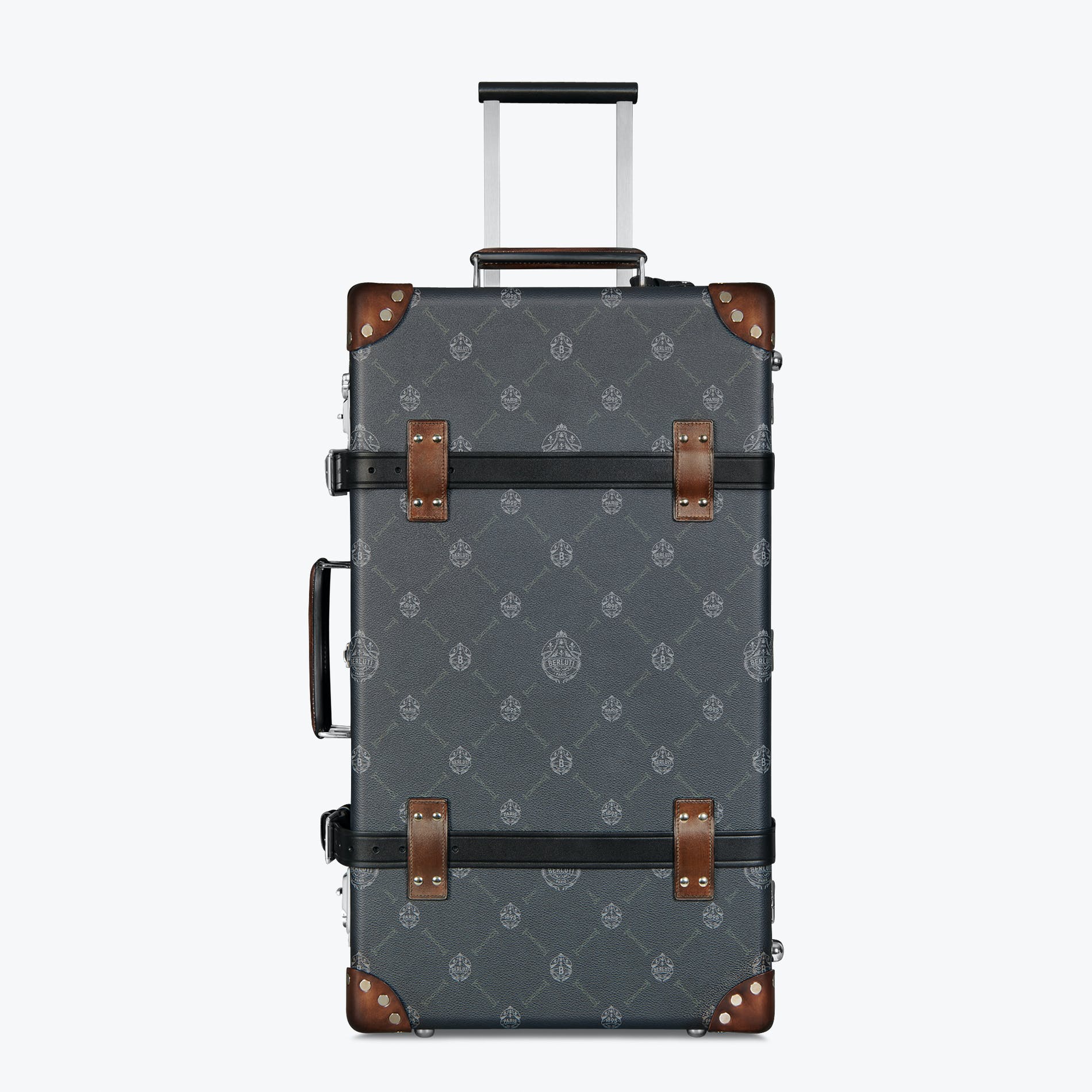 The Globe-Trotter Travel Capsule includes eight hard cases in different formats: 2 rolling suitcases, a shoe trunk holding up to six pairs of shoes, a shoe care kit case and a watch box, as well as day-to-day accessories such as a messenger bag, a backpack and a briefcase.