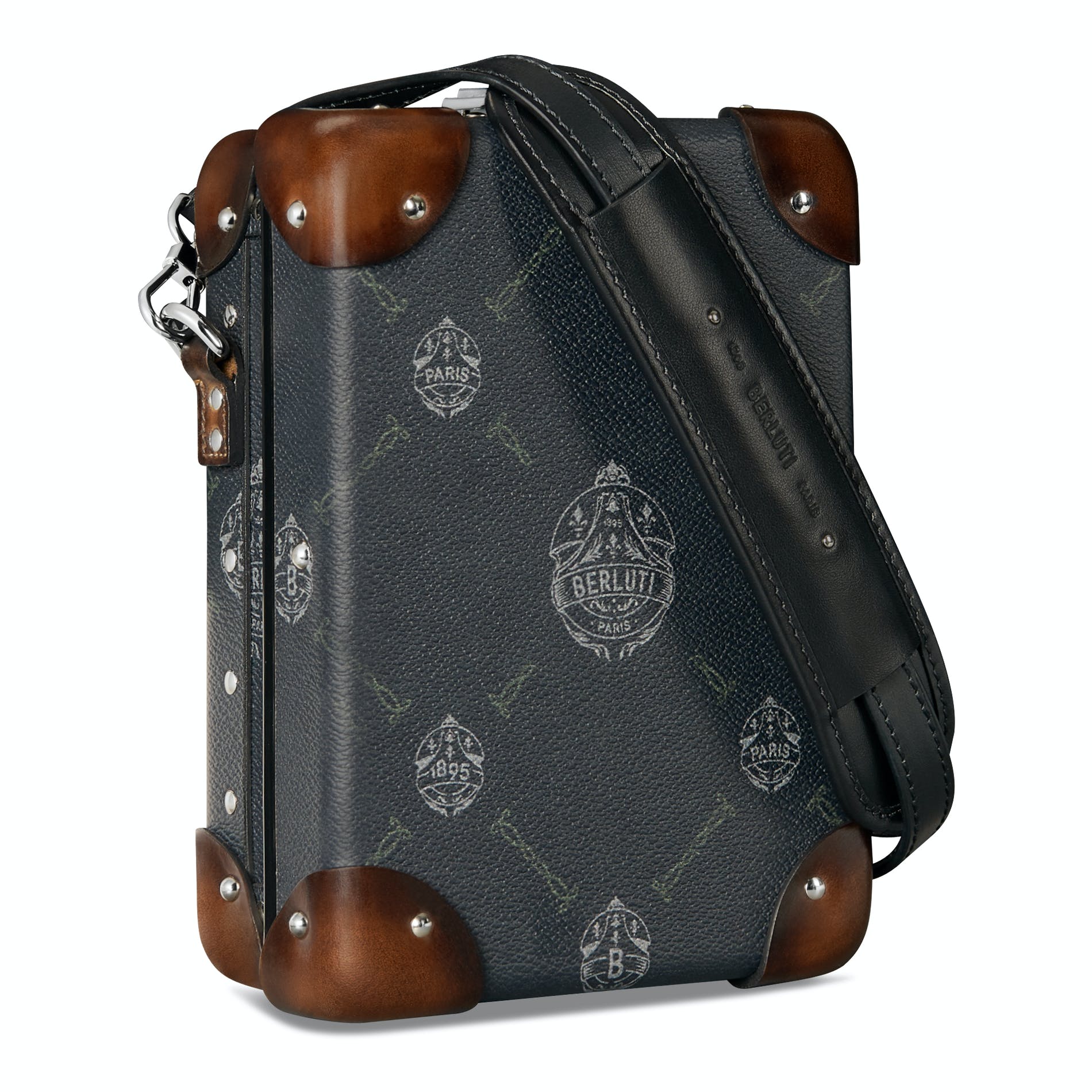 Each case is the result of combined expertise, starting with the solid yet lightweight base of Globe-Trotter’s luggage - obtained through a process in which 14 layers of Japanese paper are compressed to form an organically-textured shell, and then completed with Berluti’s brand new SIGNATURE Canvas and iconic details, including calf leather handles and corners, leather straps and nickel hardware engraved with the Maison’s logo, mostly assembled with the same set of tools that Globe-Trotter has been using since its foundation.