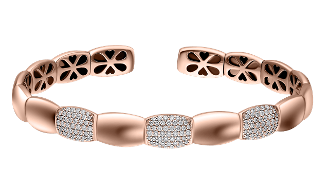 Indonesian jewelery powerhouse presents its Bamboo bracelet, an extremely comfortable yet bold statement piece made out in 18kt pink gold and adorned with brilliant cut diamonds.