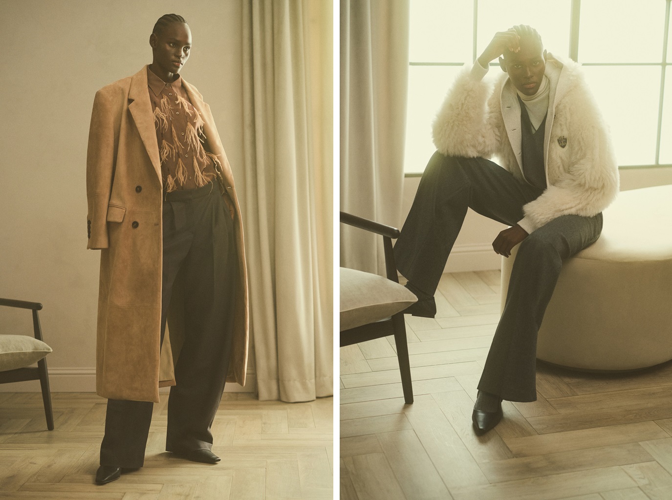 The codes of the formal and sartorial world, guardians of a timeless luxury and elegance, take on a familiar feel, revealing themselves in a harmonious and welcoming genuineness. The new synthesis, at once discreet and perceptible, is at the service of a spontaneous recognition of the ante litteram identity of each element, the quality of the materials and the high level of craftsmanship.