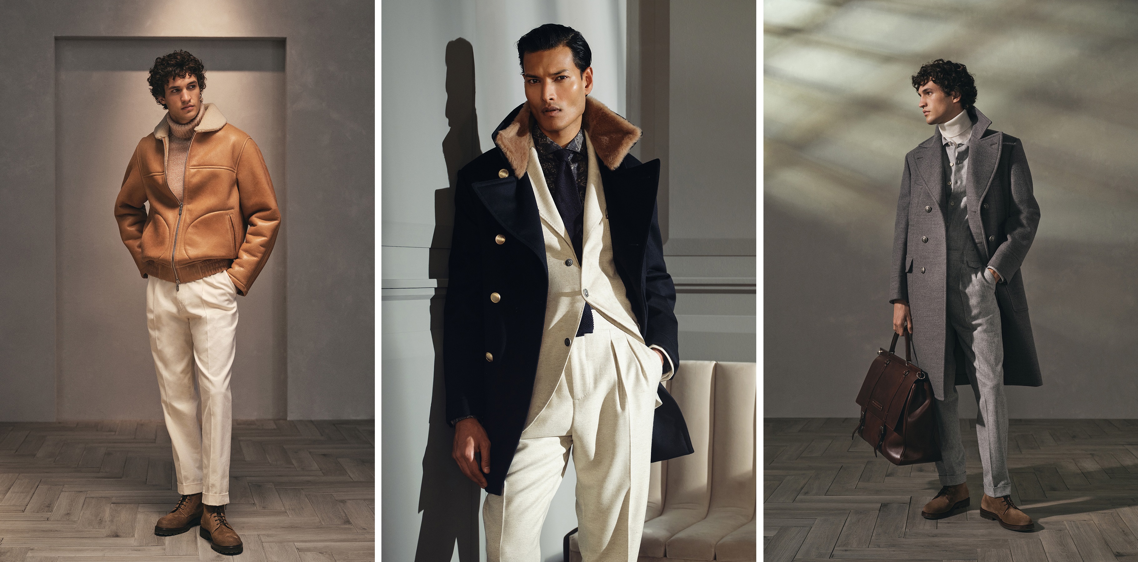 The Fall Winter Collection seeks to capture the allure of a masculine style in its purest and most definite form. The elements that have made the history of men’s elegance are reborn with a new and contemporary identity: structured, precise and powerful shapes belonging to the 1980s sartorial world inspire an accurate and generous, clean yet fluid, always effortless and particularly comfortable style, in true Brunello Cucinelli spirit.