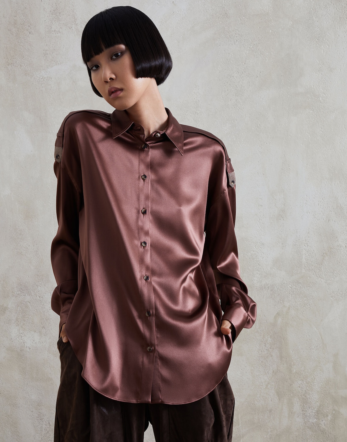 SILK SATIN SHIRT WITH PRECIOUS EPAULETTES