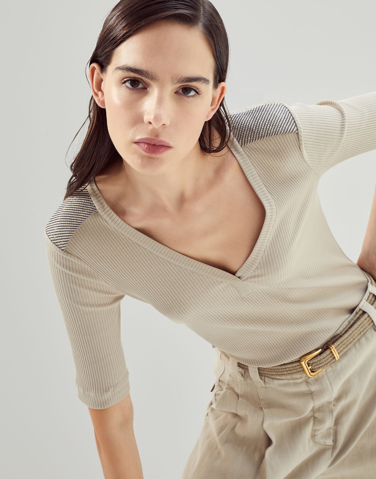 COTTON RIBBED T-SHIRT WITH SHINY SHOULDERS