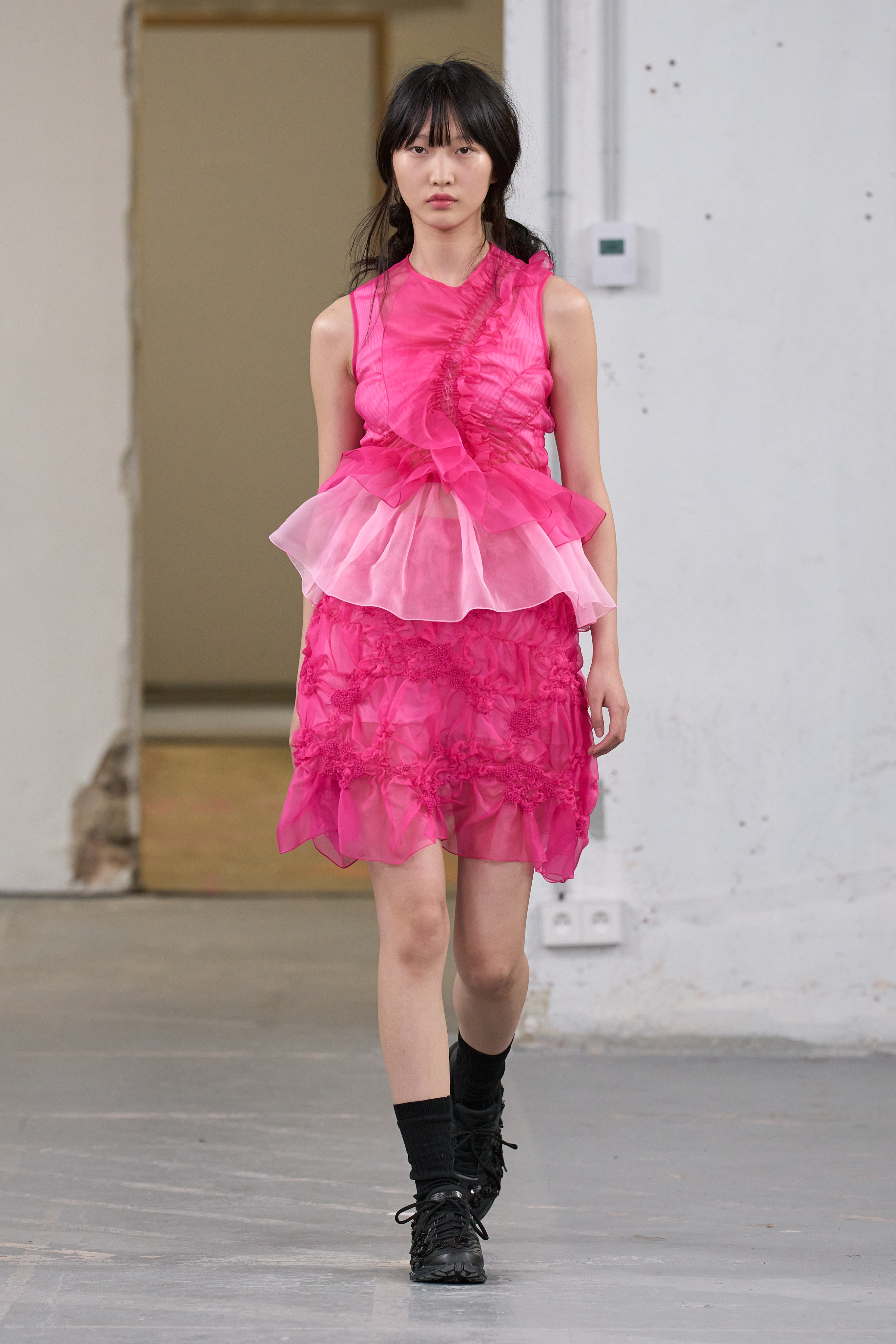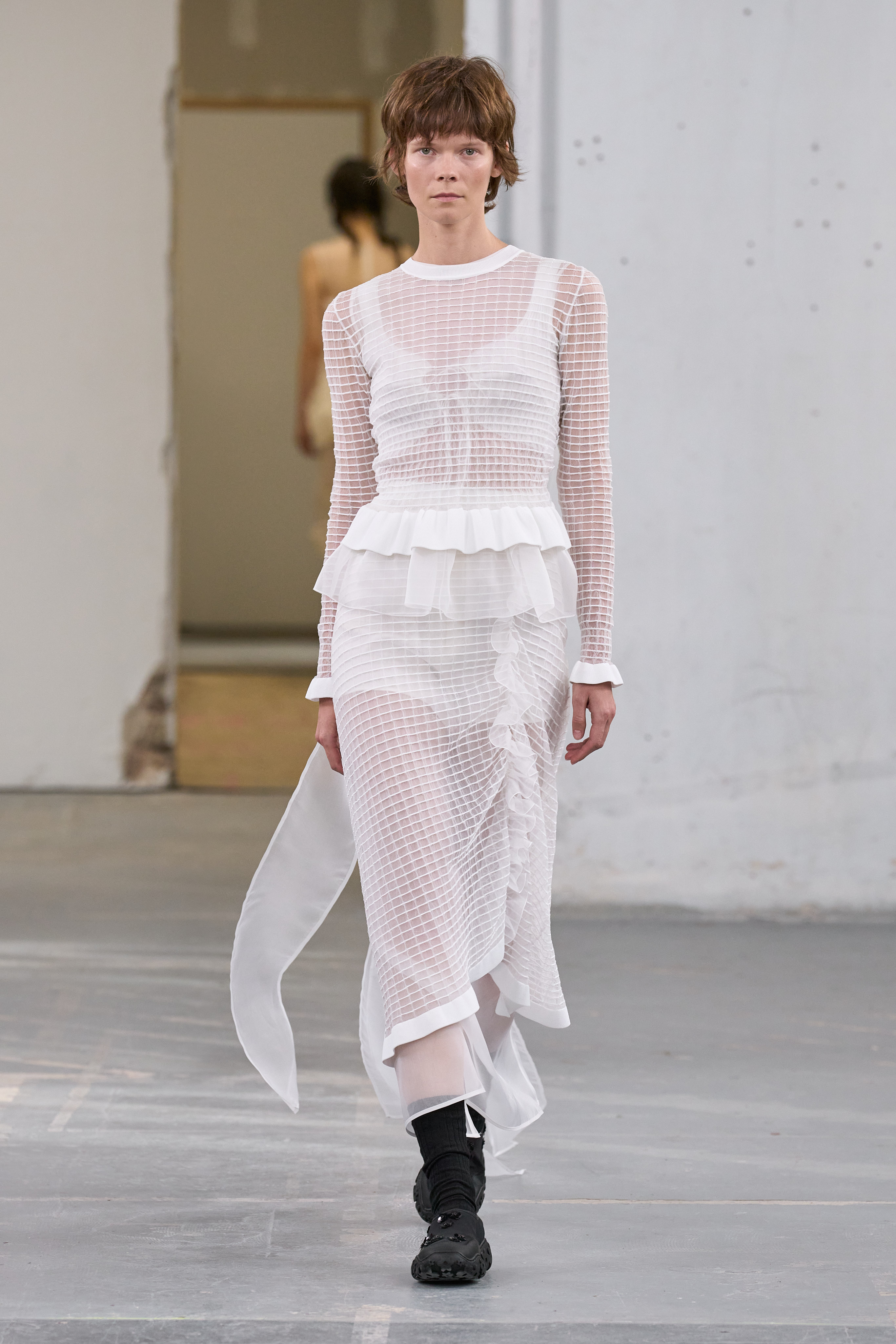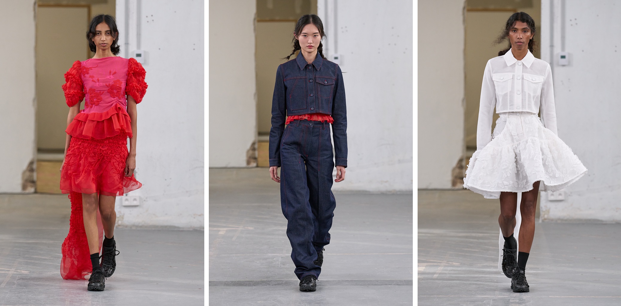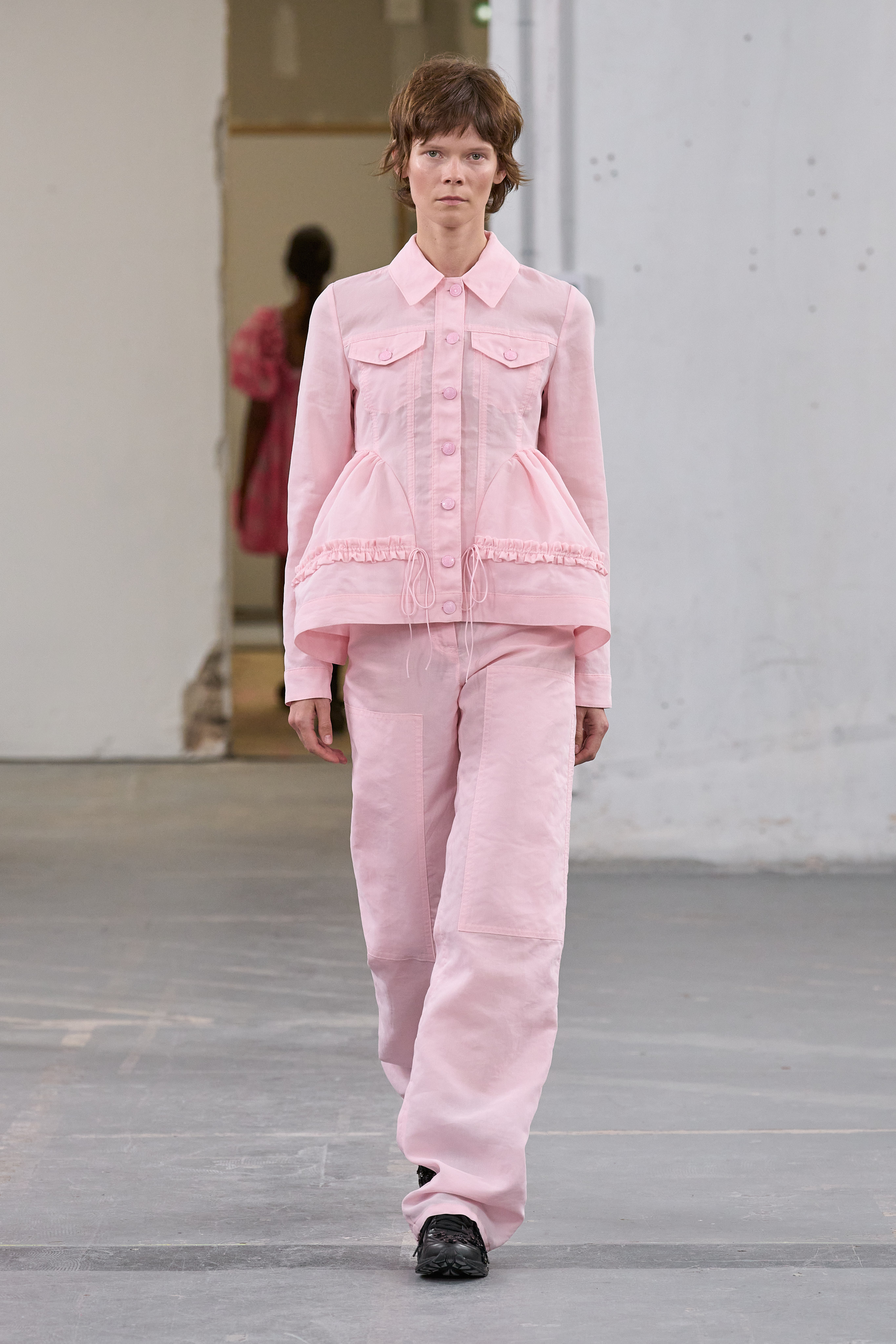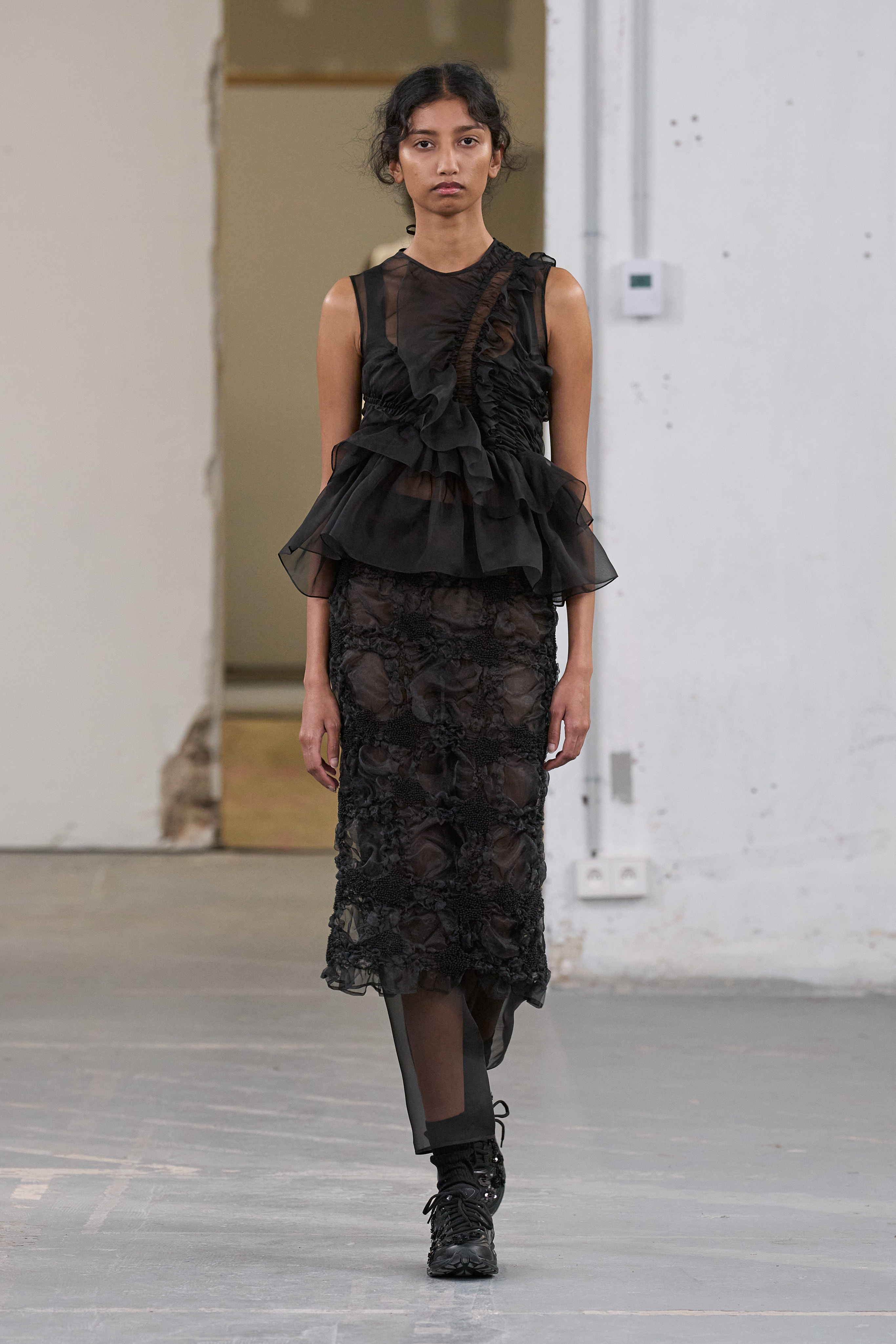 This season, Cecilie Bahnsen peels back the curtain on her process, with an intimate presentation showcasing the care and craftsmanship (more often craftswomanship) that goes into creating her romantic, ultra-feminine universe. The collection is presented in Paris at a raw space, 35/37, guests seated so close to the runway that fabrics brush up against them in whispers and the intricate details are seen, before taking on new shapes as they float down the runway faraway.