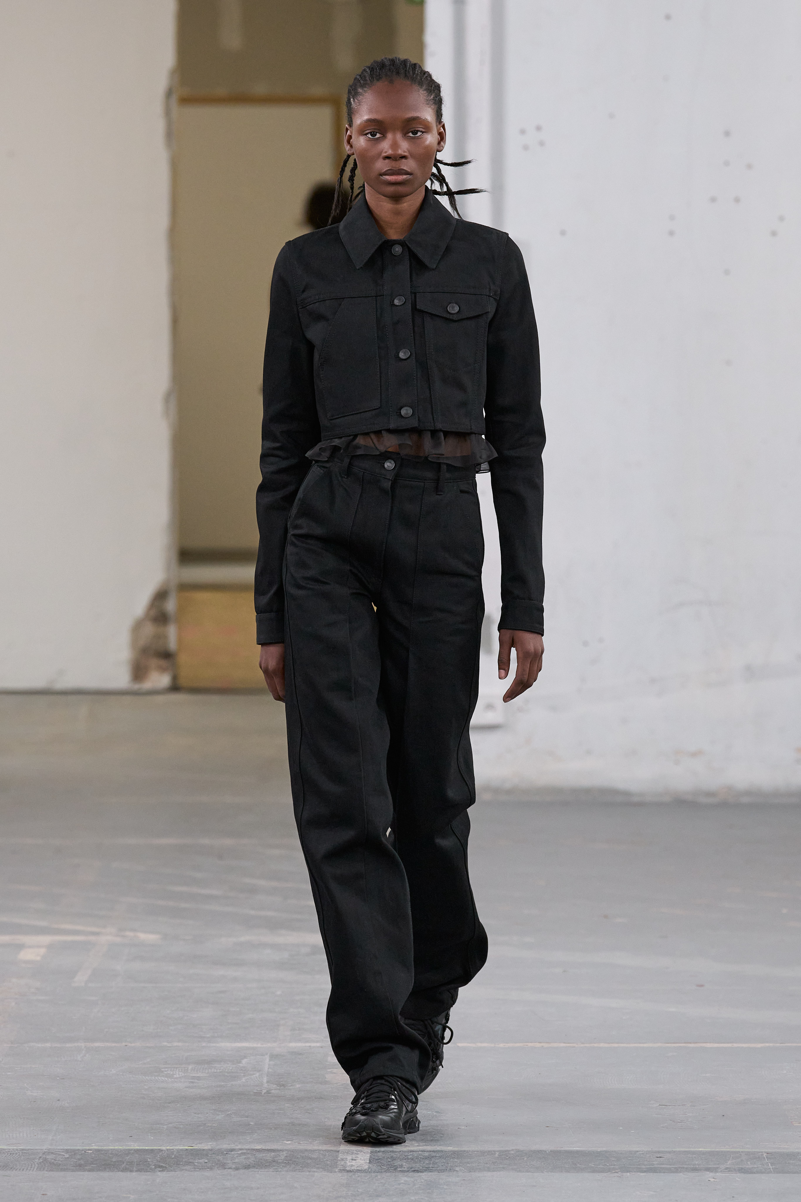 With a nod to her Scandinavian heritage, Cecilie plays with knitwear in a spring season context, working with intricate embroideries, floral motifs and transparencies. The silhouettes take the lead from last season, slimmer with less volume. Ethereal dresses take on new attitudes, some styled with raw denim, all dressed down with upcycled ASICS and the label’s own designed shoes. Developed from scratch, heavy soles act as a counterpoint to floral motifs, grounding the collection.