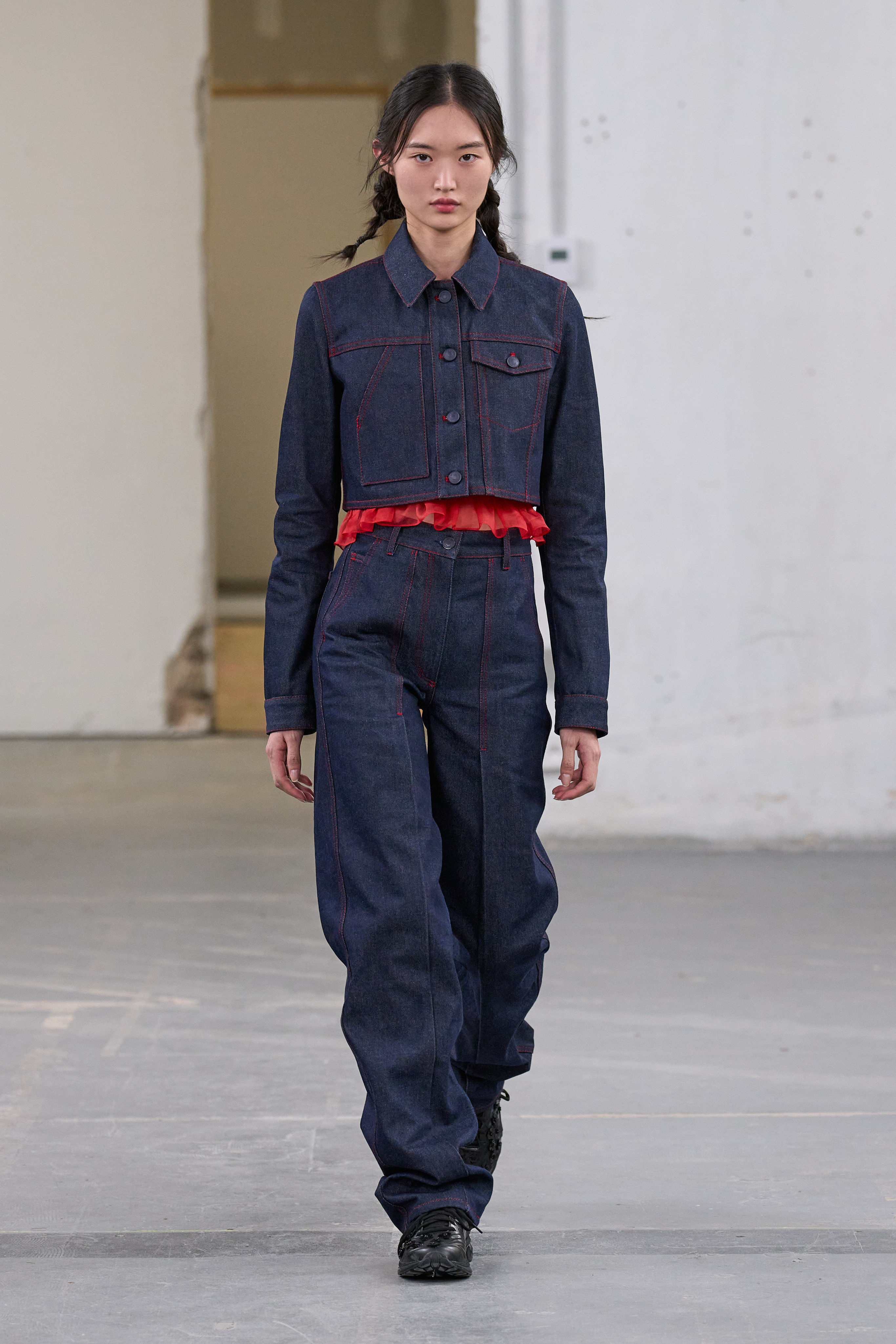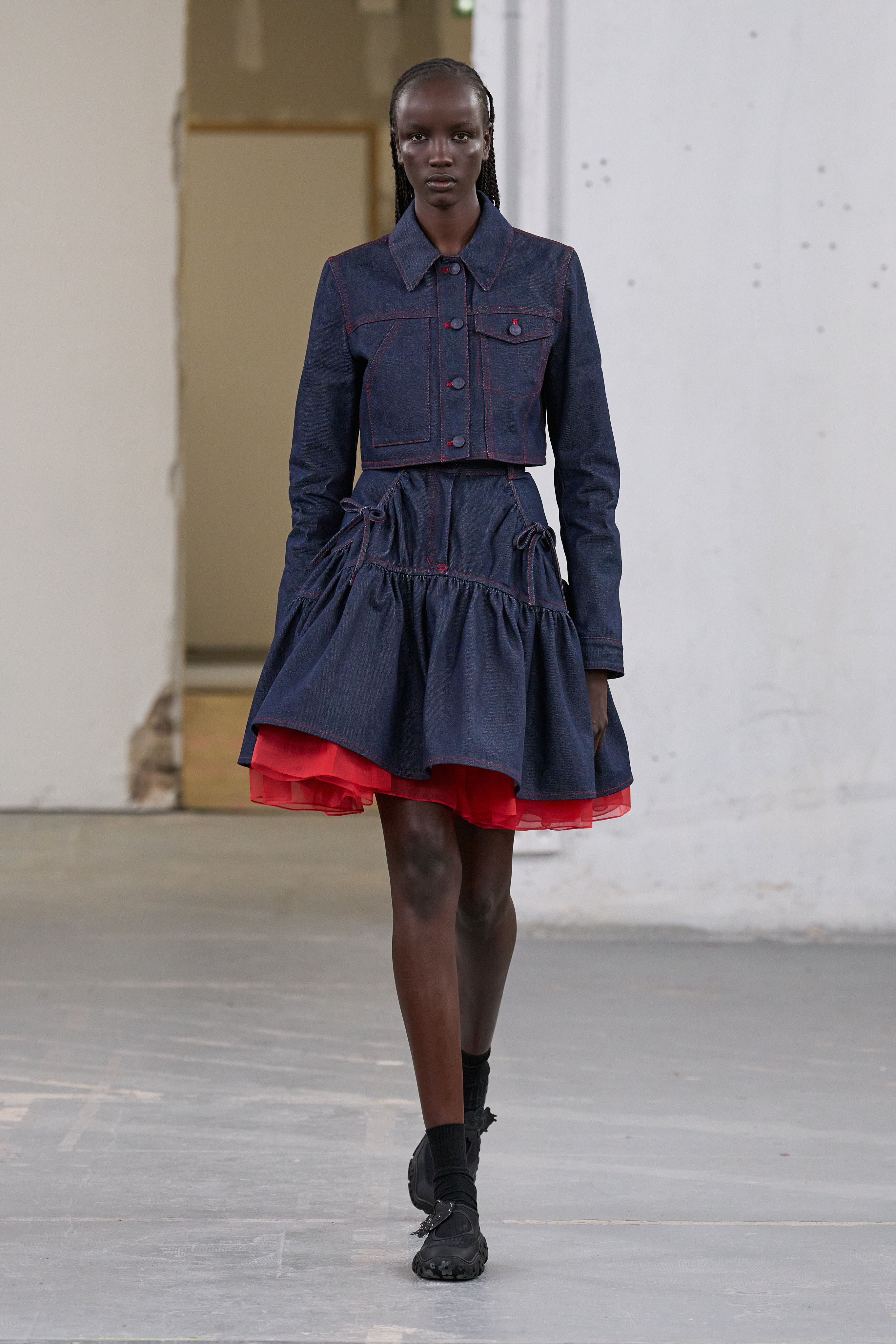 Merging the realms of fantasy and reality, Cecilie continues to hone her vision of “everyday couture.” This season, once again, she explores denim. Uniting this most functional of fabrics with couture traditions – most notably, a cropped denim jacket and matching flouncy skirt trimmed in red stitching. While shades of white and black ground the collection, a palette that runs the gamut from blush pink to poppy red feels like an explosion of love, and for the first time the label works with gingham. A culmination of seasons past, Spring Summer 2024 offers a refined vision, a more mature expression of Cecilie’s universe of modern romance.