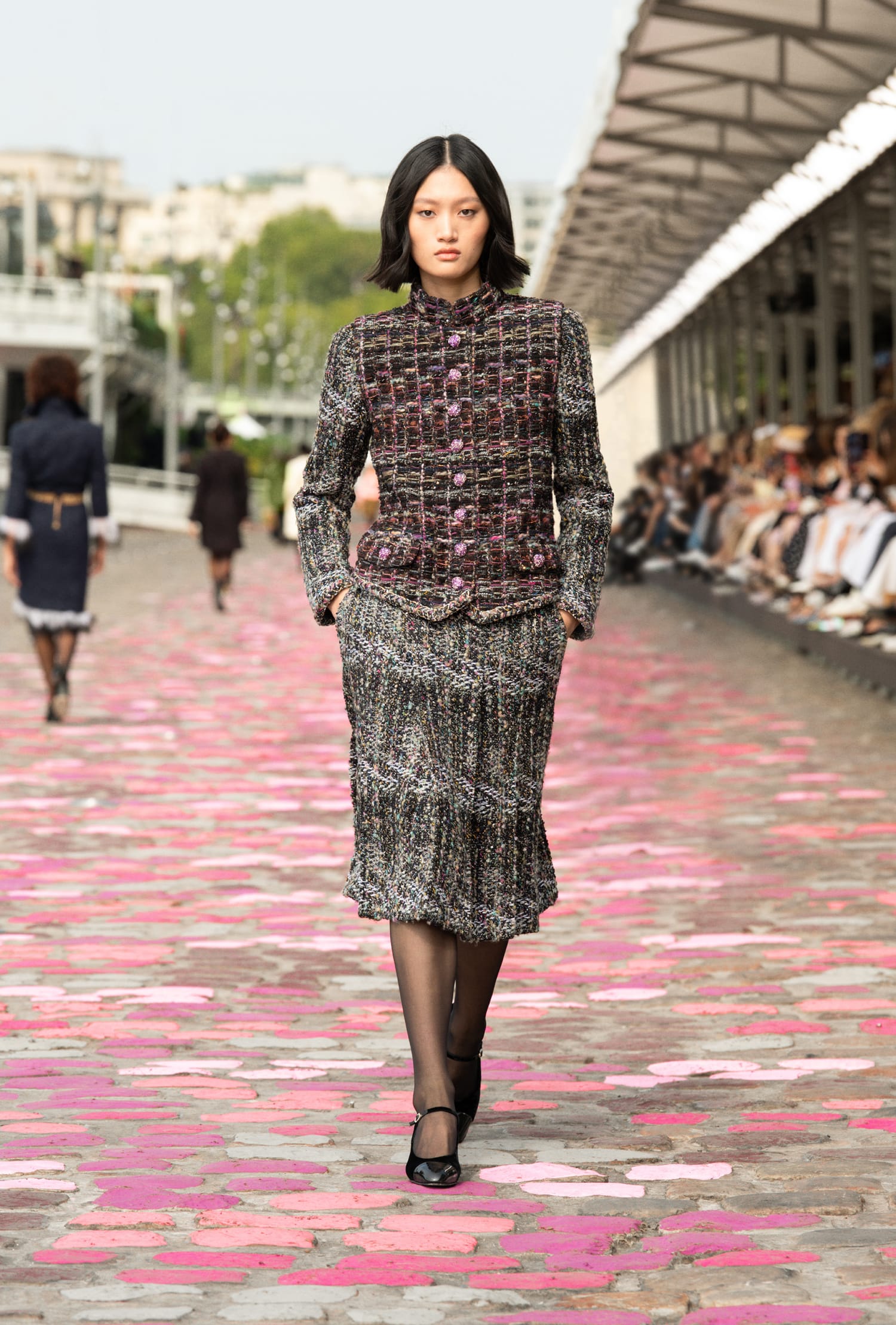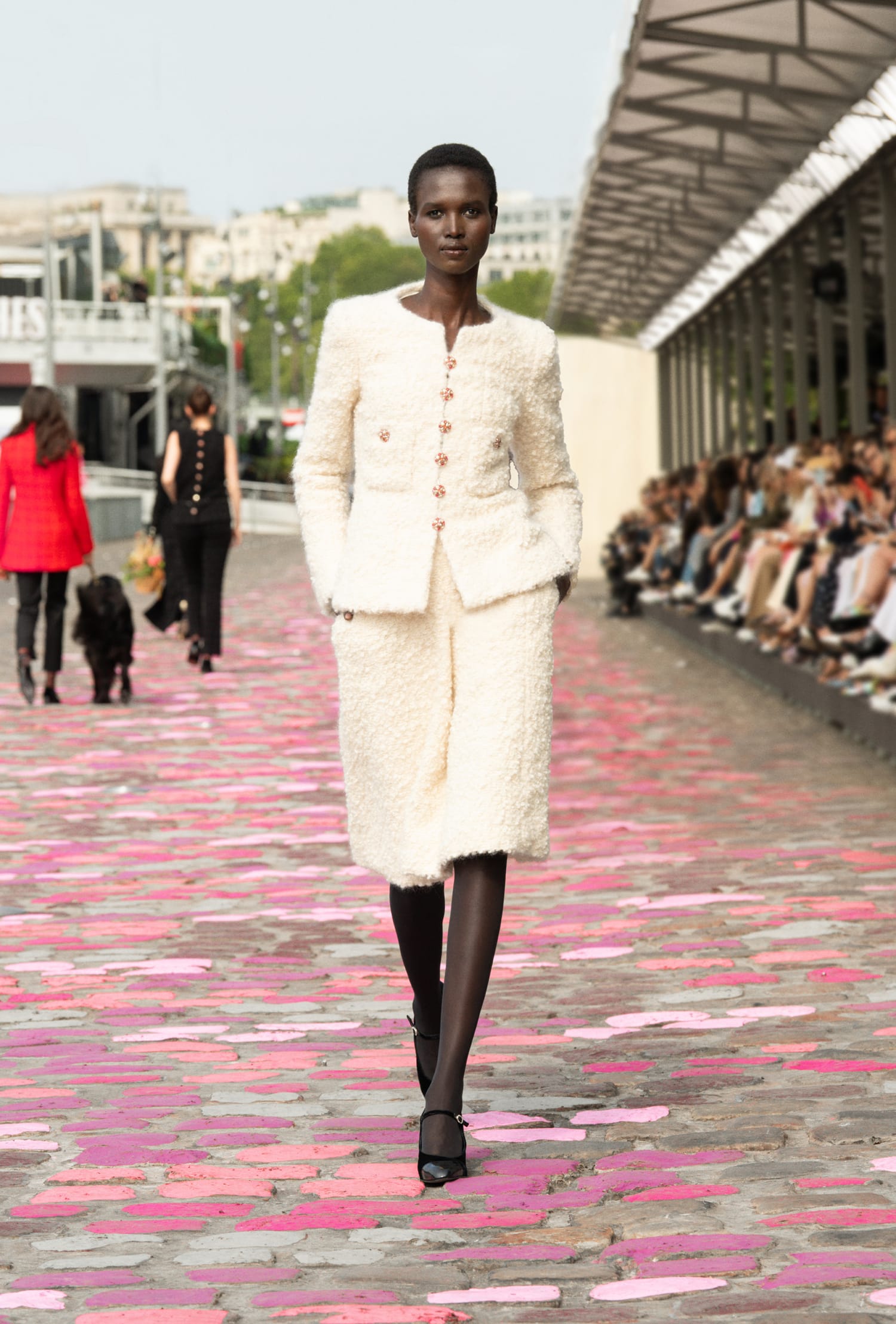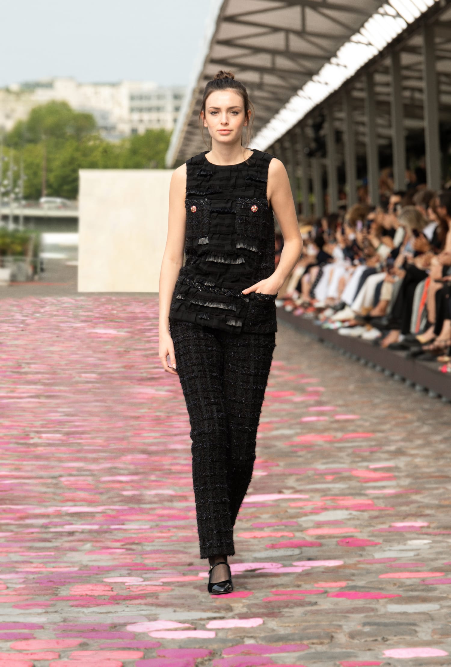 “If we're in Paris,” she adds, “and this time we're in Paris itself, on the quayside. The street and the colourful paving stones call for both sophistication and simplicity.” To imagine an Haute Couture show on the banks of the Seine, with Vanessa Paradis as the embodiment of Parisienne allure, is like a journey through a world of images and emotions, of permanence and beauty.