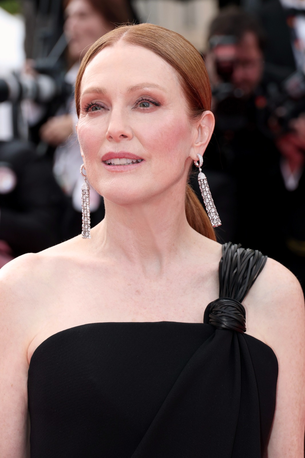 Julianne Moore was a vision of French modernism in the Goutte de Cristal earrings and Vendôme Liséré ring, shimmering white gold and emerald-cut diamonds brought architectural purity to her understated glamour.