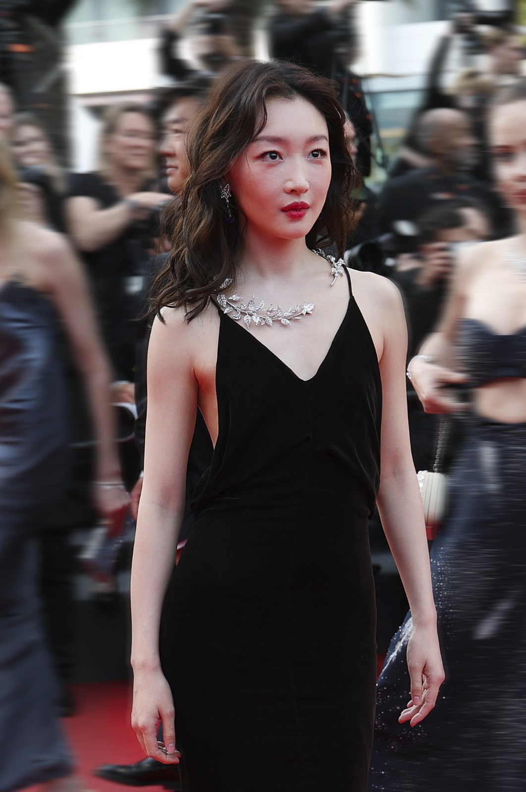 Zhou Dongyu stunned in the Rosier necklace, set with exceptional pear-shaped D FL type IIA diamonds, the result of over 2,300 hours of meticulous craftsmanship. Her look was completed with Lierre pendant earrings, merging tanzanites and diamonds in a lyrical dance.