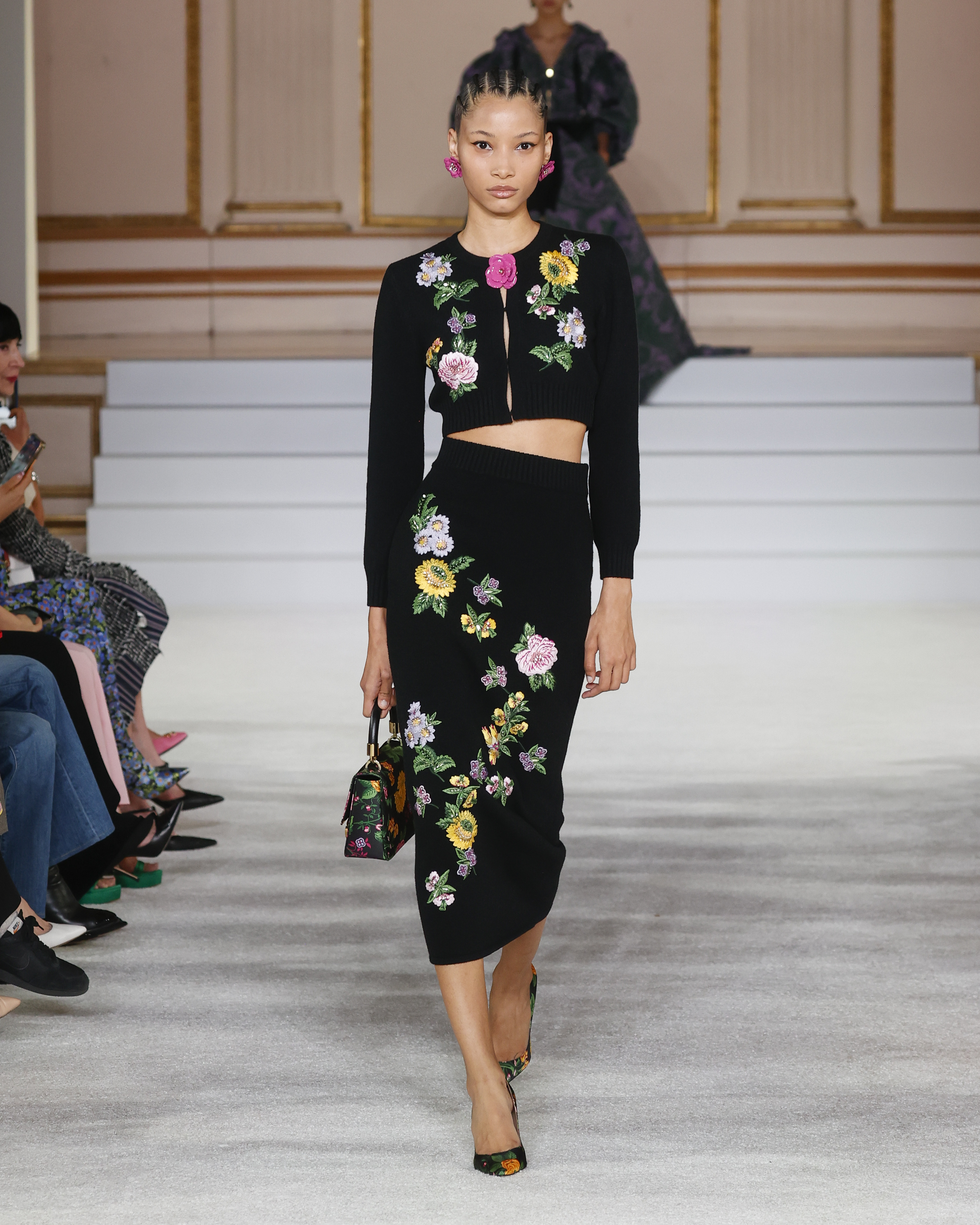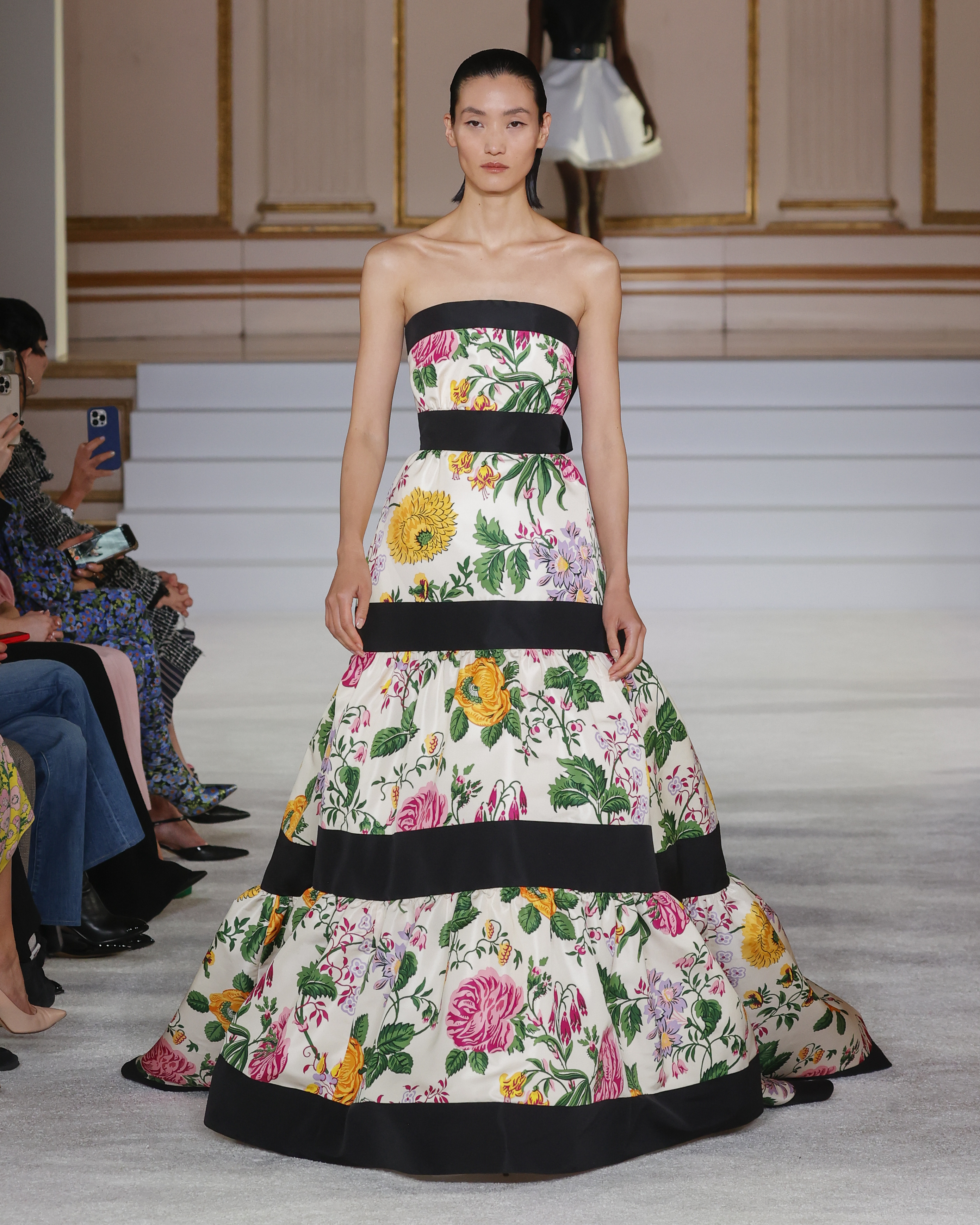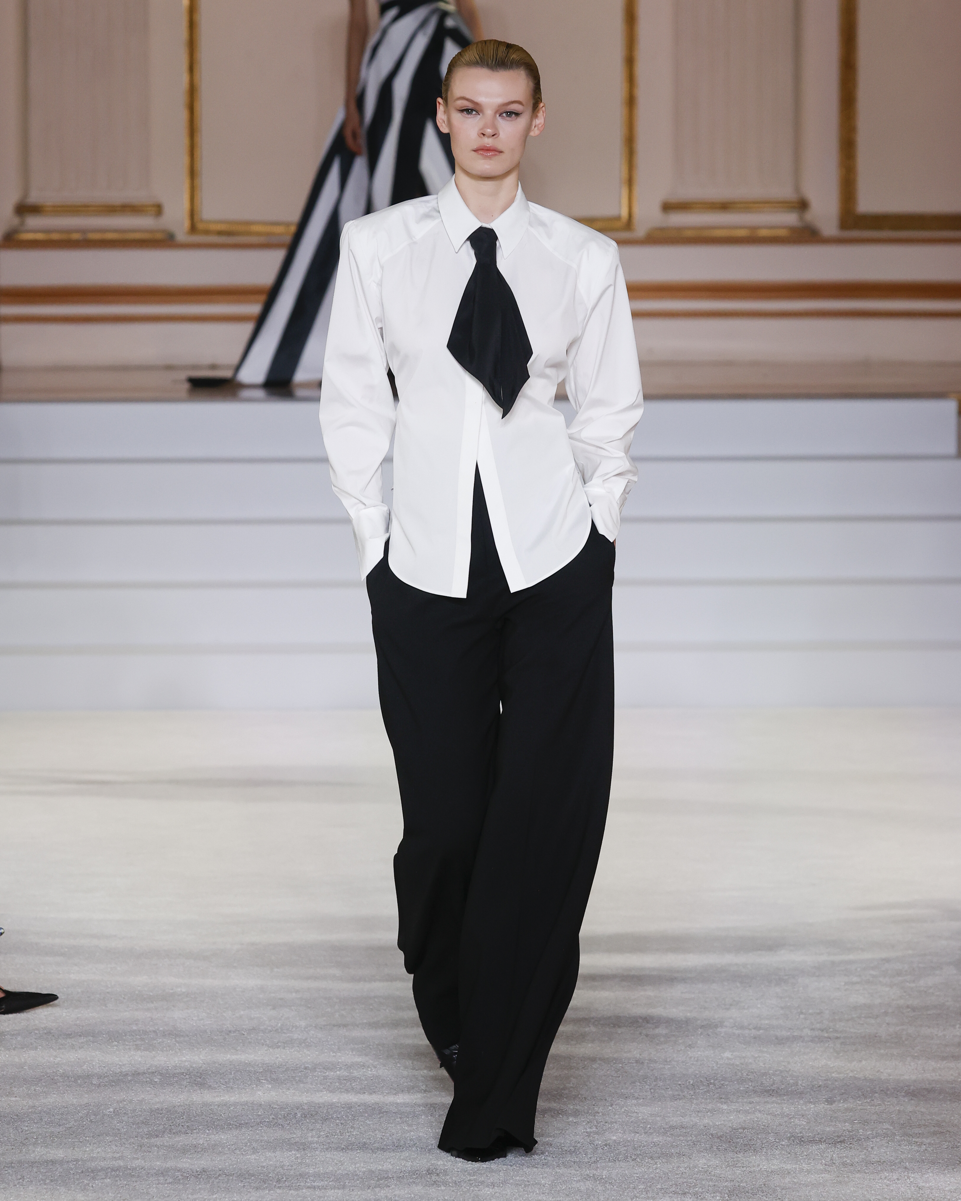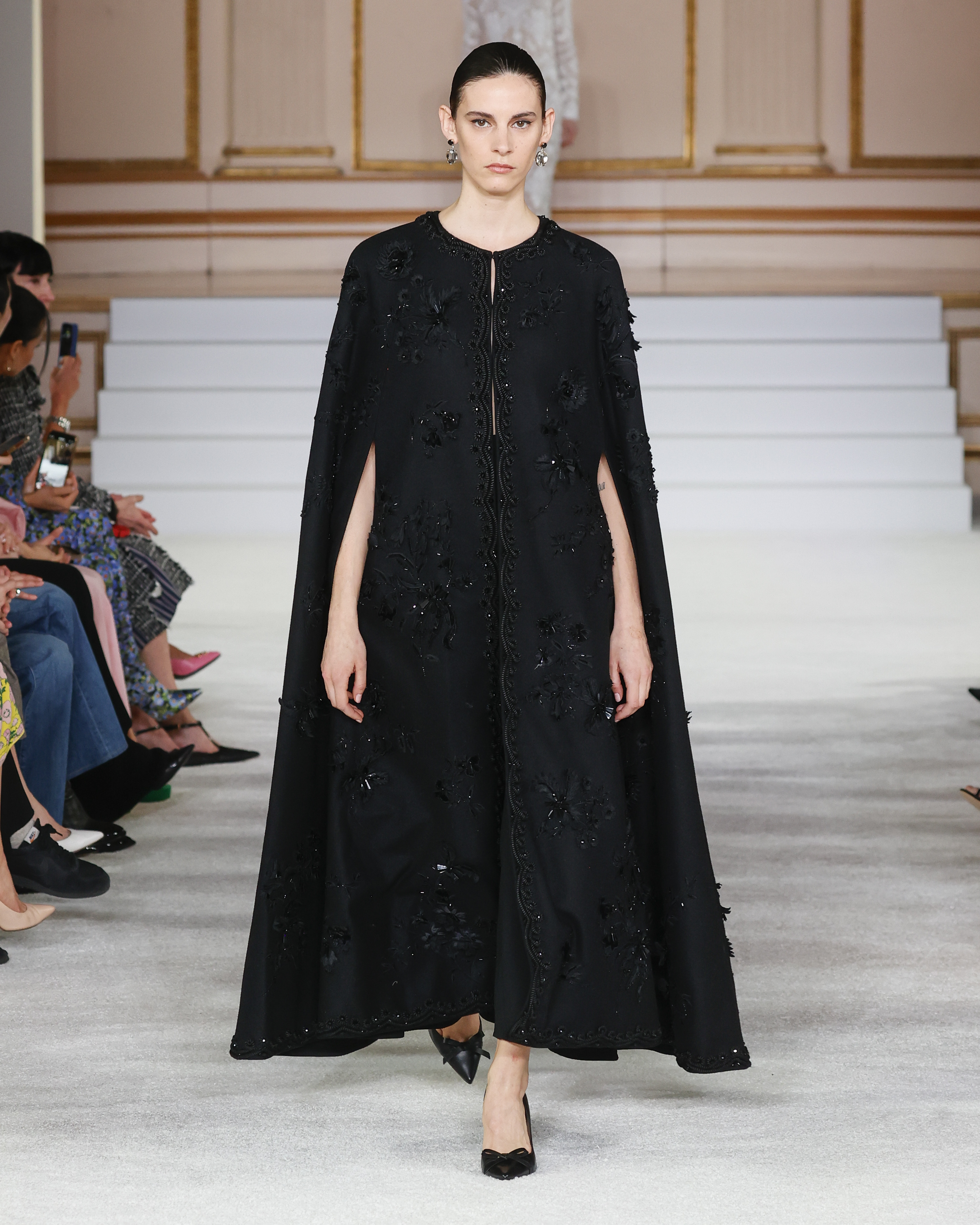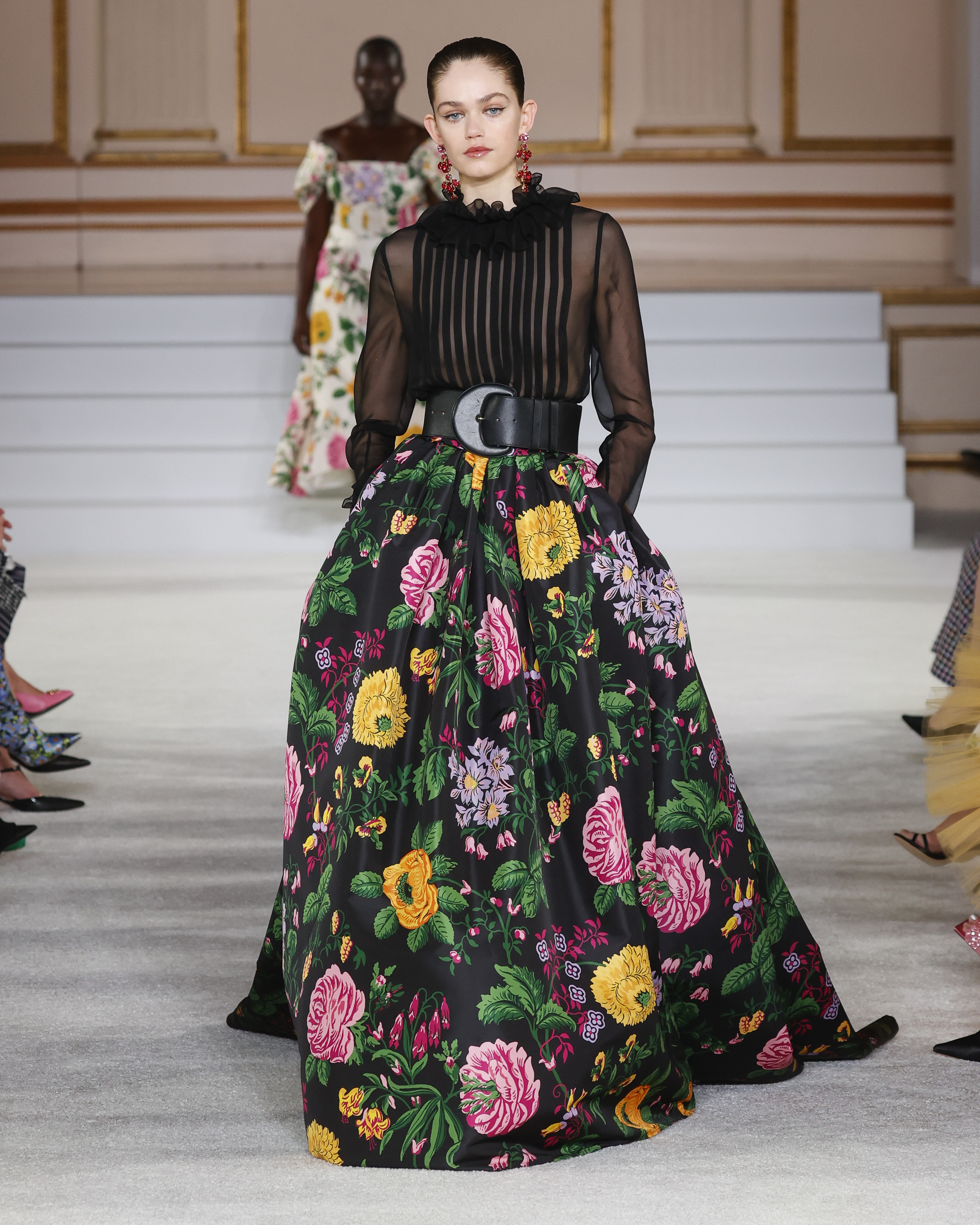 The concept of extreme opulence and what it means today is explored, and not just in its visual manifestation. There is opulence in time and consideration spent on the creation of a piece, opulence in zero compromise for the very best of construction and craftsmanship by the Carolina Herrera atelier. Opulence in how a woman feels when putting on her dress, the voluminous shape of her skirt held up by layers of feather-light tulle beneath, or a sharply tailored suit precisely cut to the millimeter.