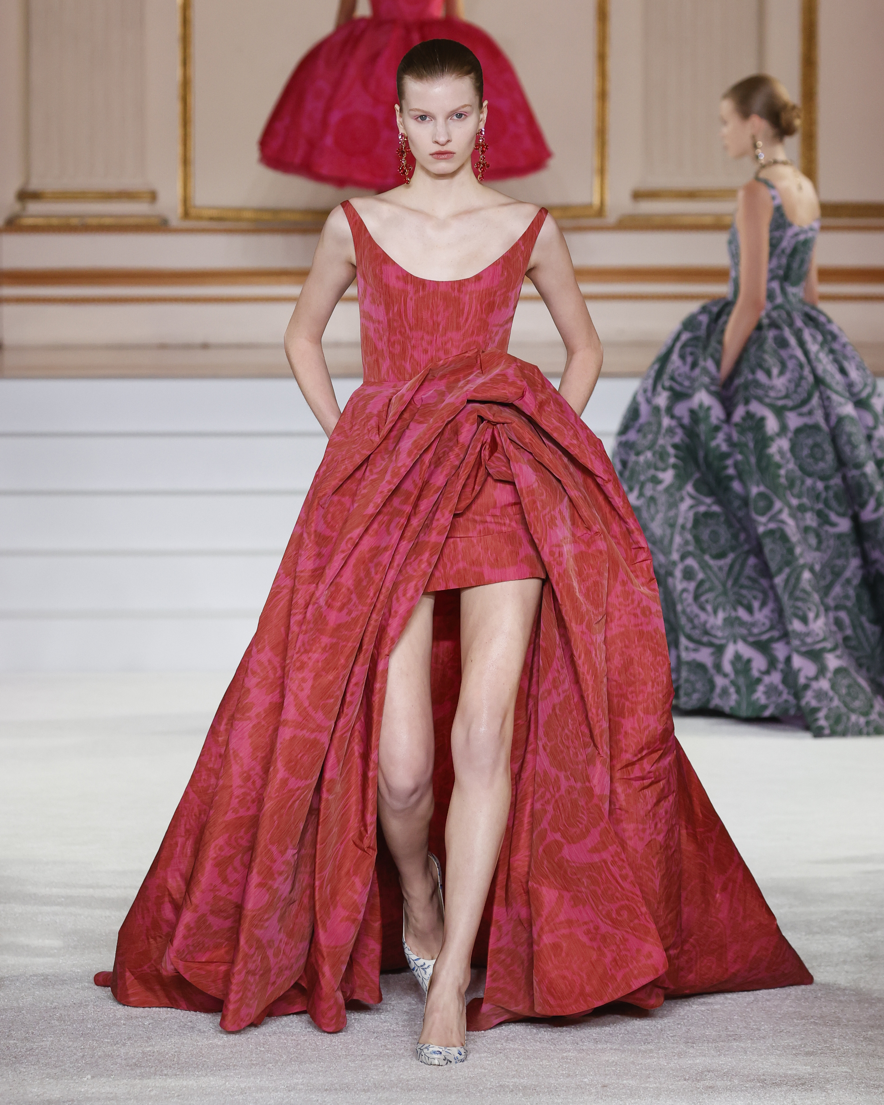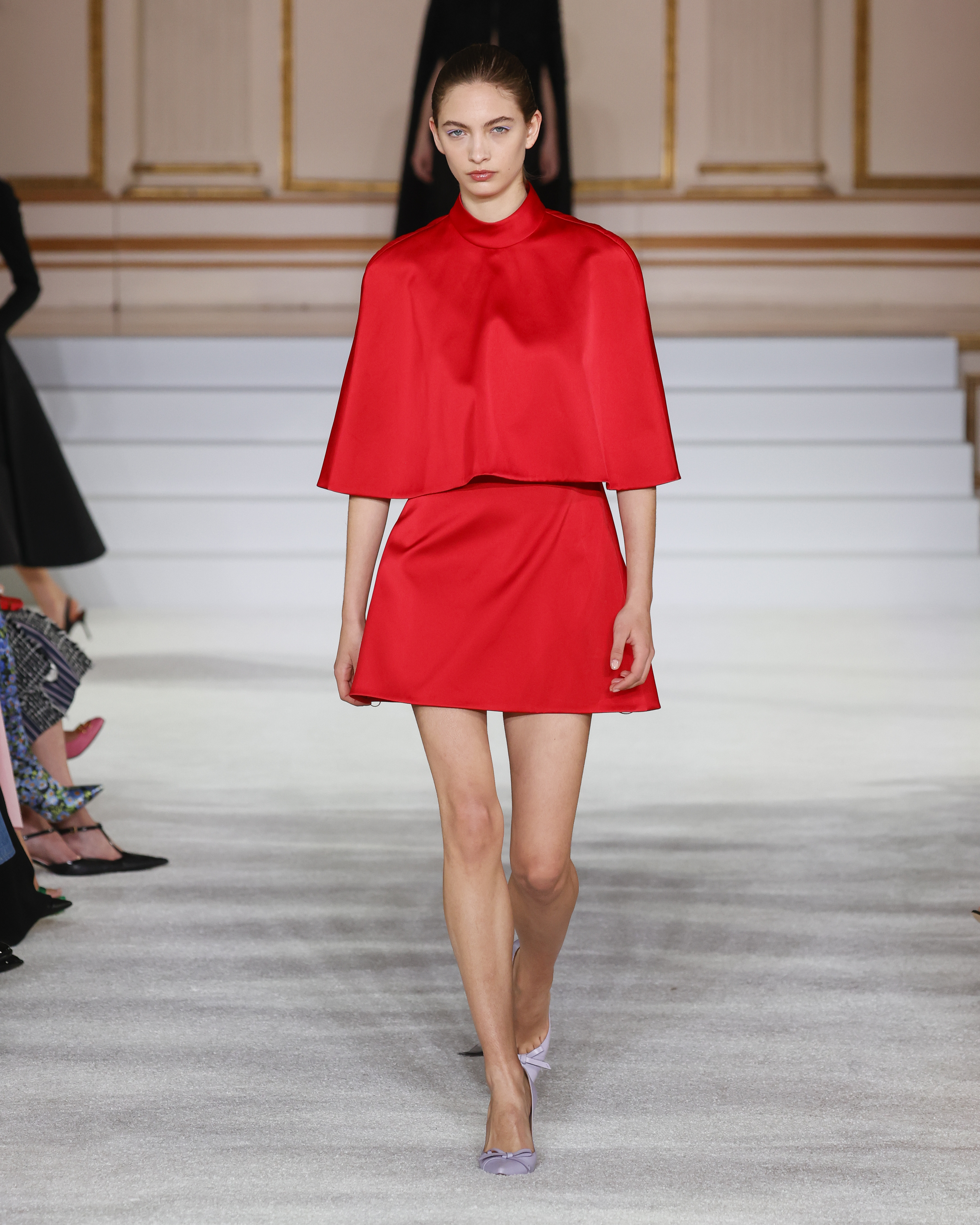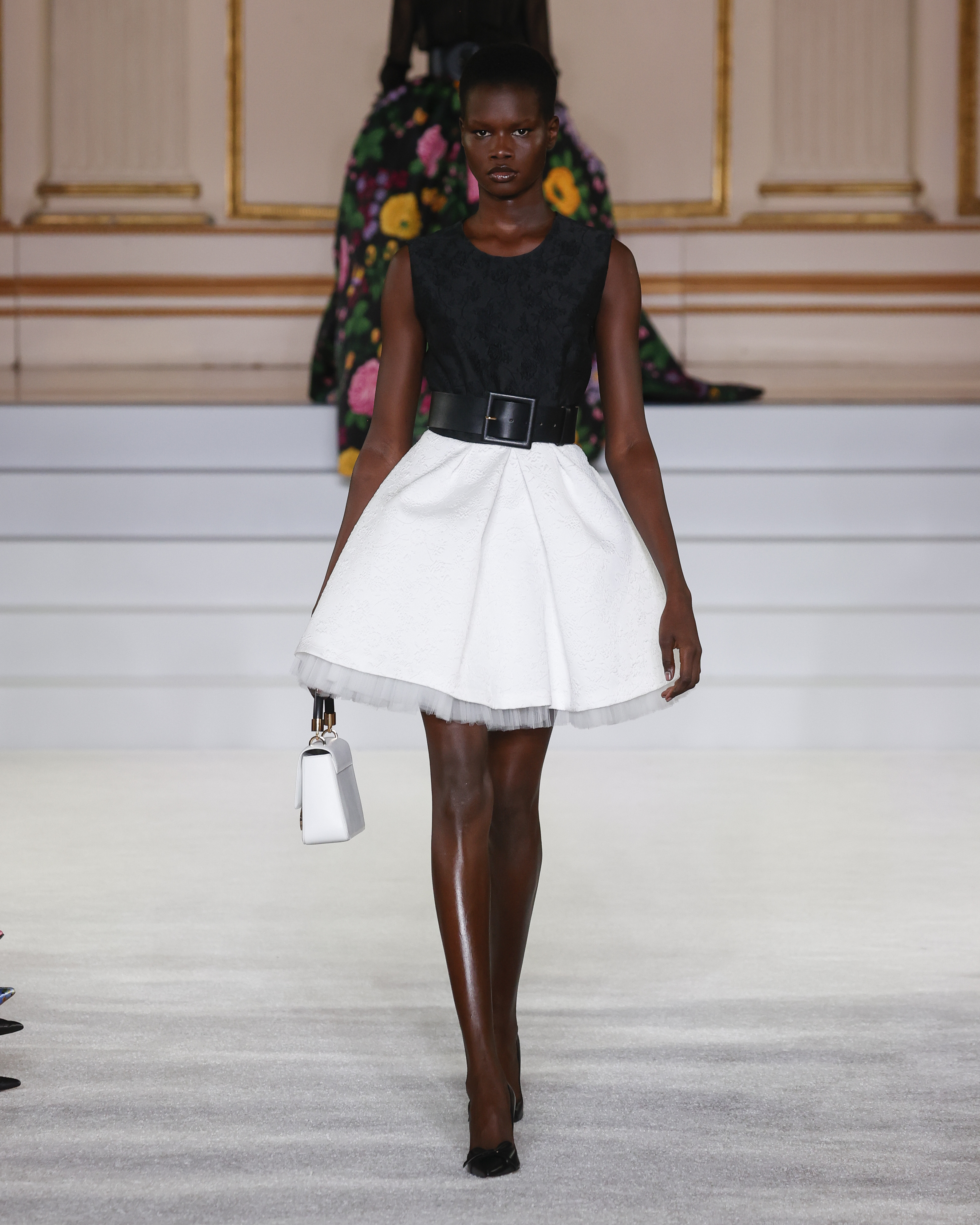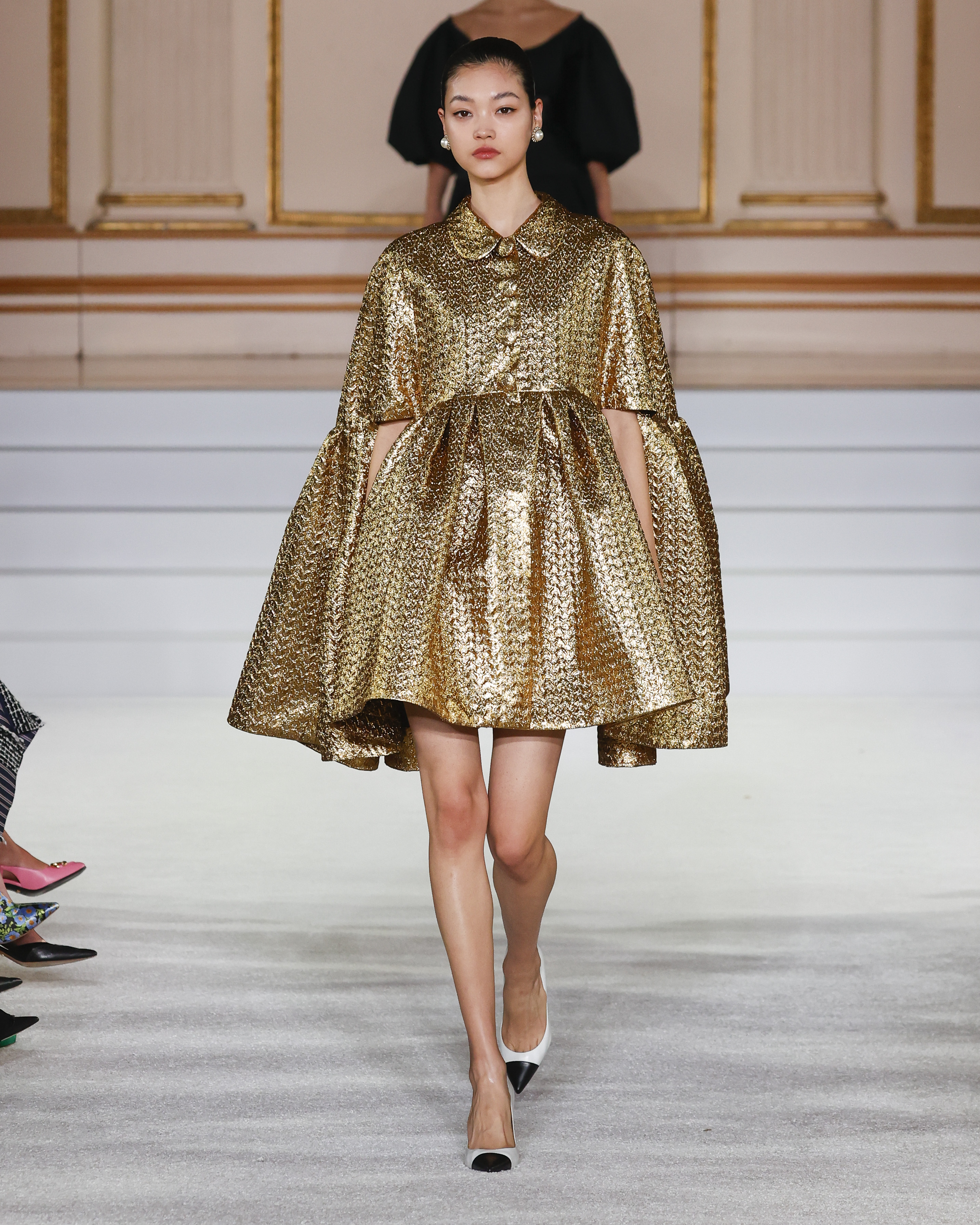 The concept of extreme opulence and what it means today is explored, and not just in its visual manifestation. There is opulence in time and consideration spent on the creation of a piece, opulence in zero compromise for the very best of construction and craftsmanship by the Carolina Herrera atelier. Opulence in how a woman feels when putting on her dress, the voluminous shape of her skirt held up by layers of feather-light tulle beneath, or a sharply tailored suit precisely cut to the millimeter.