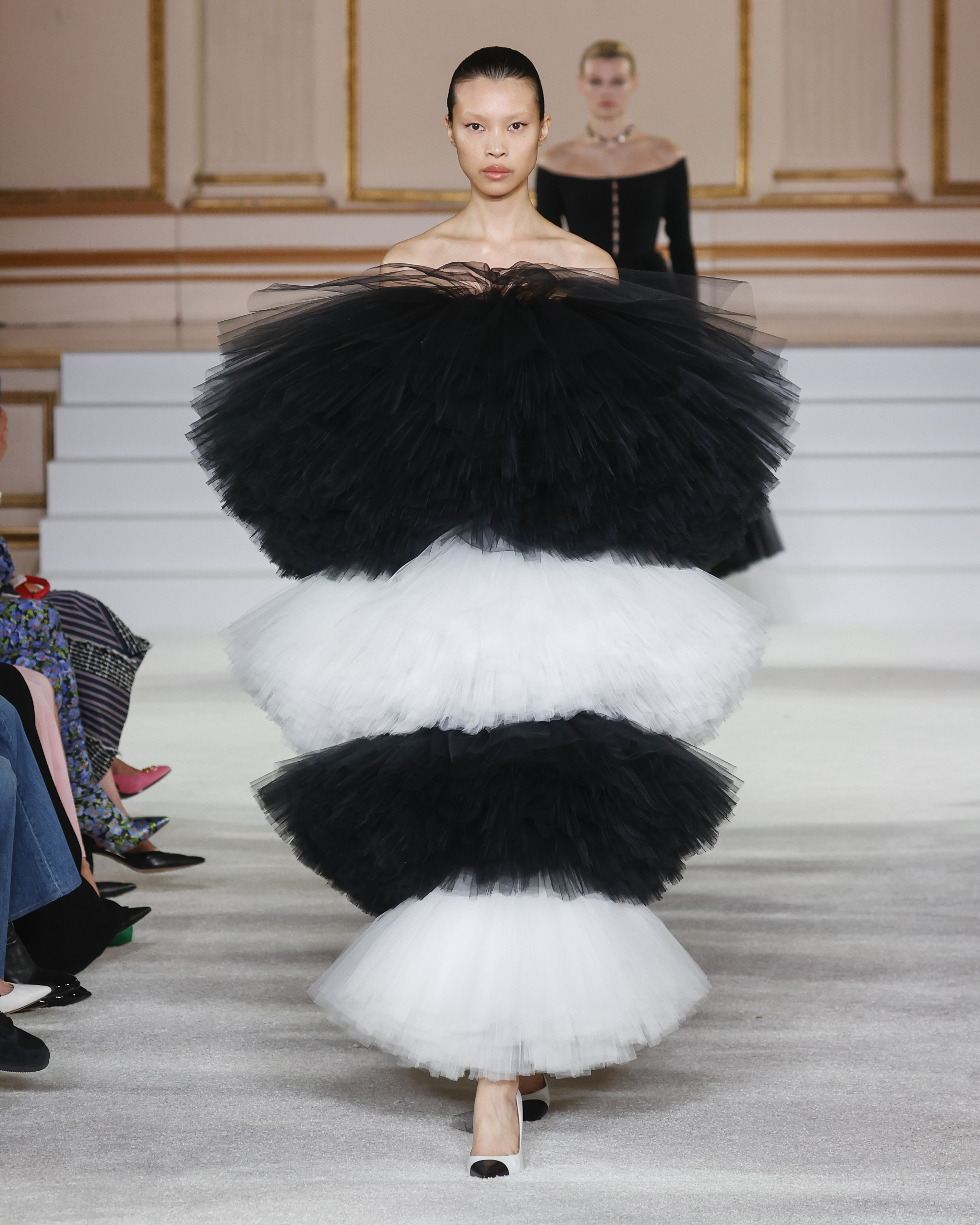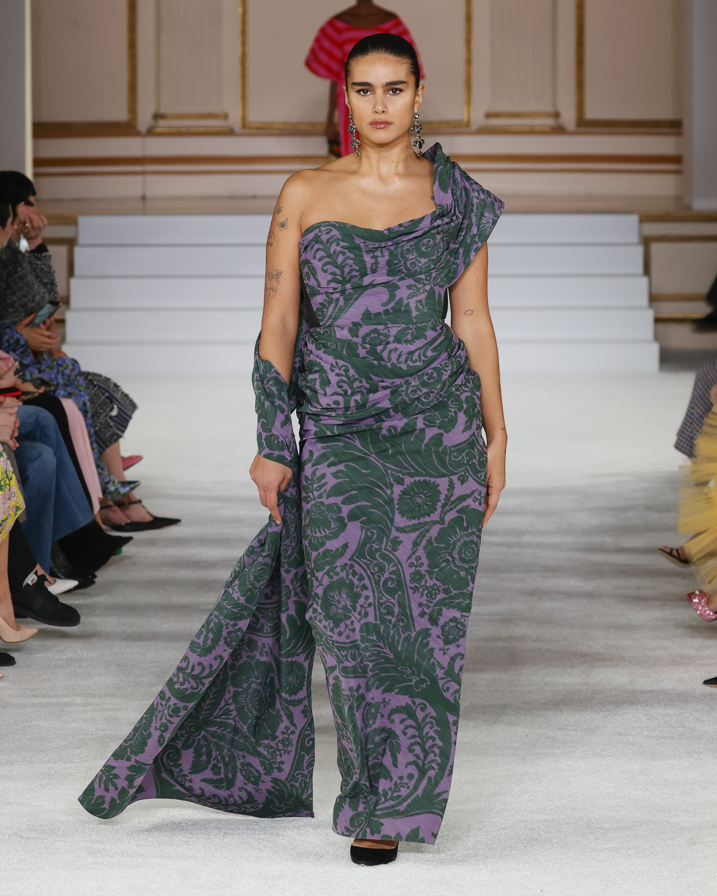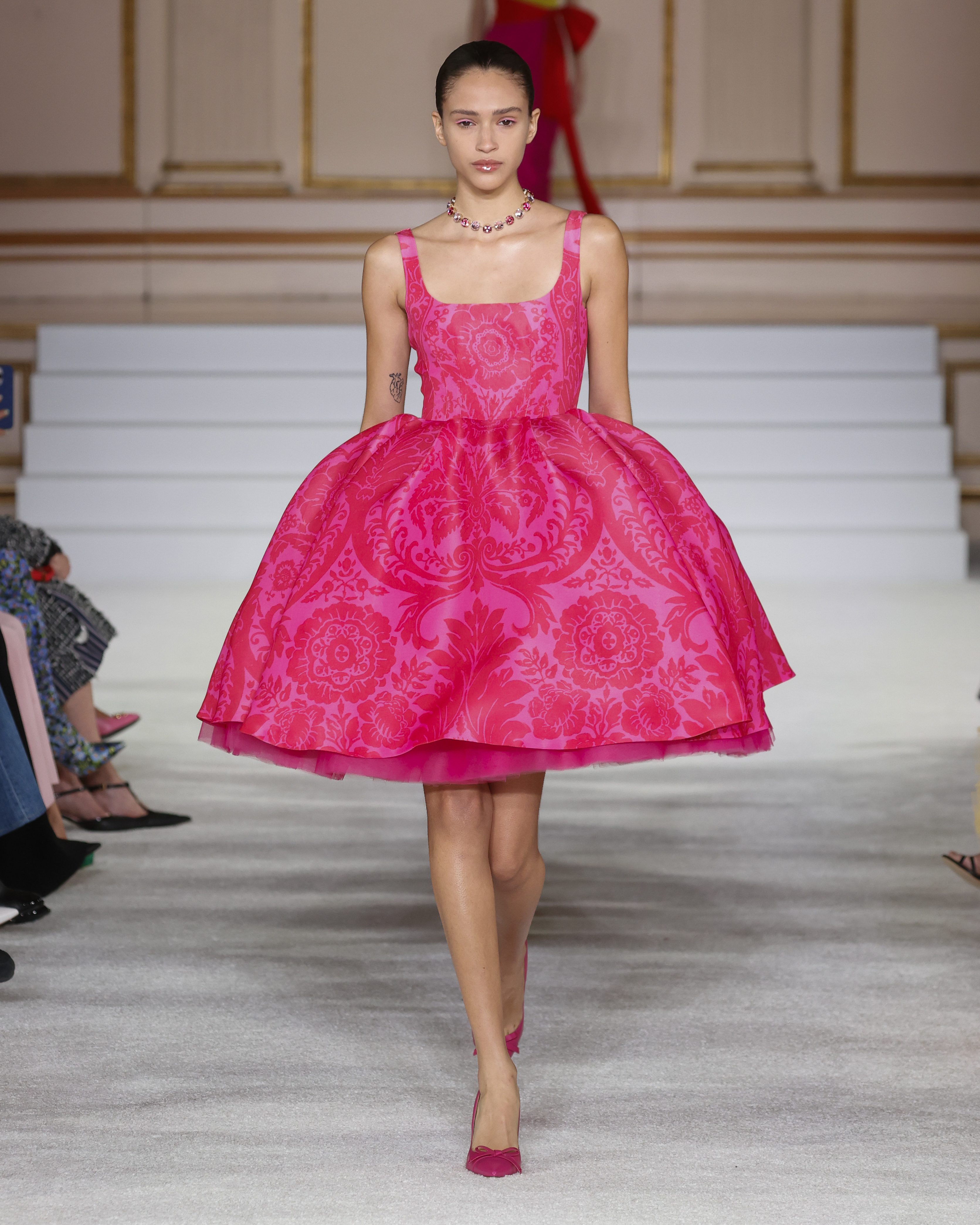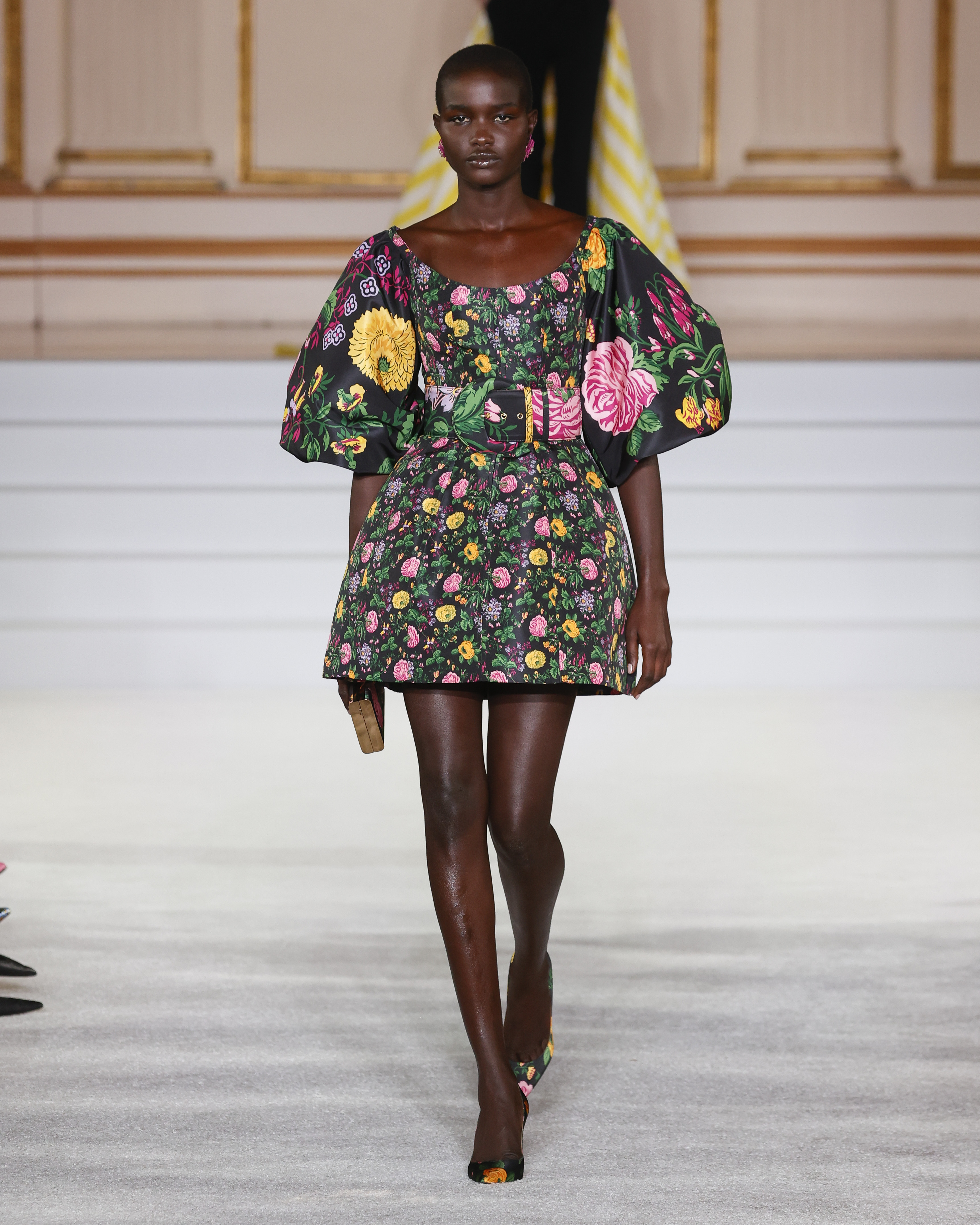 The concept of extreme opulence and what it means today is explored, and not just in its visual manifestation. There is opulence in time and consideration spent on the creation of a piece, opulence in zero compromise for the very best of construction and craftsmanship by the Carolina Herrera atelier. Opulence in how a woman feels when putting on her dress, the voluminous shape of her skirt held up by layers of feather-light tulle beneath, or a sharply tailored suit precisely cut to the millimeter.