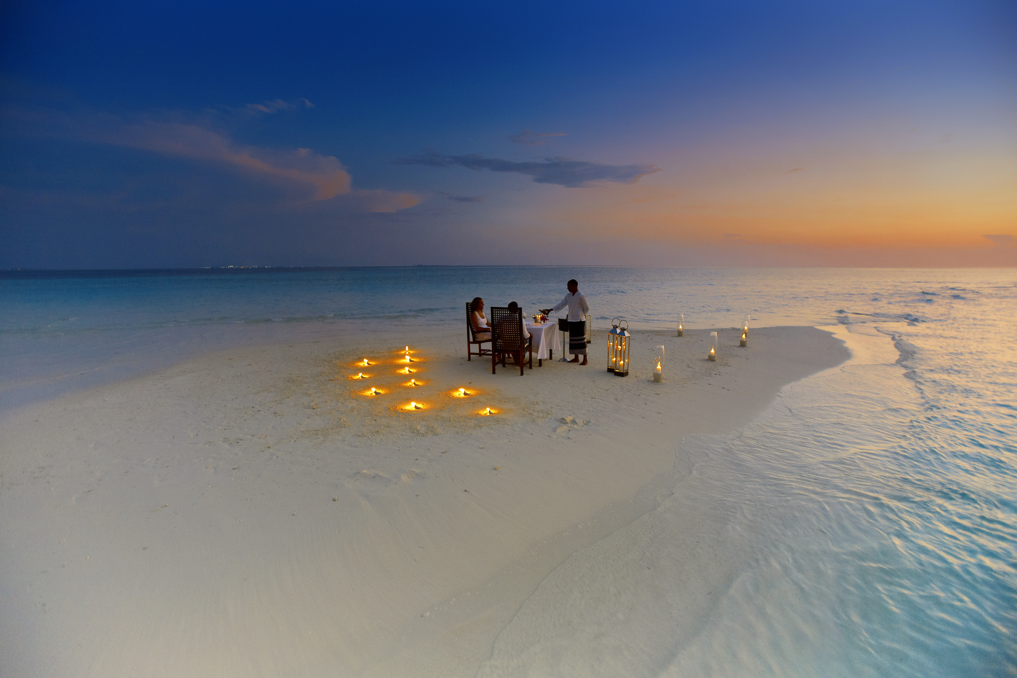 For the true romantics, a private butler can serve a special 5-course menu, on a private, secluded sandbank with a heart-shaped set-up just for them. Starting at sunset with bubbly and roses, and ending under the stars, this is as romantic as it gets.