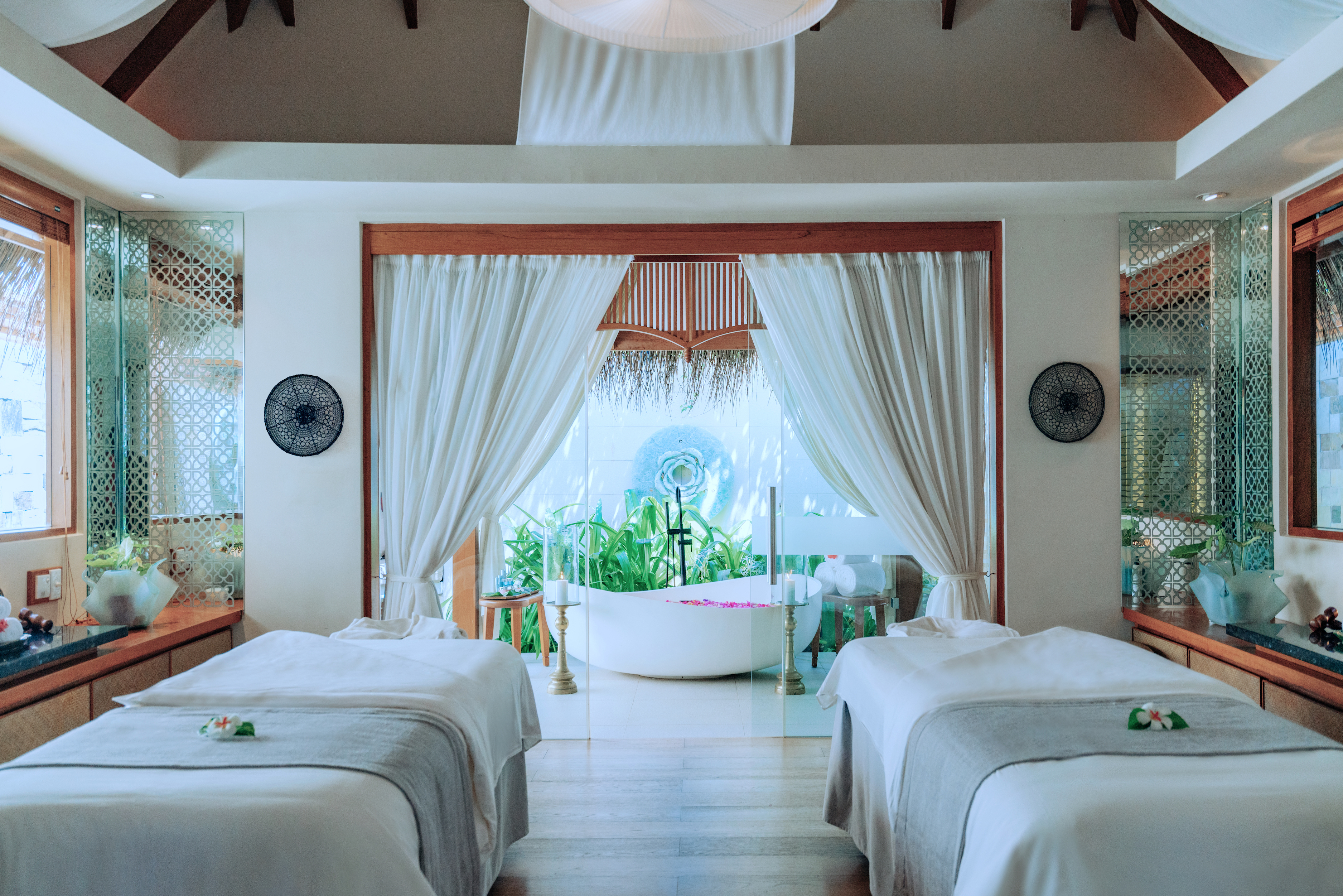 Couples can also laze in the cocooning romance of their pool villa, taking in mesmerising views of the sapphire ocean beyond as they indulge in a floating breakfast.