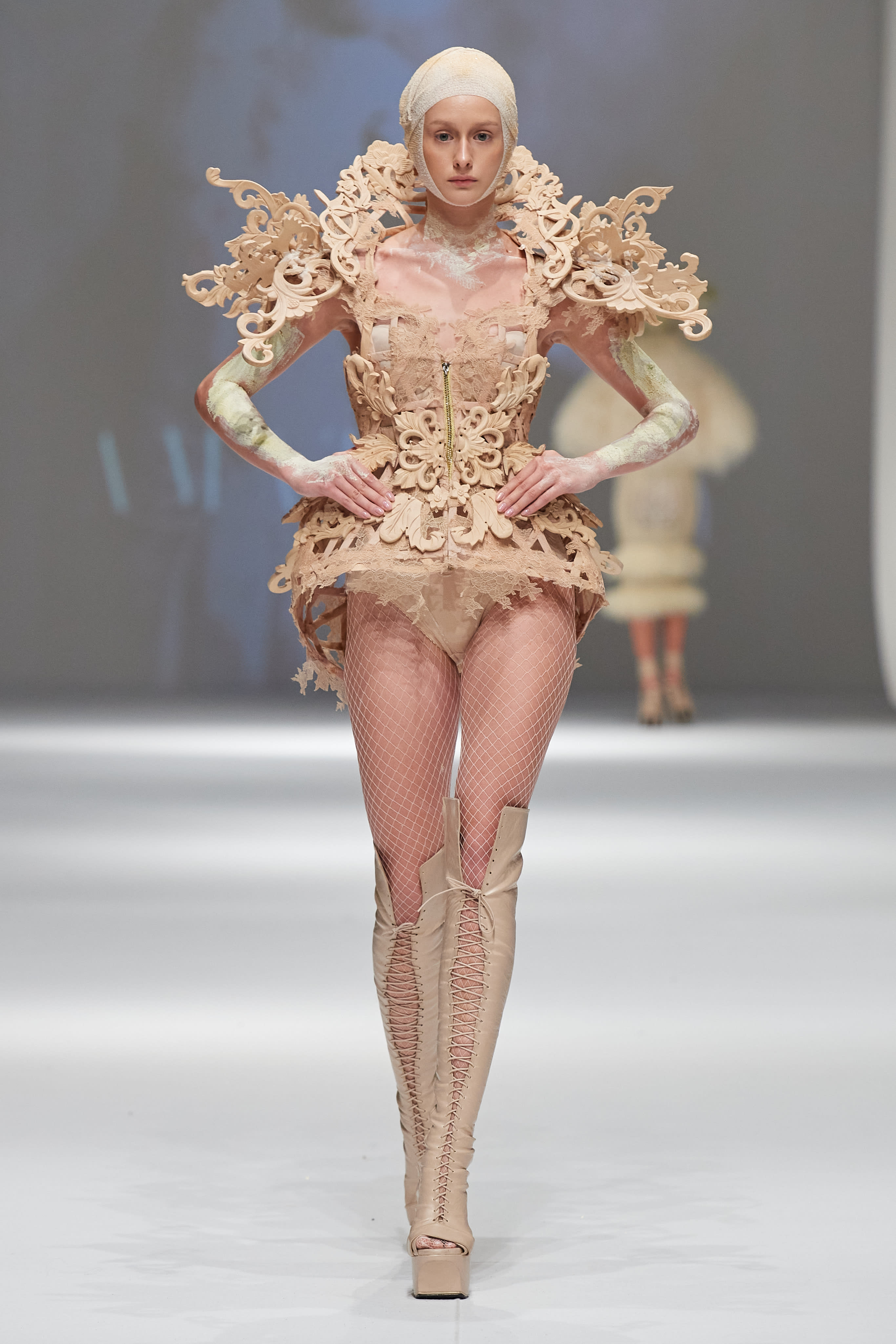 Amato’s show celebrated 25 years of continuous renowned creations. Carefully selected powerful designs from the brand’s conception till this day were showcased. Perfect evidence of why Amato broke glass ceilings and was always described as intriguing, inspiring and creative. The genius designs were designed for a strong person comfortable in their own skin and is after breaking status quos to follow their dreams. The fabrics, lavish materials, and rare embellishment techniques are what makes this Dubai- based label a global one. The show is a beautiful portray of evolving glam and success.