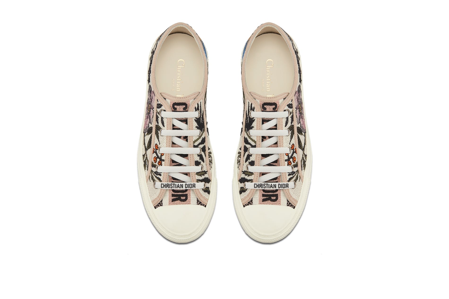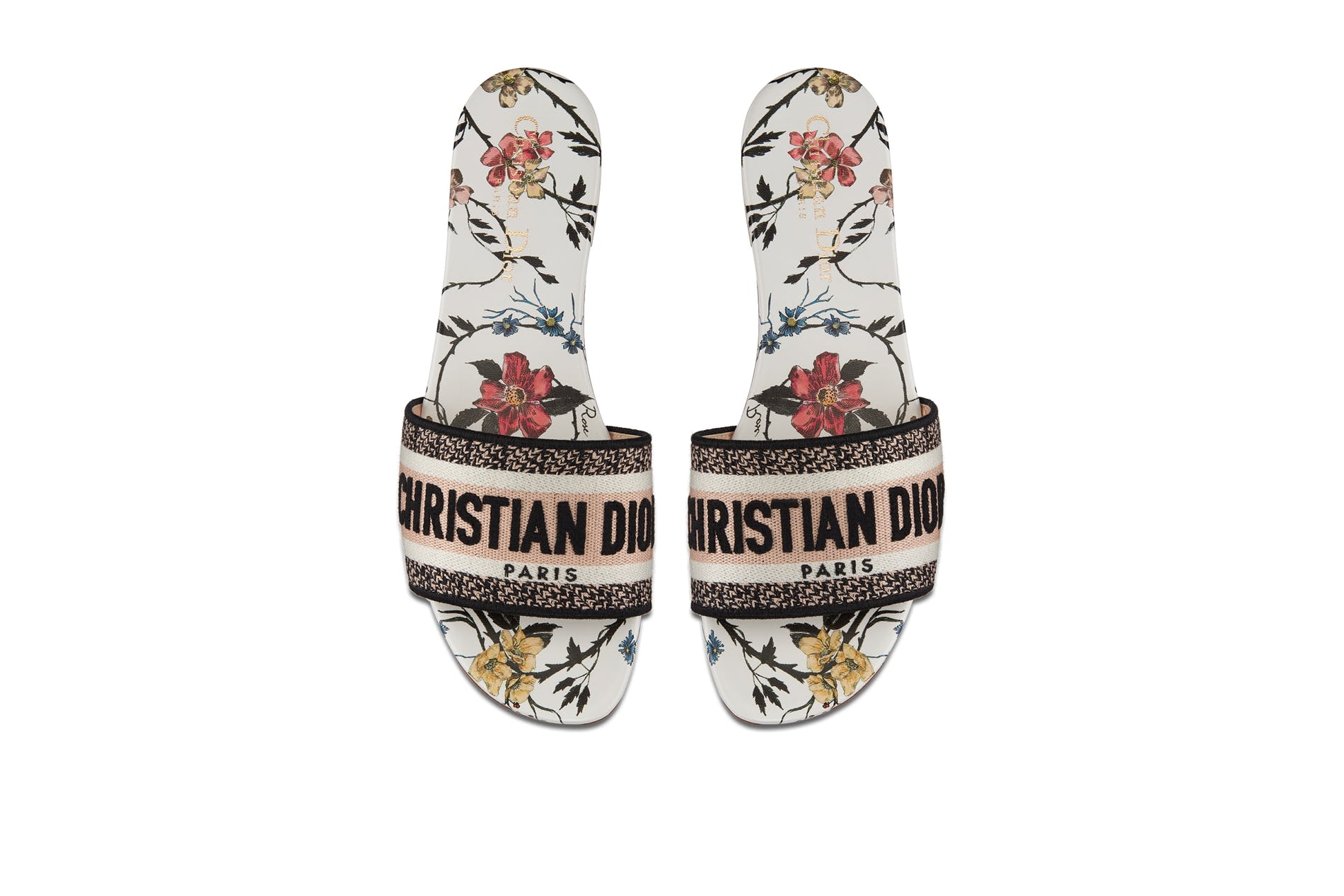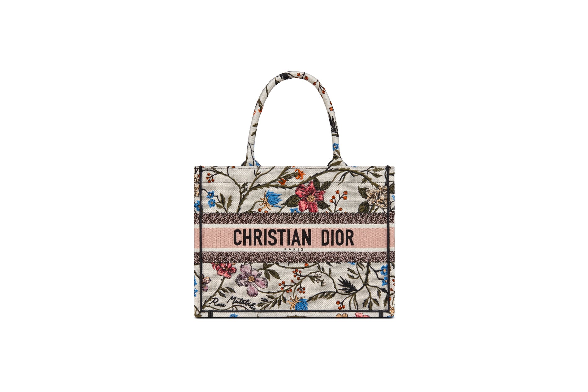 The Fall 2020 collection designed by Maria GraziaChiuri features a series of original looks inspired by Rosa mutabilis, a precious species of rose originating in China, whose color changes over the course of its blooming. This symbol is transformed into delicate embroidery that appears on must-have accessories, such as the iconic Dior Book Tote bag or emblematically elegant Mitzah scarf, as well as on a selection of shoes – consisting of Walk'n'Dior sneakers, J'Adior pumps, Granville espadrilles and Dway mules. These irresistible creations provide enchanting and romantic final touches of springlike femininity in a celebration of the beauty of nature.