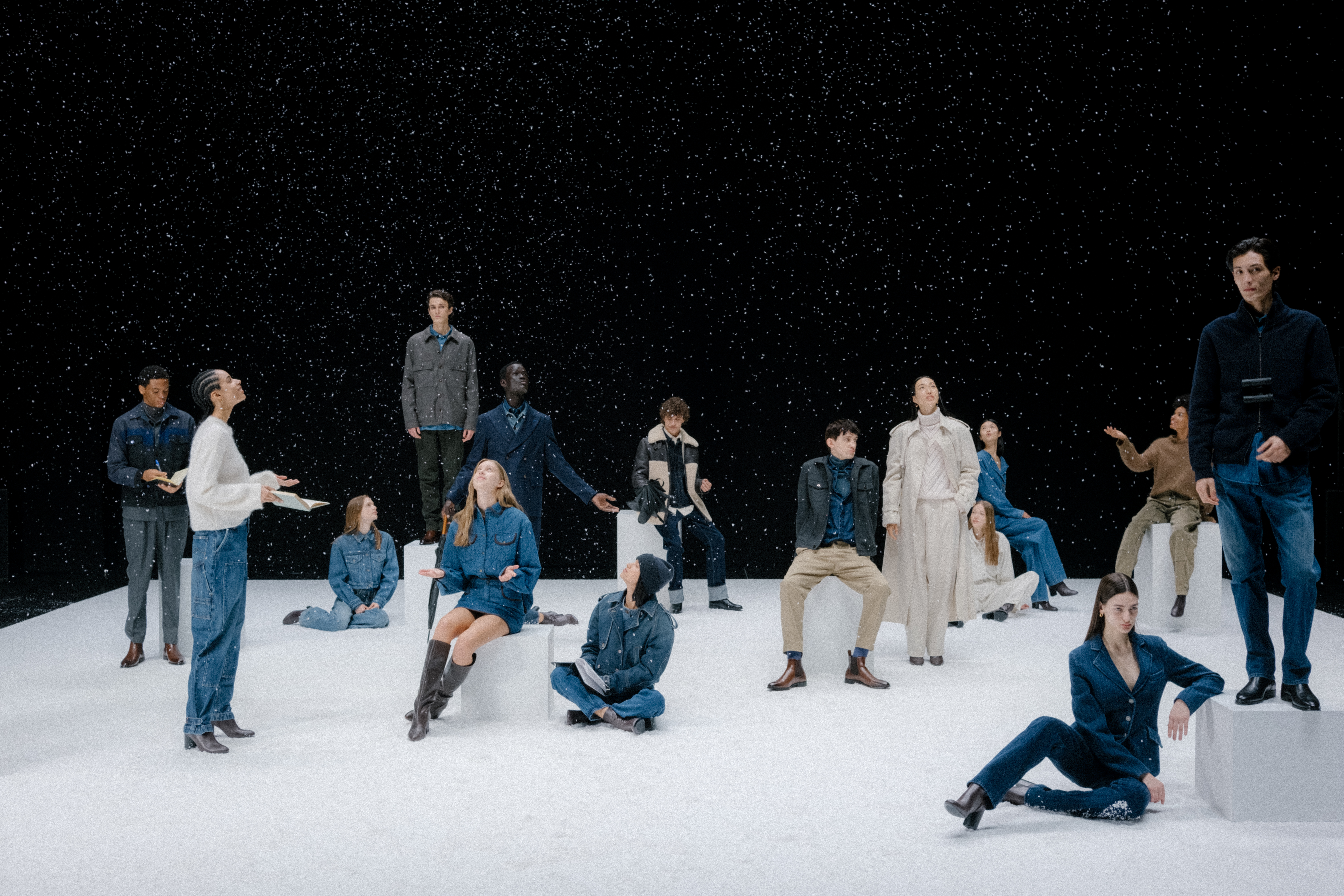 Encircled by a mirrored aluminum fence, the space was simultaneously enclosed and inviting, enhanced by burgundy shag carpeting and soft alpaca textiles from Lanificio Becagli. The collaboration with Almeco underscored the exhibition’s technical excellence.