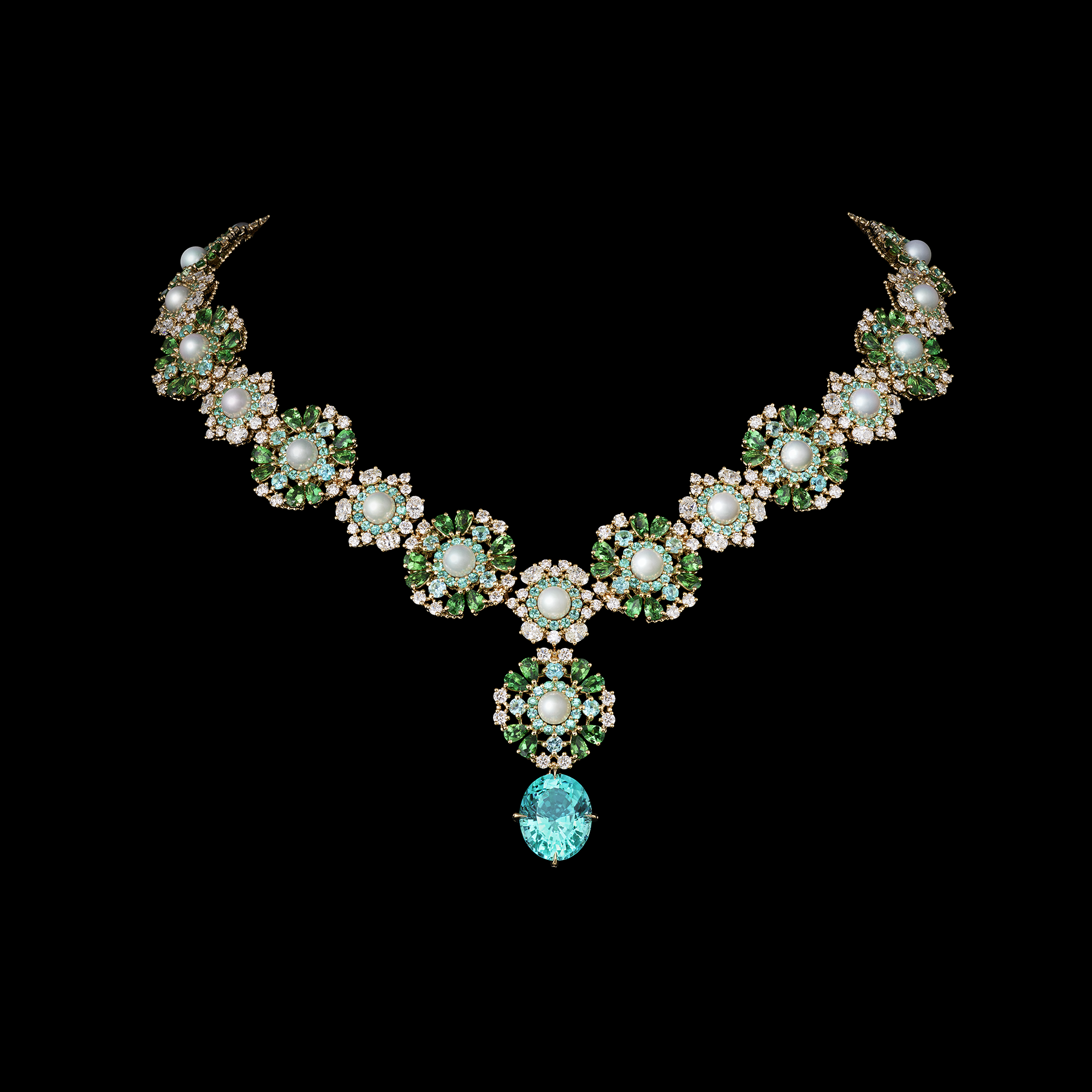 Today, the Artistic Director is writing a new page in the history of Dior high jewelry with Les Jardins de la Couture. Building on the previous ones, this chapter is told through 170 exceptional pieces – including three secret watches – making up four fascinating stories. The first, Galons Fleuris, comes alive by the repetition of bucolic motifs on necklaces, earrings and bracelets evoking precious ribbons. The same poeticism can be discovered in Très Cher Dior, the shimmering, relief-set jewels of which feature audacious volume settings. An ode to lush, living vegetation, the Buissons Couture creations are studded with flowers – constructed stone by stone – forming a hypnotic ballet. Marking the final stop on this enchanted journey, Mini Milly revisits Christian Dior’s garden at Milly-la-Forêt, with her child’s eyes, in a flourish of stunning hues.