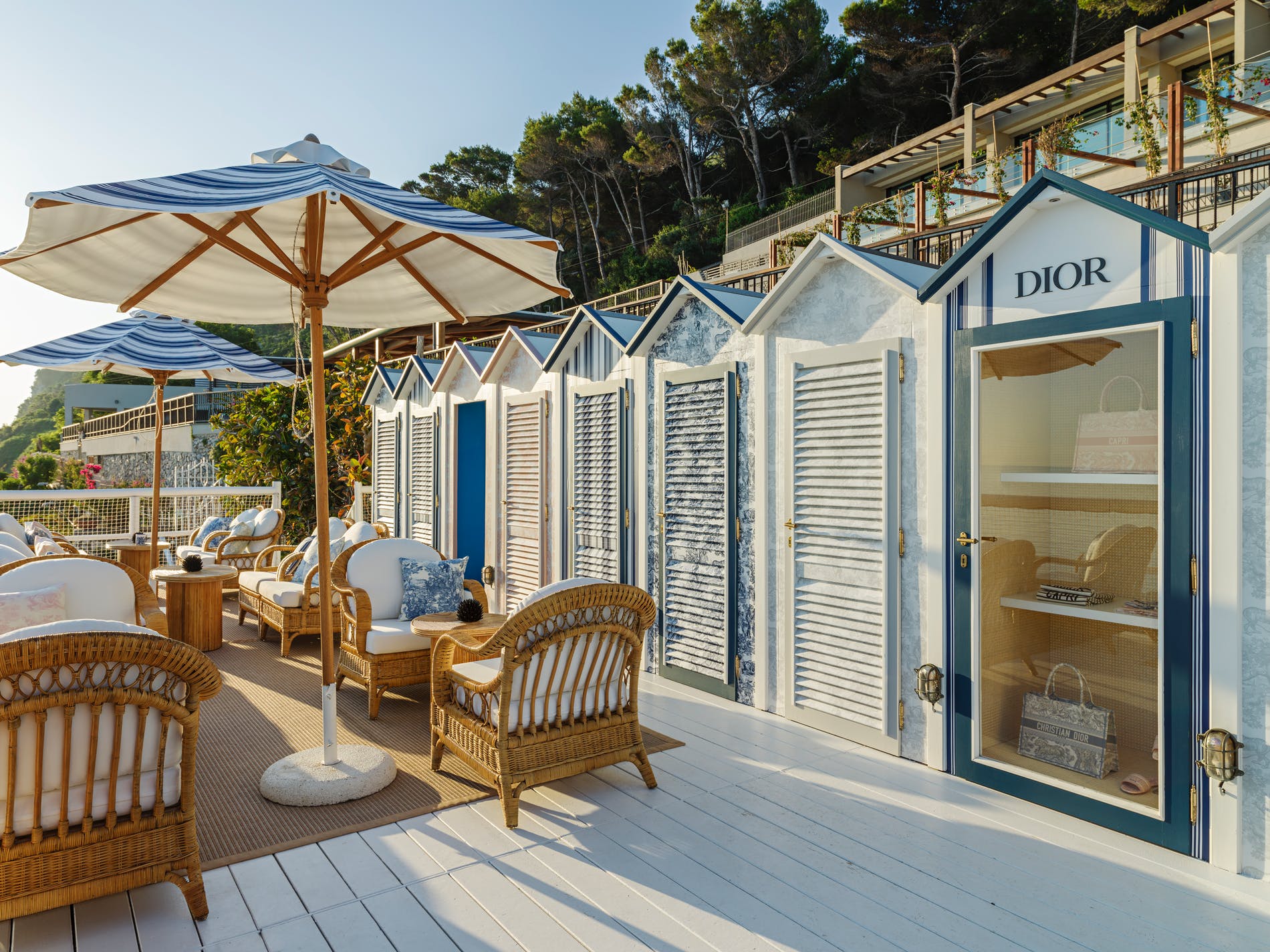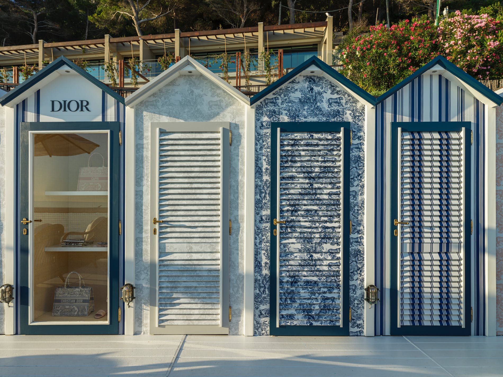 Presented alongside exclusive Dior Maison objects, the capsule essentials include sailor tops and summer accessories, along with the iconic Dior Book Tote, Saddle and Diorcamp bags revisited with the motifs of the Dior Around the World line, inspired by the sketches of the Roman artist Pietro Ruffo. This signature joins toile de Jouy and bayadère stripes on the cushions, parasols and personalized beach cabins of the lounging area, entirely redecorated by the House for the occasion as a testament to the irresistible lure of sun-drenched escapism and an evocation of the good life.