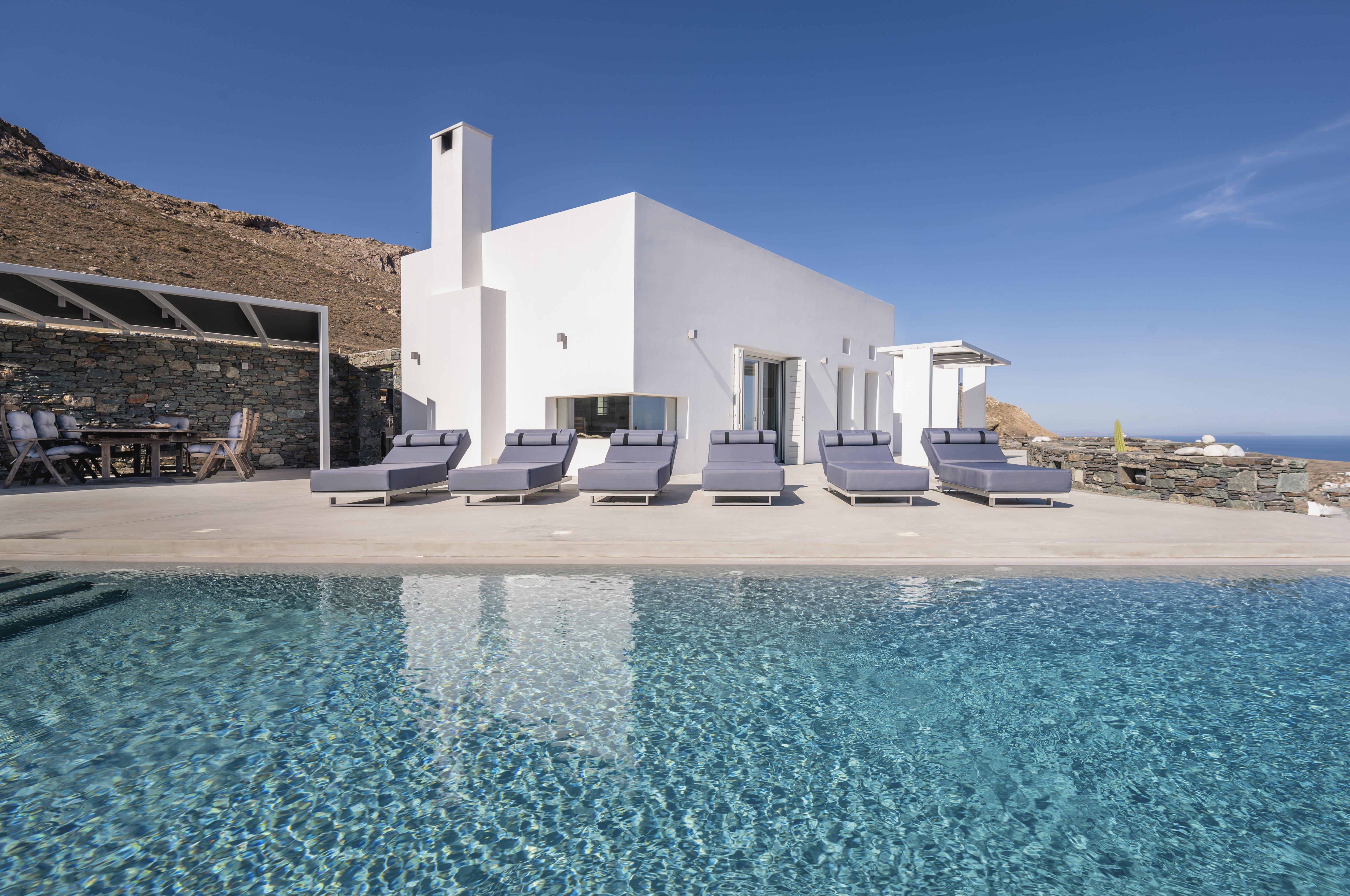 Mykonos isn’t just vibrant nightlife and cosmopolitan charm. It’s a haven of architectural design, too, starting with Villa Muse – a sanctuary of contemporary calm. Overlooking the Aegean’s sparkling waters, in the Choulakia area, this architectural masterpiece offers sleek design and impeccable attention to detail. Standout amenities include a swimming pool which sits alongside an impressive outdoor dining and seating area, complete with BBQ. Indulge in the island's vibrant energy by exploring the quaint streets of Mykonos Town, relaxing on pristine beaches, and savouring world-class cuisine. Villa Muse is the epitome of Mykonian elegance, ensuring an unforgettable stay.