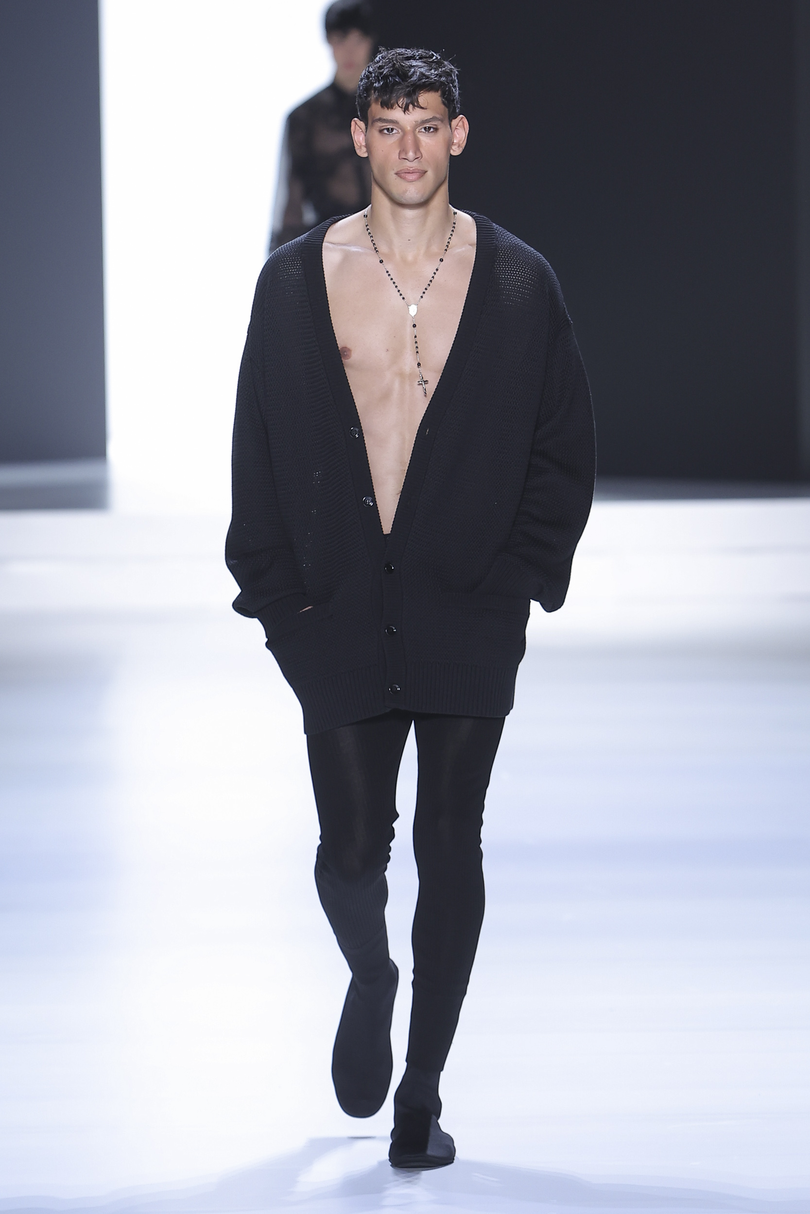 Then, the Style as the identity of the brand and its reference imagery that the Designers have created over the time and that now have reworked with the eyes of the the present: Above all, the tailoring, the cut, the well-cut garment, attention for details, the black, the rosary…