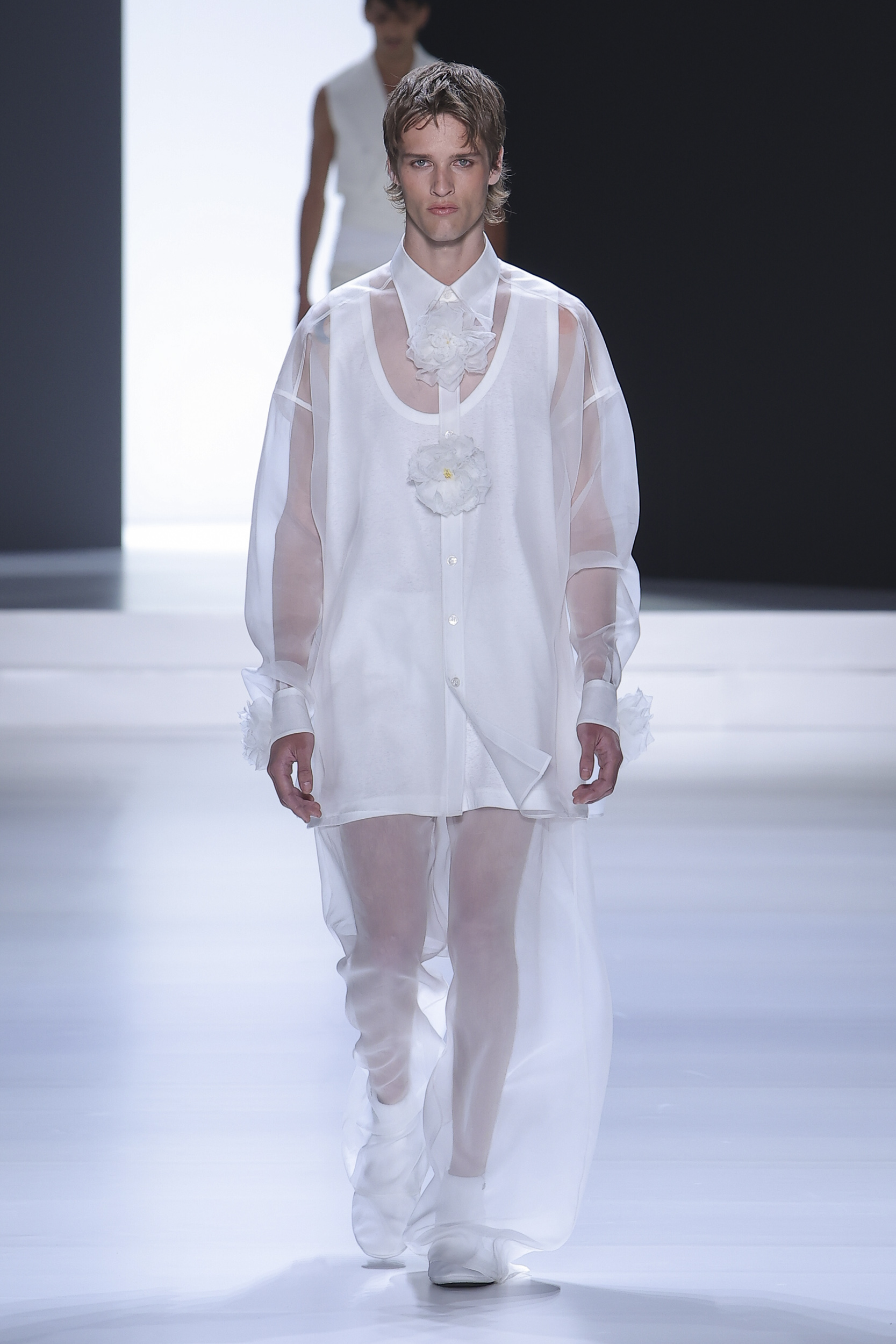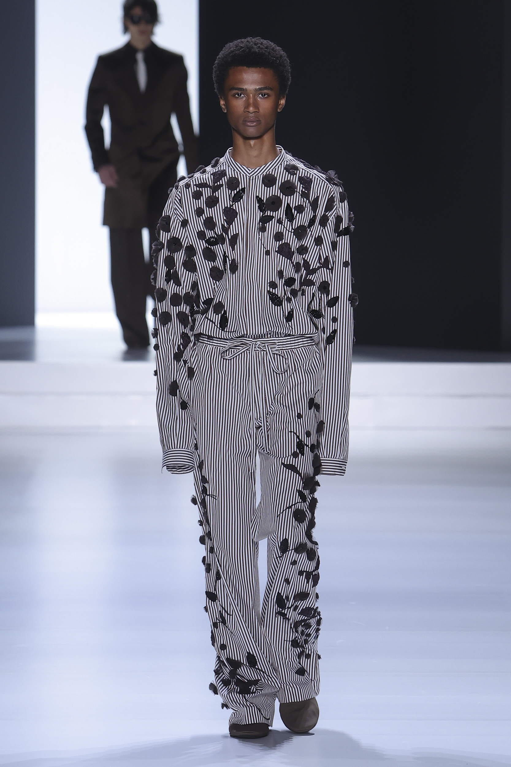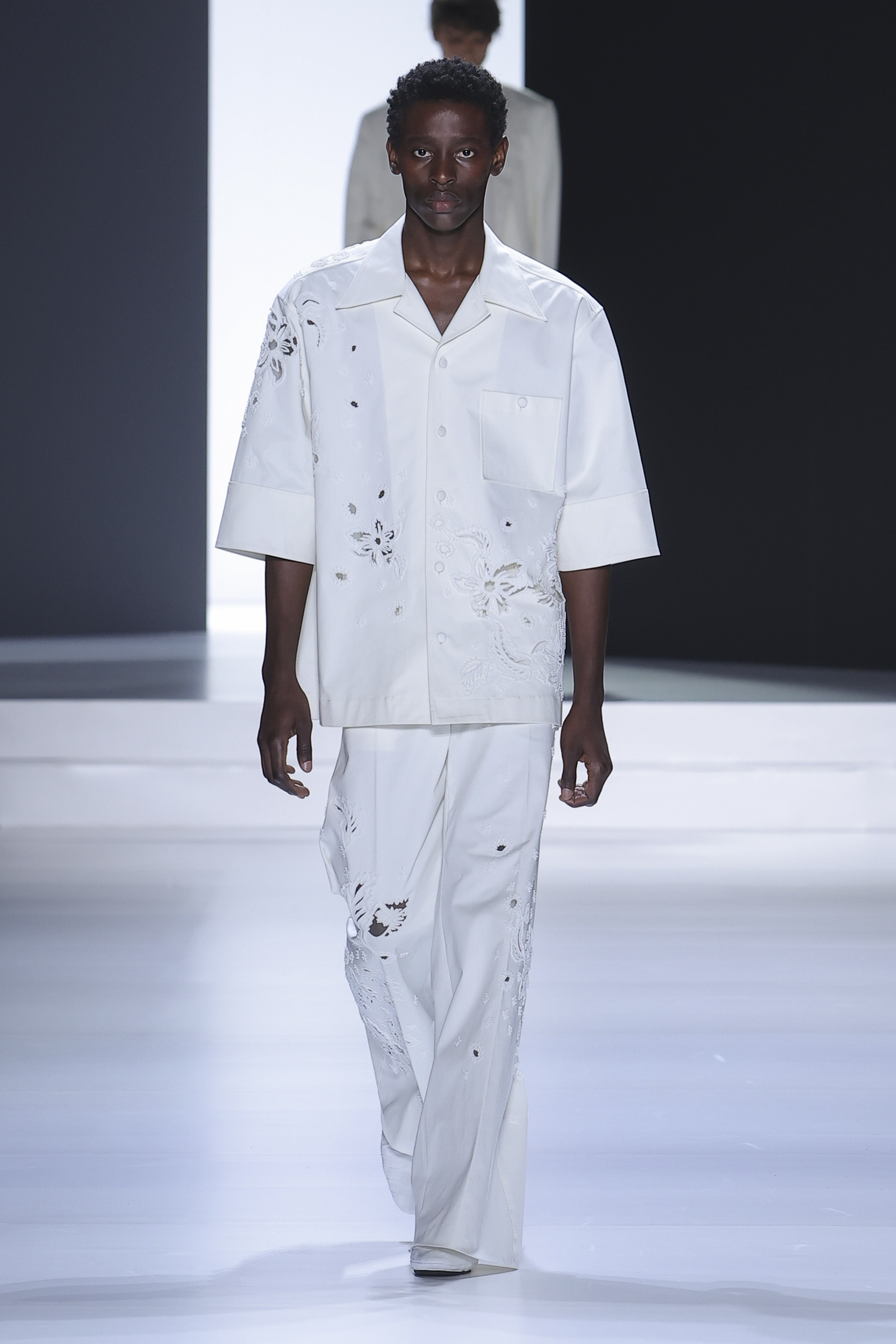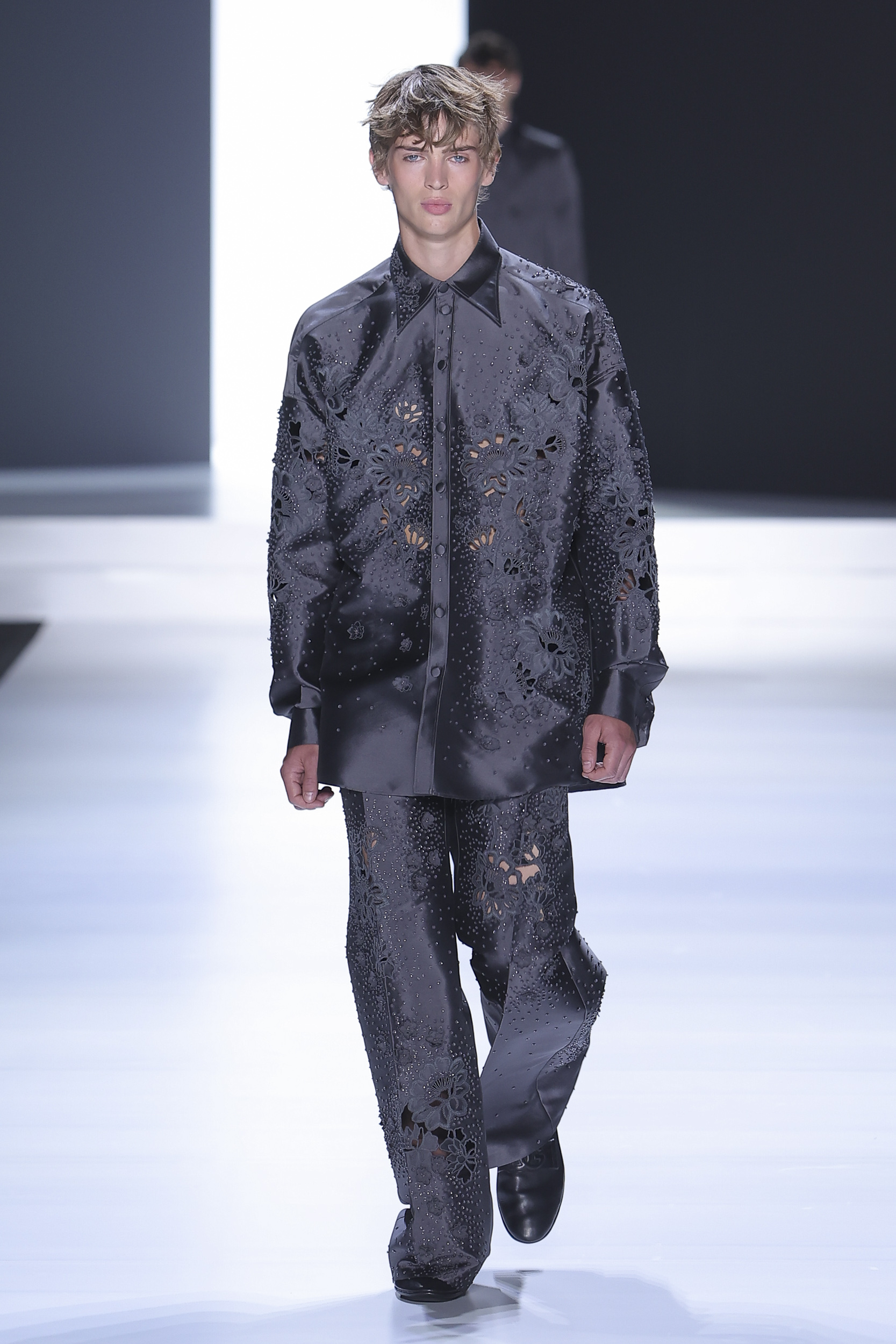 Embroidery element: sculpted flowers on some garments (such as shirts) to soften the look.