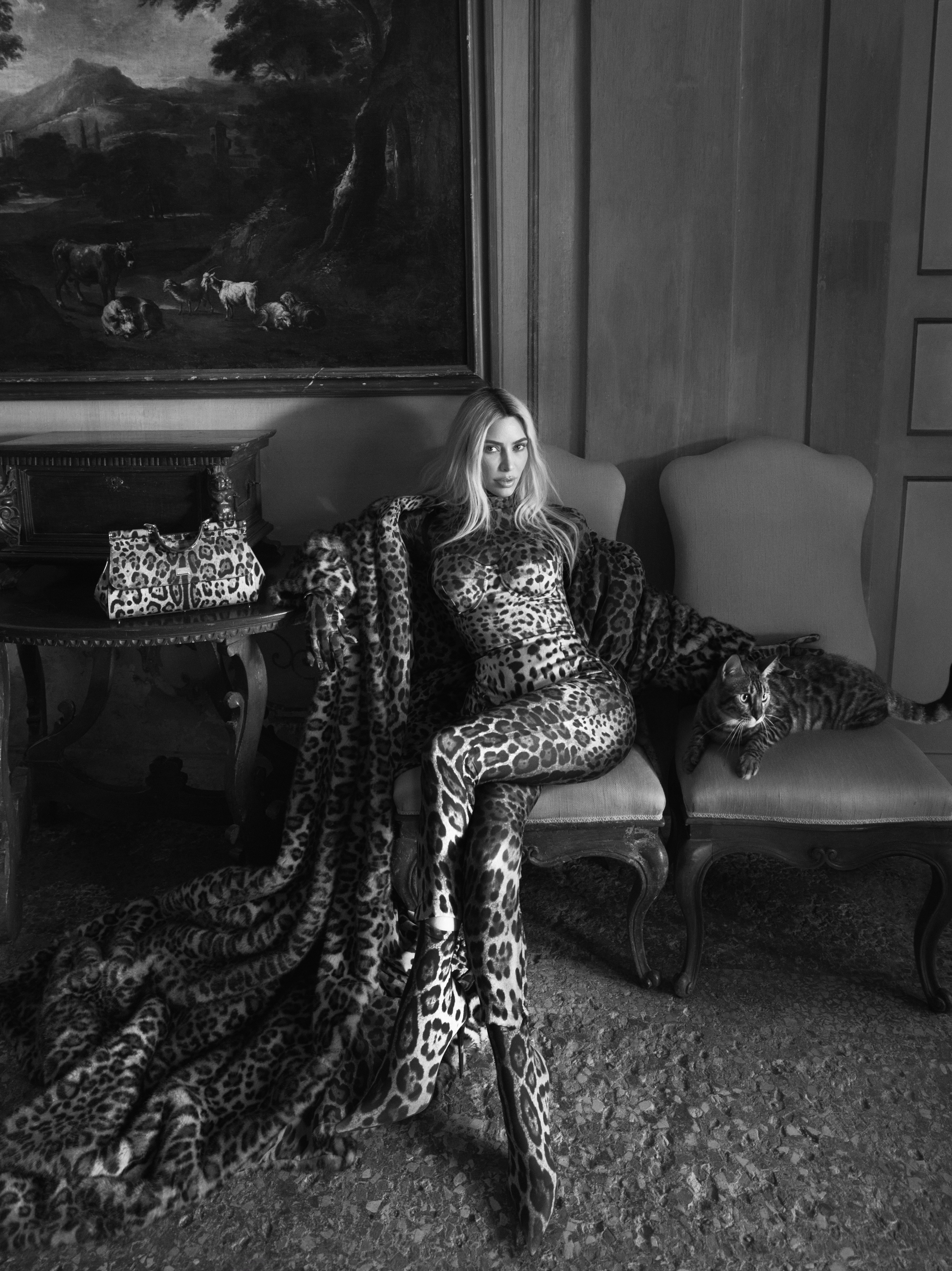The camera follows Kim through the rooms of an Italian villa: the spaces, imbued with the history of its objects and of those who have lived there, serve as the perfect backdrop for the new muse and the Collection. The clothes and accessories come from a singular reinterpretation of the Dolce&Gabbana 1990s and 2000s archives to which belong the same legendary garments that have so often inspired Kim throughout her life and career.