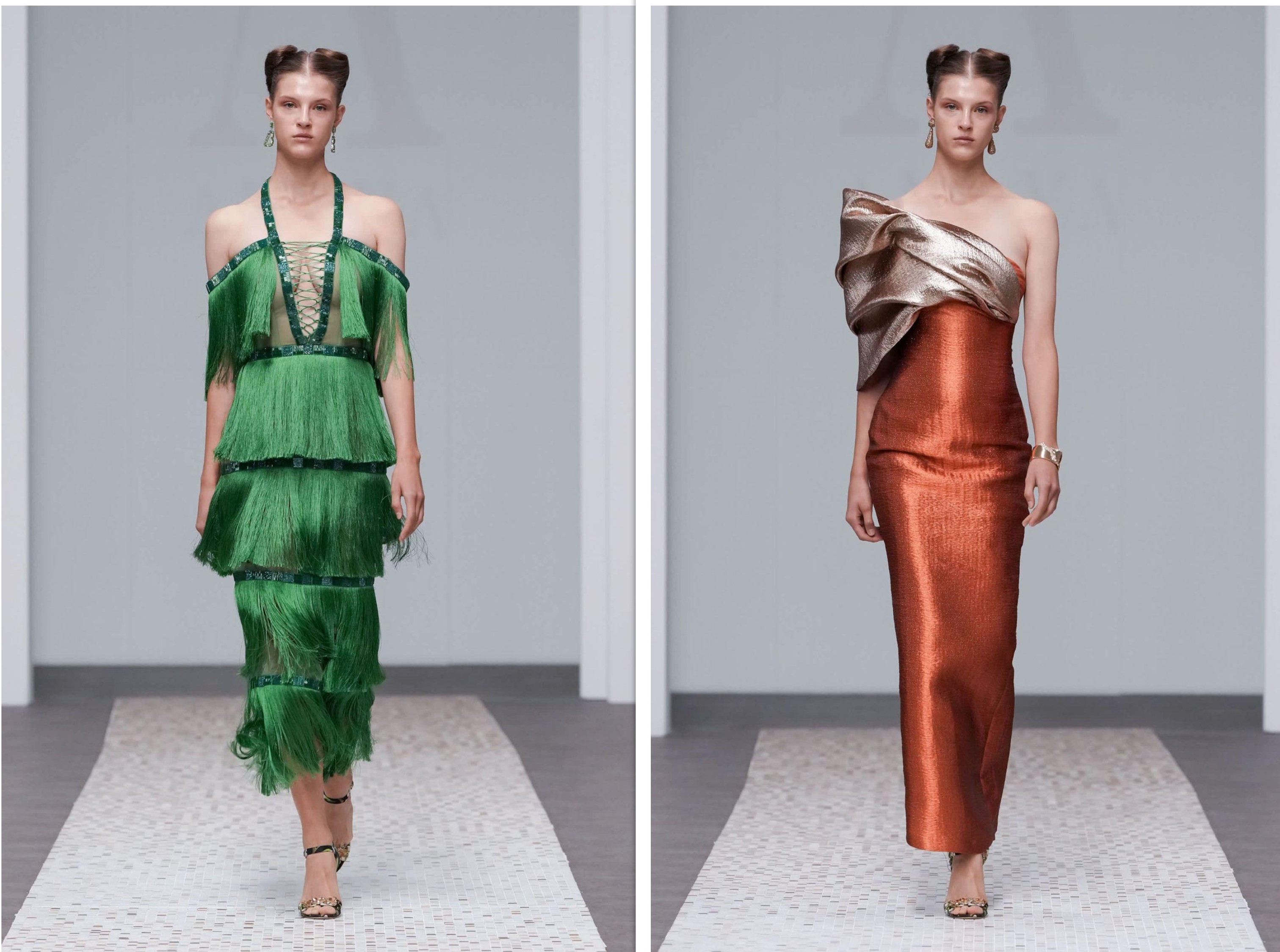 Dima Ayad's Spring/Summer 2025 collection stood out for its celebration of femininity. The Dubai-based Lebanese designer presented a series of vibrant, playful designs that ranged from colorful fabrics and floral sequins to lace ombre satin. Ayad's collection highlighted her commitment to inclusivity, offering pieces that cater to various body types while seamlessly transitioning from day to night. Her designs embodied a powerful message of embracing femininity as a source of strength and confidence.