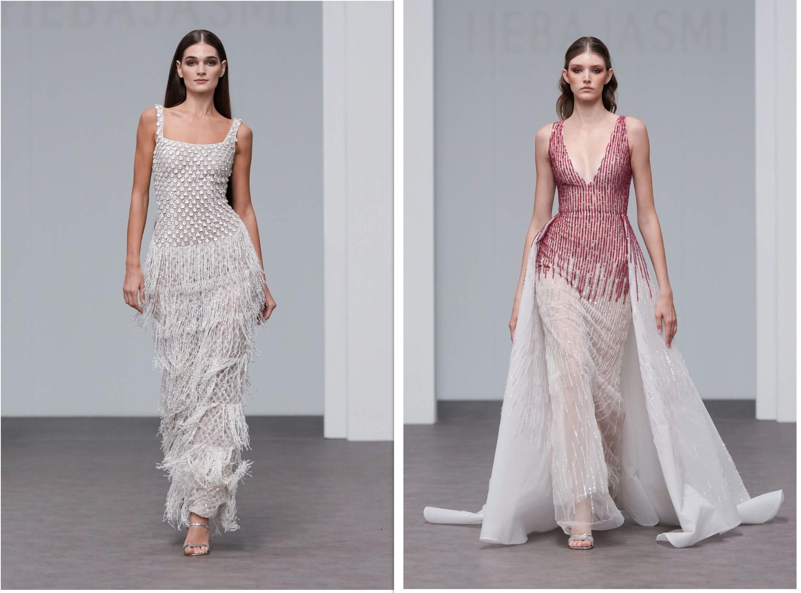 Emirati designer Heba Jasmi made a significant impact with her ‘State of Art’ collection. Known for her innovative approach to embroidery and flowing silhouettes, Jasmi's designs celebrated the female form through intricate lace, abstract nature-inspired prints, and a vibrant color palette. Her collection exemplified a commitment to high fashion craftsmanship, merging structured embroidery with elegant volumes to create a sophisticated and modern aesthetic.