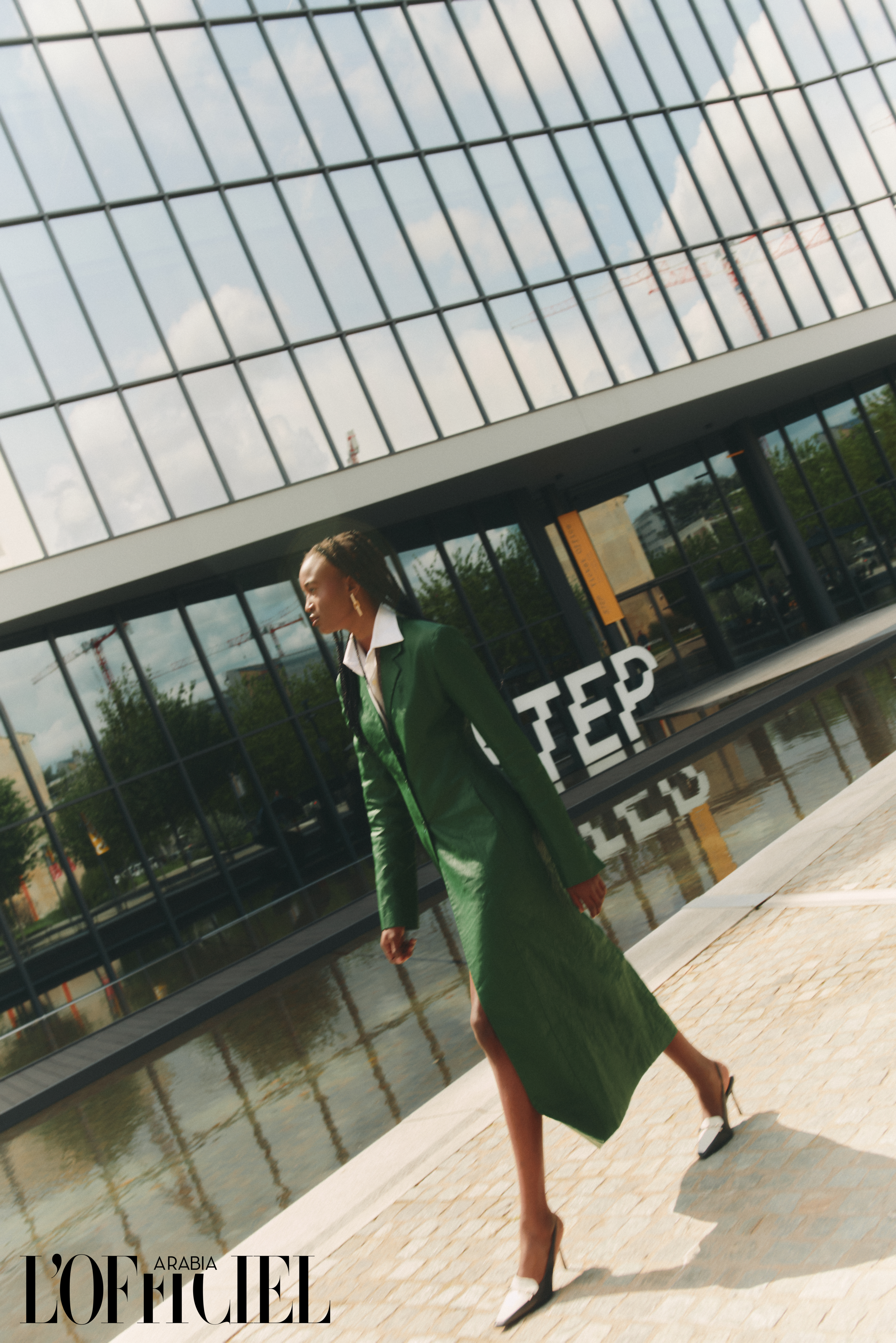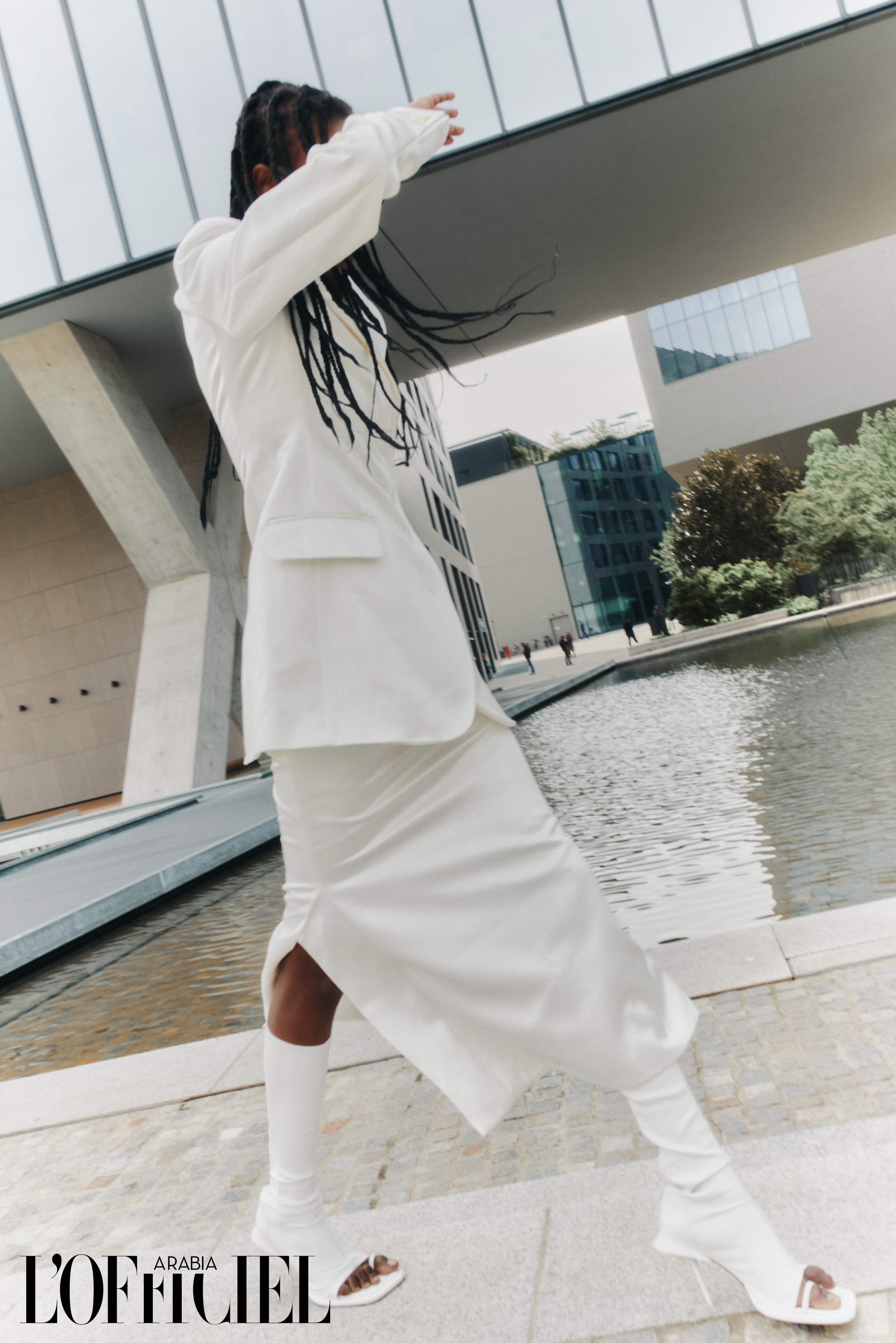 DRESS: Roberto Cavalli, SHOES: Roberto Cavalli, BAGS: Roberto Cavalli, BRACELET: Roberto Cavalli, EARRINGS: Roberto Cavalli, DURAG: Ismaide.