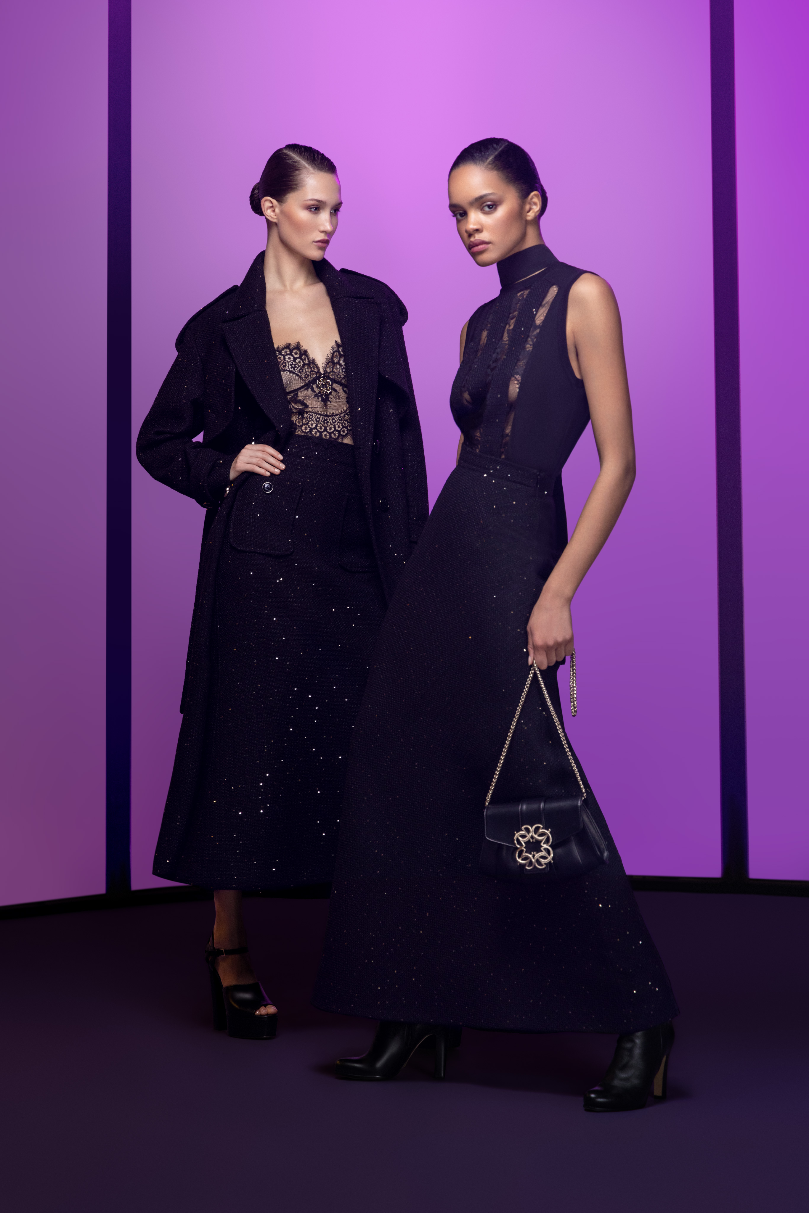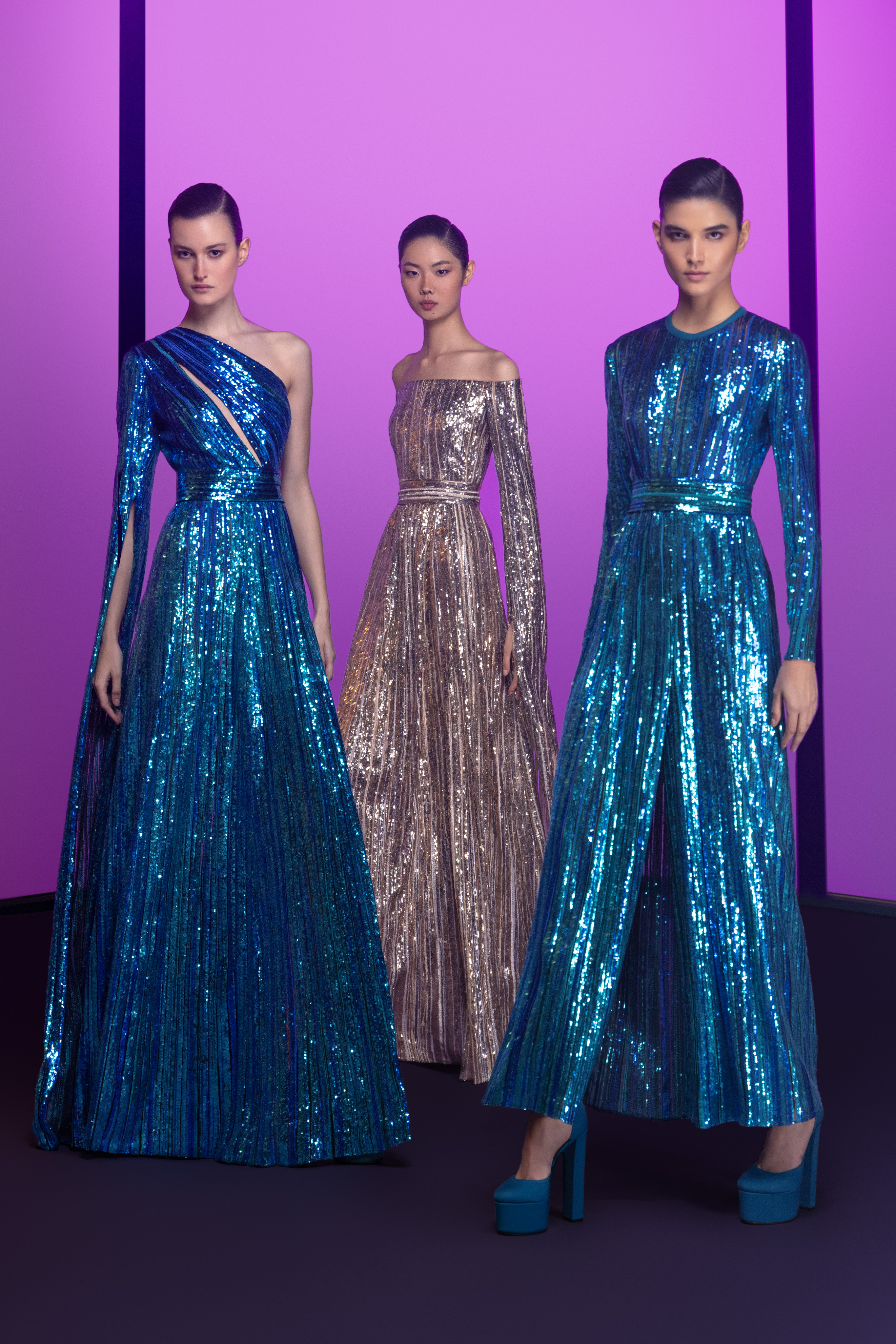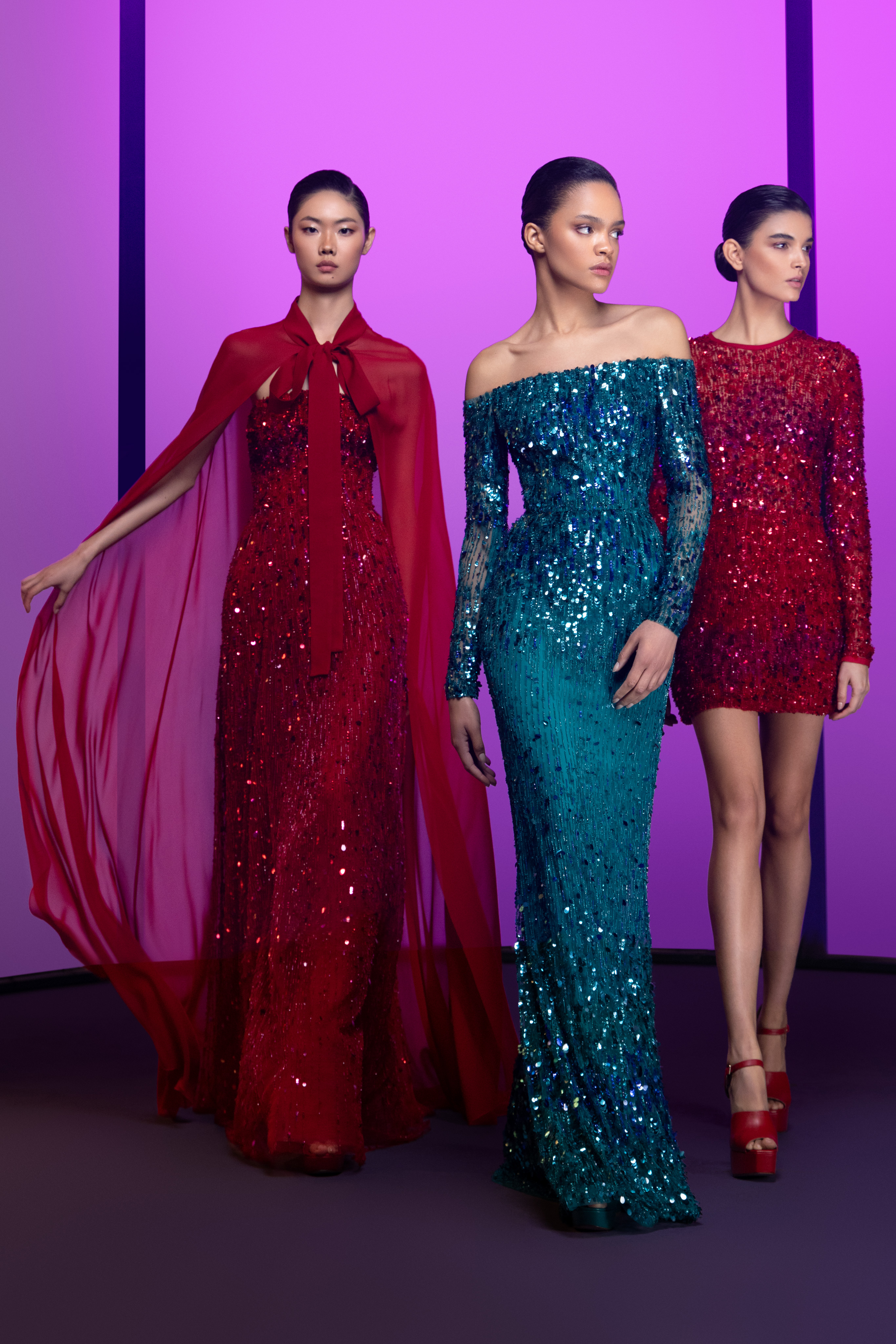 The PREFALL 2023 collection radiates and shines into the noirs of night, like the audacious, yet subtly mysterious ELIE SAAB woman, who forever glistens with glamour.