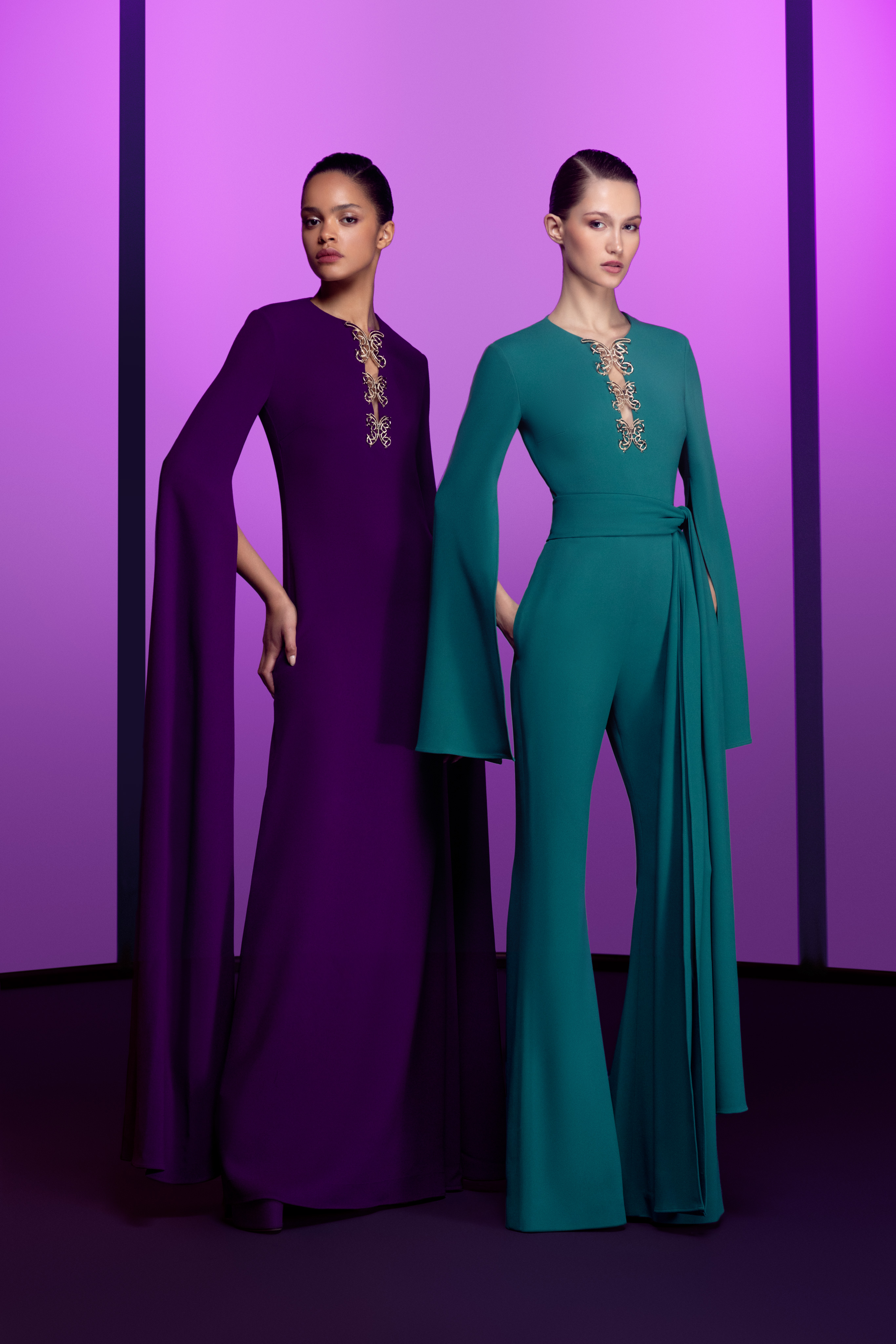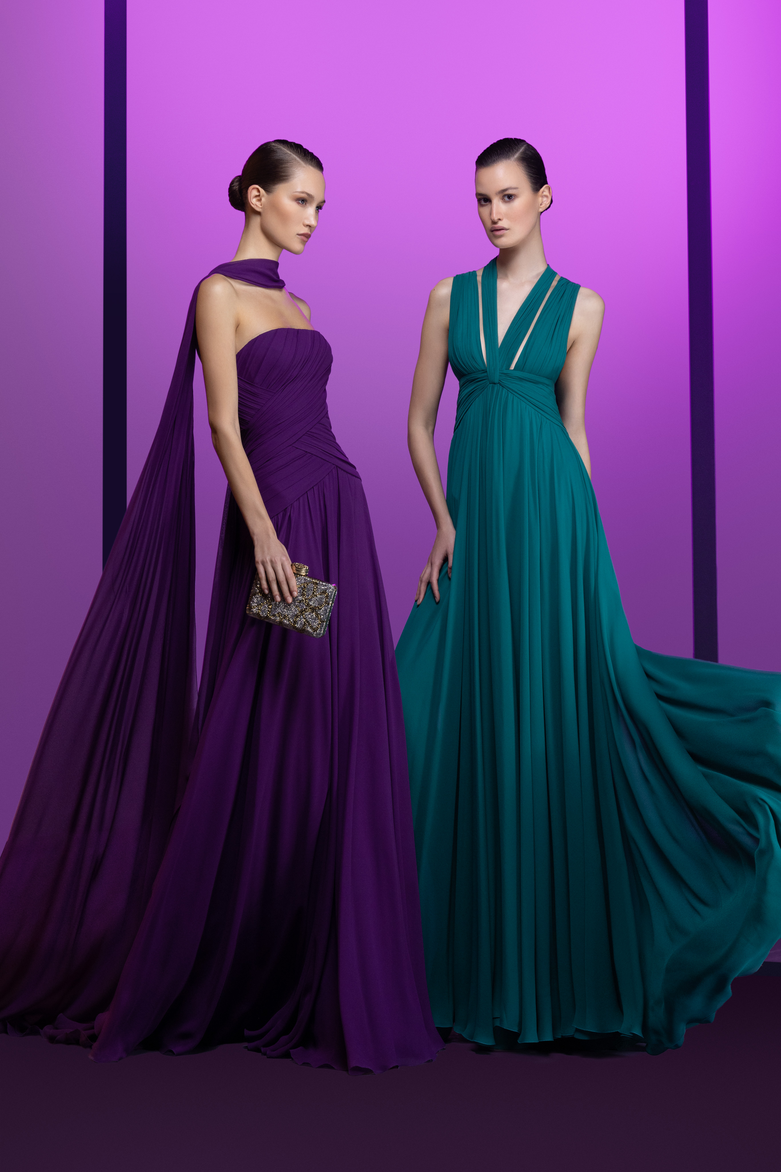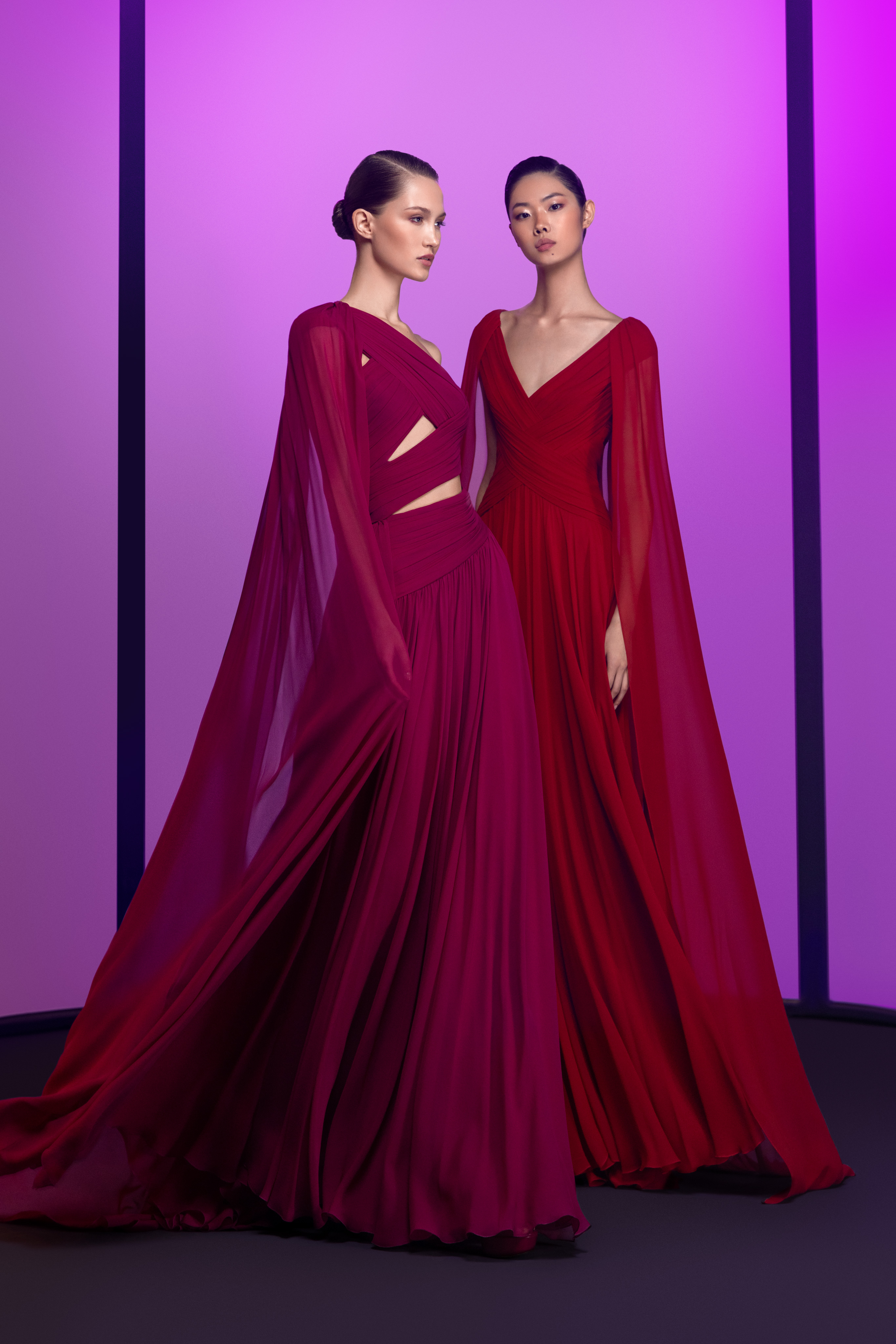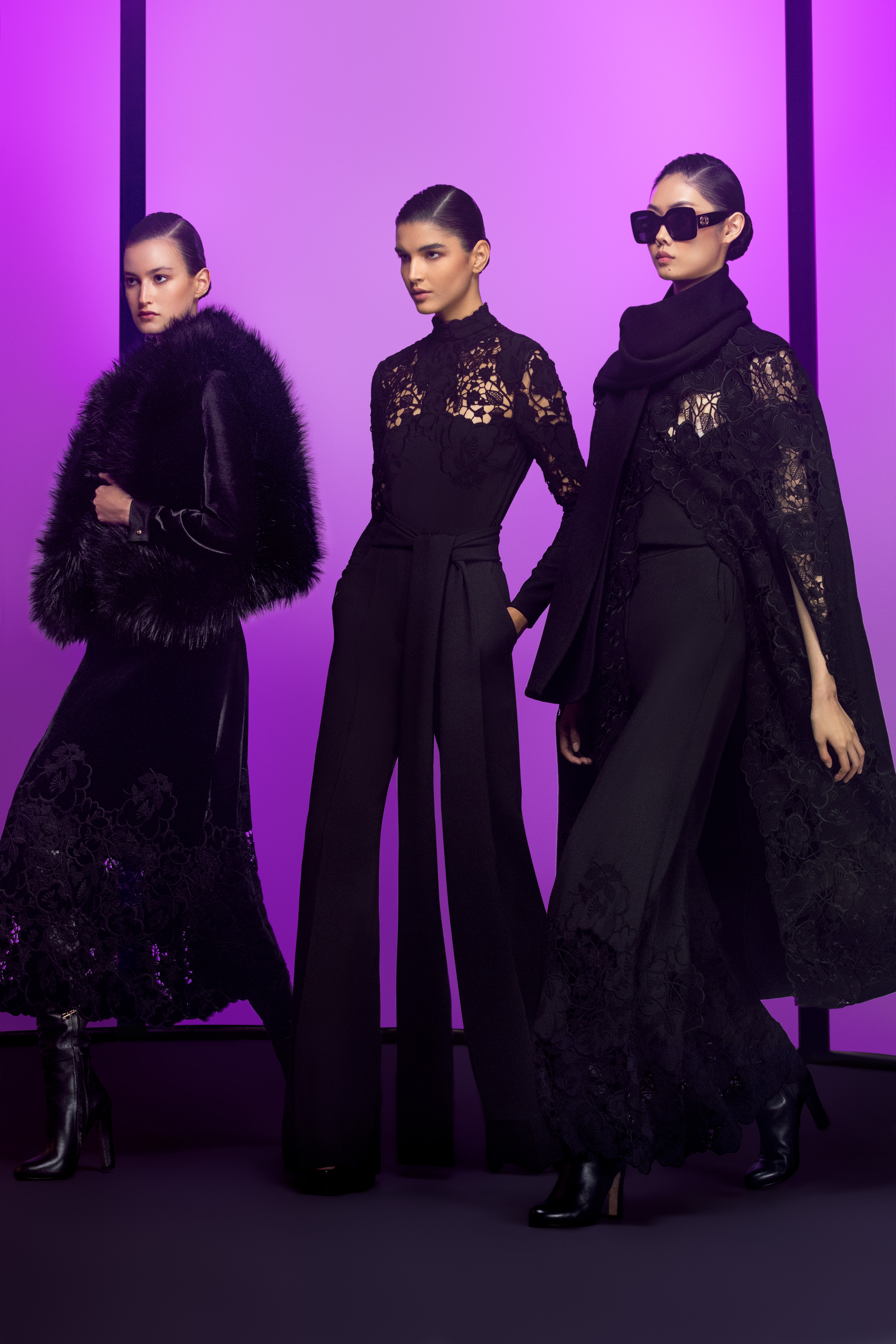 The PREFALL 2023 collection radiates and shines into the noirs of night, like the audacious, yet subtly mysterious ELIE SAAB woman, who forever glistens with glamour.